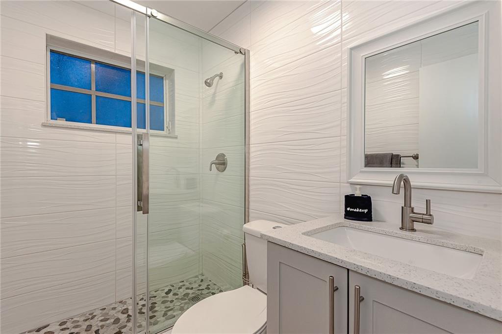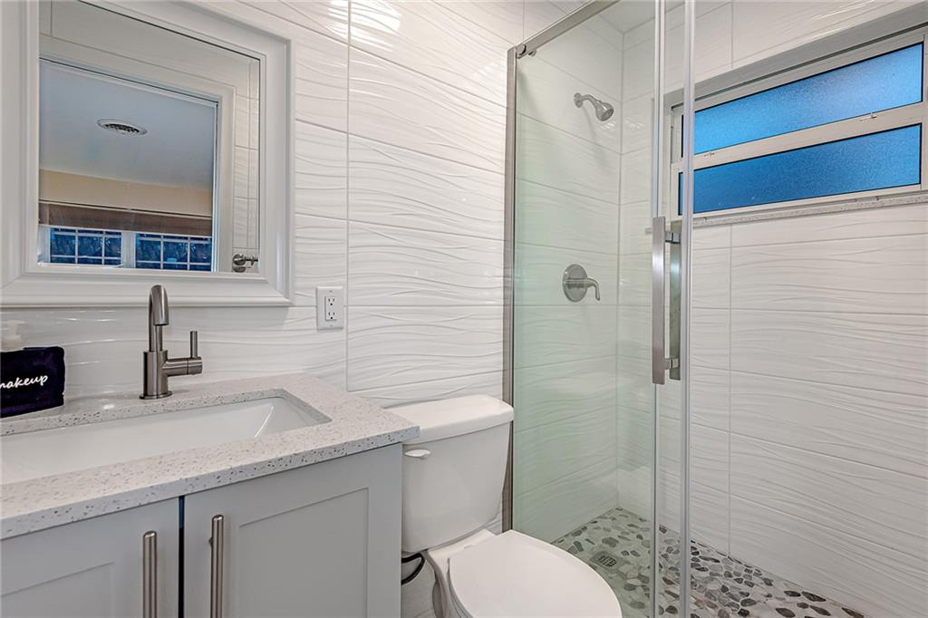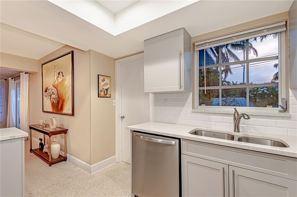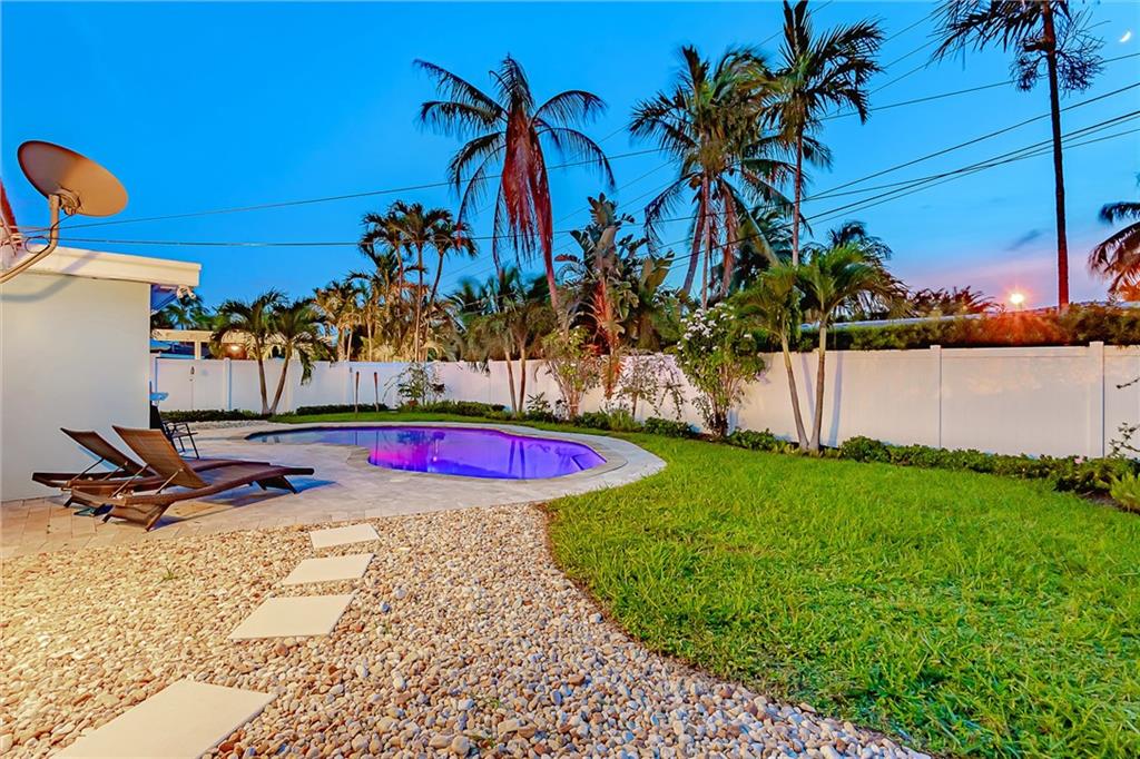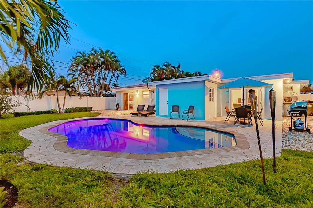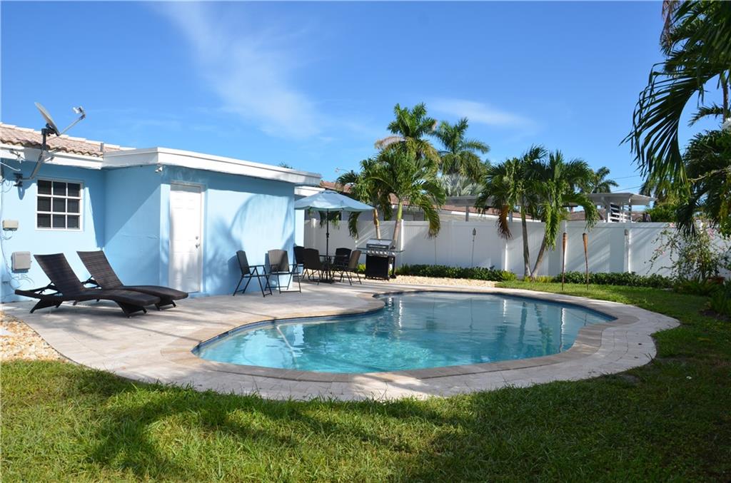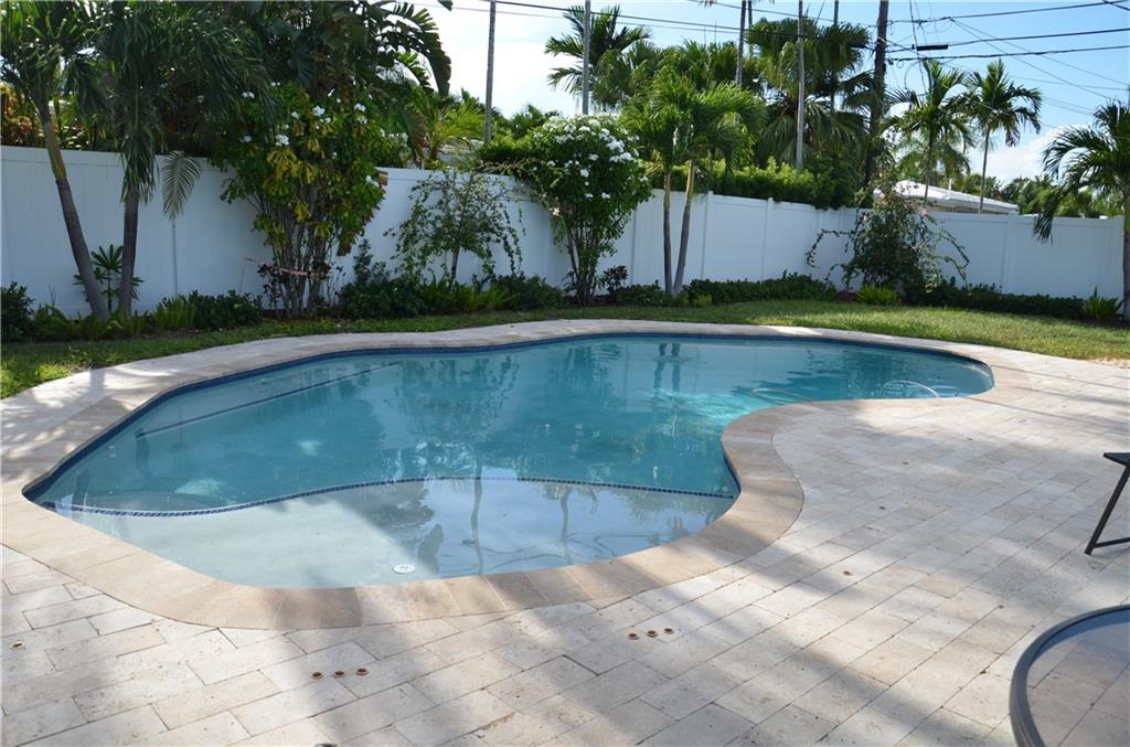NEW TO MARKET in Famed "Imperial Point" on prime quiet street! Brand new kitchen/quartz counters & stainless appliances! Two Brand New Baths! Gleaming refurbished Terrazzo Floors & new tile in 3rd bedroom, LED lighting throughout! Brand new underground plumbing-all replaced!!! Roof 2004 & 2013. AC 2019! ADT Alarm System. Lush Tropical property-spacious private backyard-Entertainer's Salt Water Pool/lighting/tanning lounge+seating,child safe fencing,Aqua link app for control. Travertine marble patios. New PVC fencing. Over sized paver driveway. REDUCED!!! Don't miss this one!