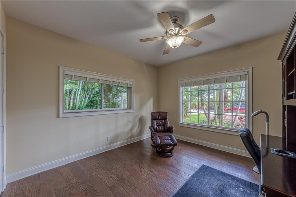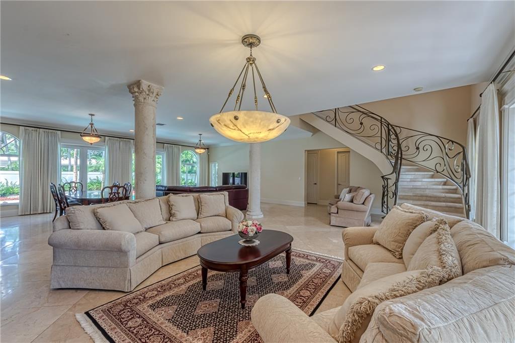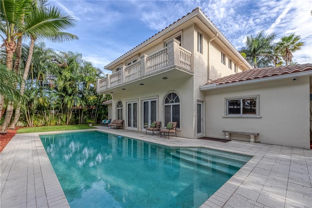 Hurry and come see this meticulously maintained residence on one of the finest streets in Coral Ridge. As you drive up you will appreciate the timeless architecture and the mature and well designed landscaping silhouetting the residence. Step inside, you will find the home to be very quiet, solid and peaceful. The great room with architectural staircase, marble floors and 10 foot ceilings has windows lining both front and back capturing the park-like exterior. First floor offers three generous bedrooms (or a proper office) with hardwood floors and two full baths. Upstairs offers two proper primary suites, one front and one rear) each with 30 foot private balconies. The kitchen offers Kraft Maid cabinetry, Five Star gas cook-top with commercial vent. Impact windows. Won't last!