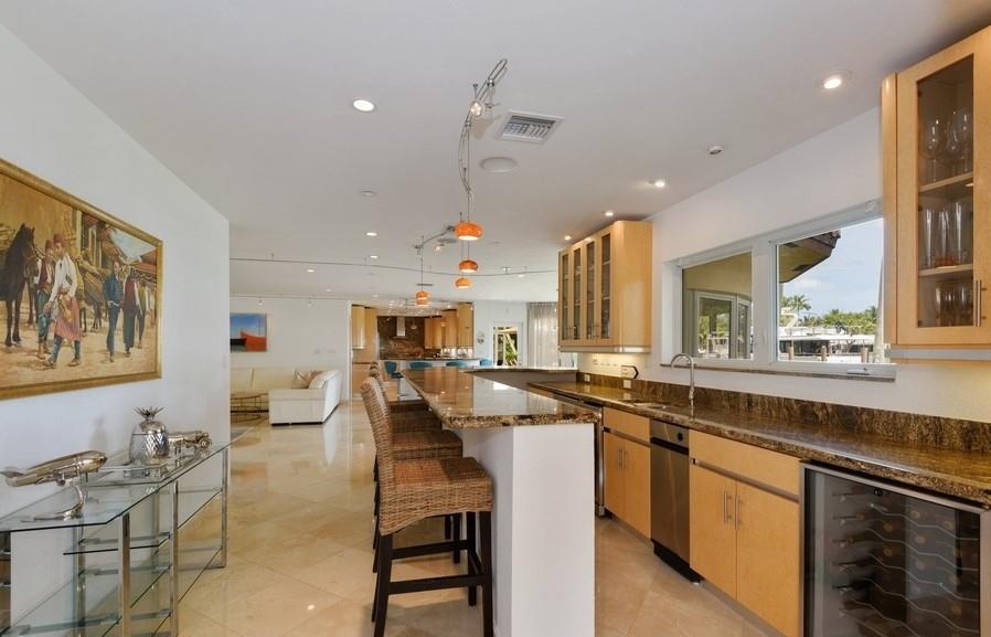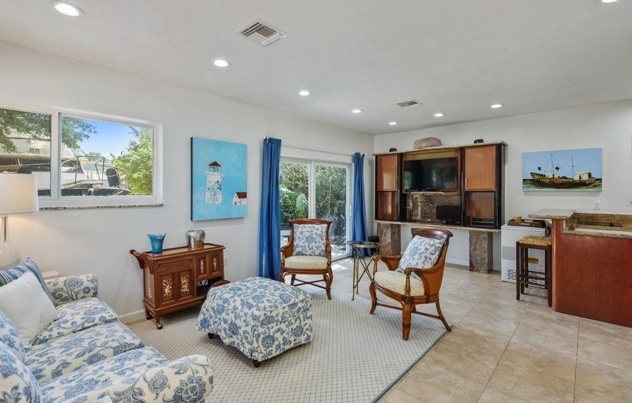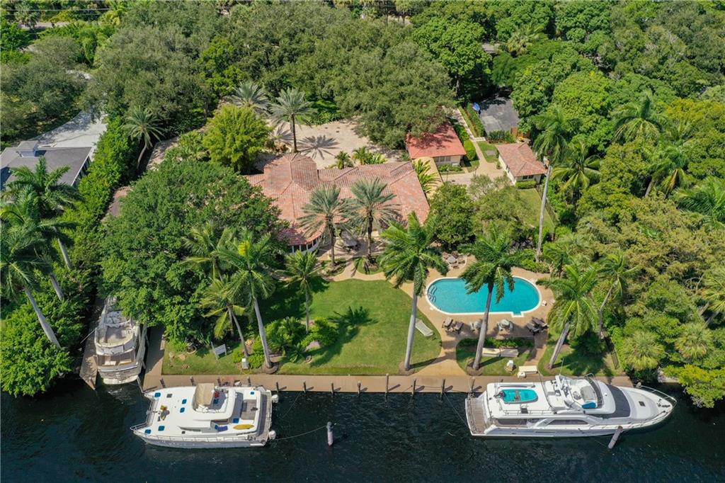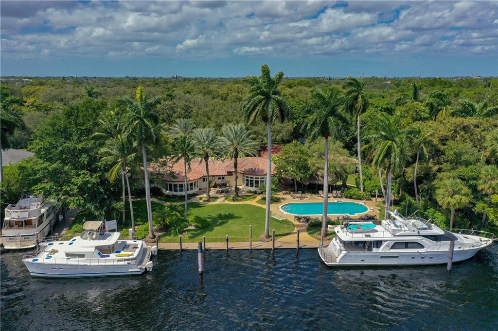 Stunning 1-story home on almost 1.5 acres of land! 360' boat dock w/ accommodation for mega yachts! Upon entering this gated Riverfront estate you are greeted w/ lush & tropical landscapes, creating a private & shaded approach. Open floor plan w/ high quality finishes, gourmet kitchen, wet bar & great room. Large master suite w/ sitting area & River views. Brand new whole property generator, new whole property water filtration system, & hurricane impact windows! 2 fully equipped guest houses on property, both w/ living rooms & kitchens. Also features separate 1 bedroom, 1 bath captain's quarters. Ultimate outdoor oasis with pool & tiki hut, perfect for entertaining. Enjoy the constant boat parade & breeze this beautiful property has to offer! Conveniently close to Downtown & beaches.