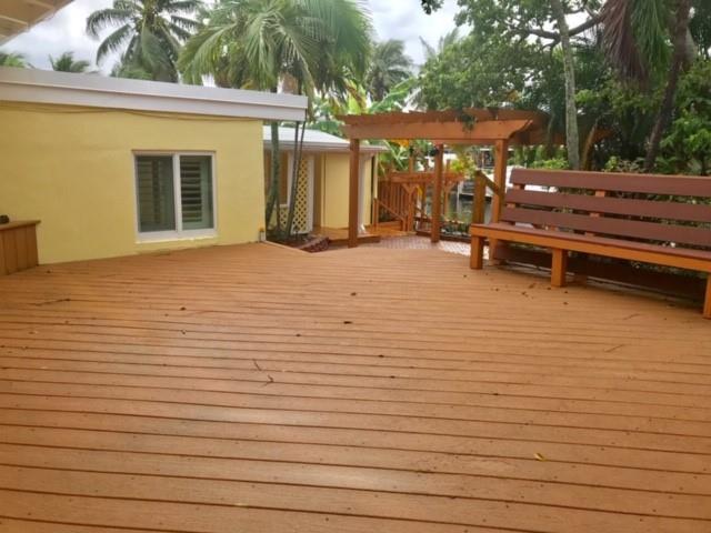 Boater's Paradise - No Fixed Bridges. 65' Ocean Access Water Frontage. Live the Florida Dream. 3/2.5 TRI LEVEL home with Florida room & Family room. IMPACT windows & doors. Newer Roof, Expanded and remodeled Kitchen. Sliding doors to the backyard deck and outside wet bar. Extra large brick patio and decked area. Huge shed with overhead door for extra storage. Master Bath with luxurious jacuzzi tub, separate shower, dual sinks and skylight. Beautiful Terrazzo floors in living area and Oak floors up stairs. 3 zone AC. Vaulted wood ceilings, new sewer line. Dock your boat at home and cruise Ft. Lauderdale along the new River into downtown and Dock at one of the fine eateries. Just a short boat ride out to the ocean. Let's Go Fishing!