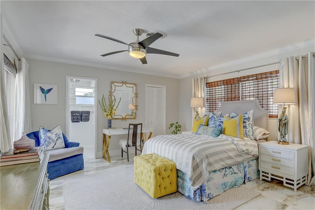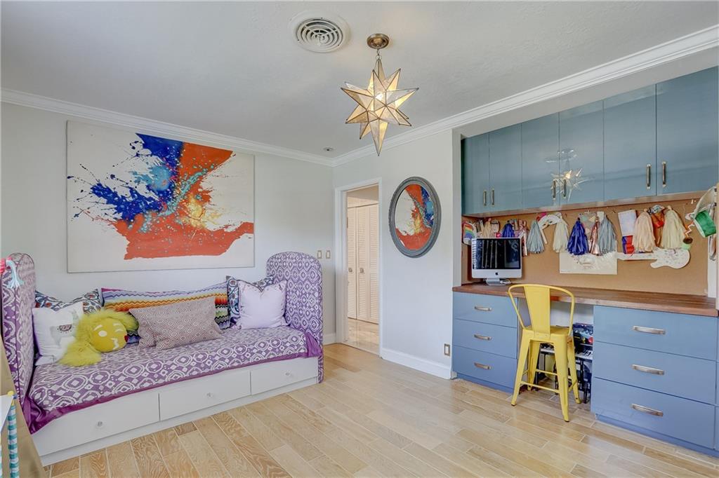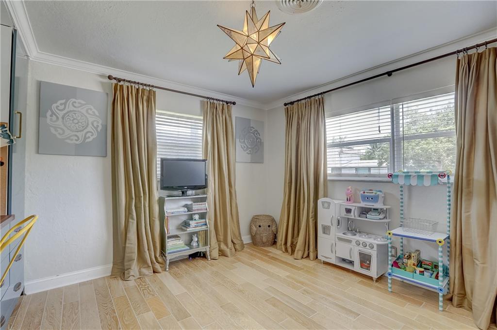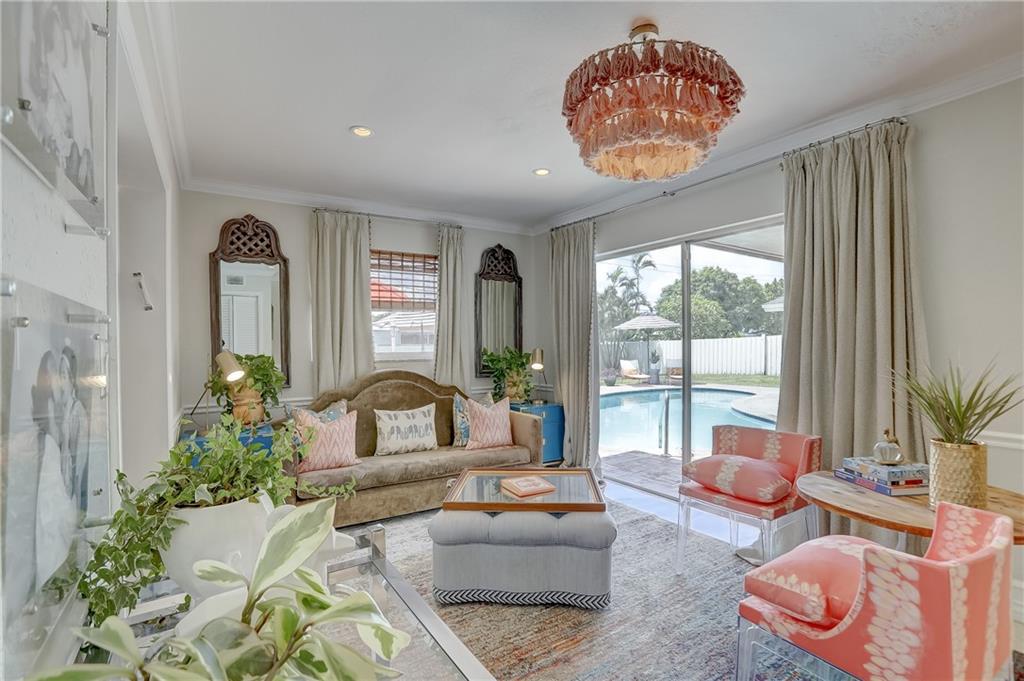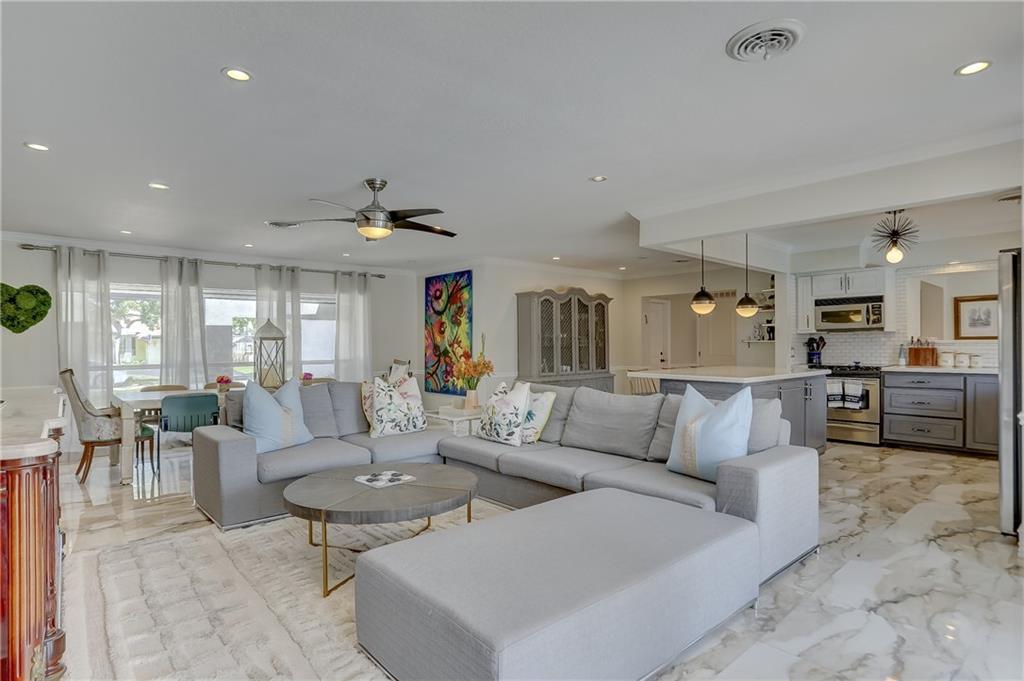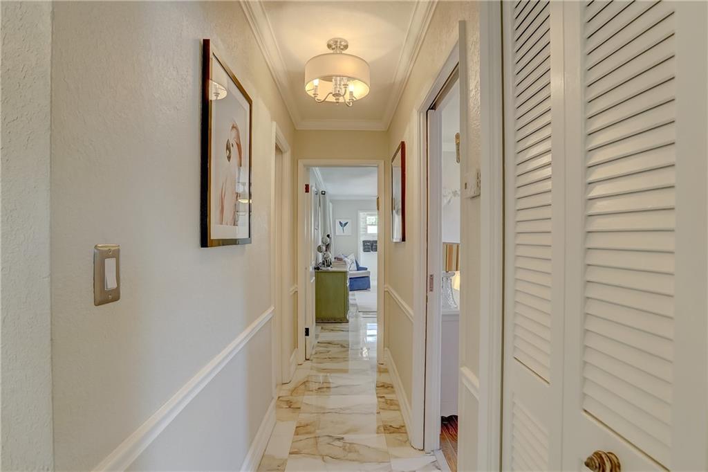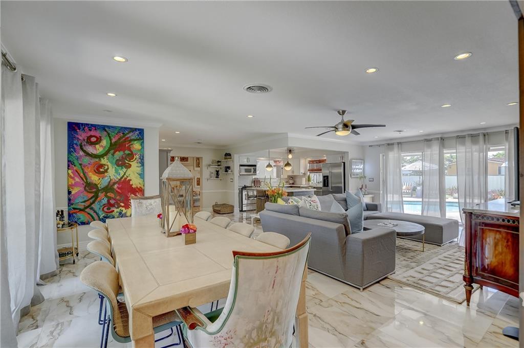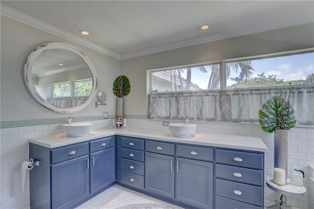 Nestled on a quiet street in the sought-after Hollywood Hills neighborhood, this split floor design offers a 2 car garage, 4 bedrooms and 4 full baths. Wood floors and stunning 24 x 24 porcelain tile run throughout the home. A Thibaut wallpapered-foyer welcomes instant views of the contemporary, open floor plan. A common living space is multi-functional and perfect for entertaining: outfitted with an over sized wood accent wall, a built-in wet bar with wine fridge, a freestanding island perfect for entertaining, as well as glass sliding pocket doors that open up to beautiful pool views. A updated kitchen is equipped with quartz countertops & subway tile backsplash. DOUBLE MASTER SUITES with sliding glass door's opening to resort style pool complete with Bose speakers. Welcome home!
