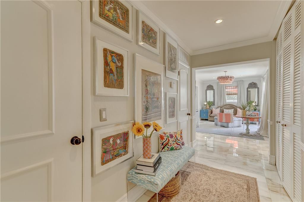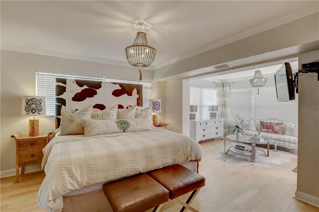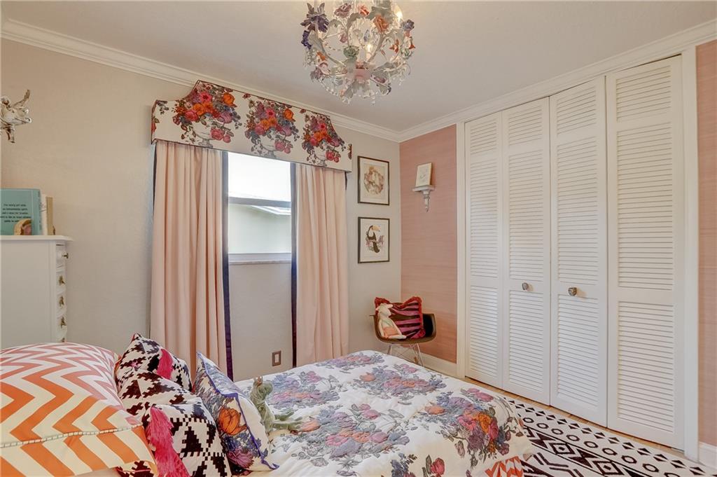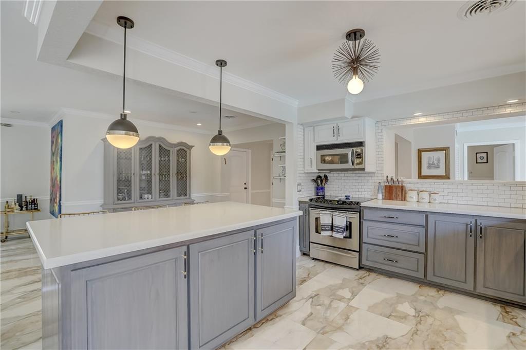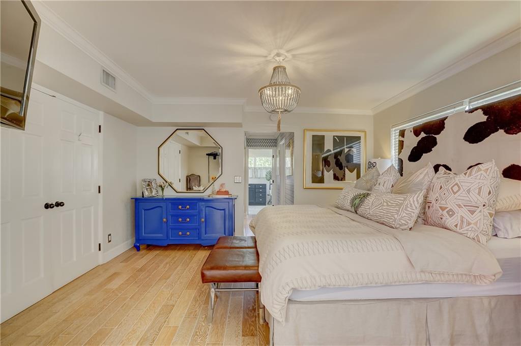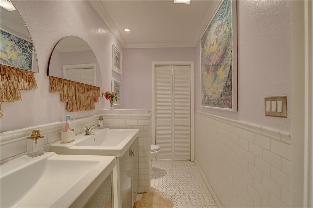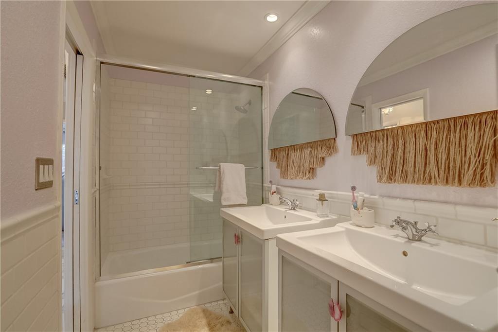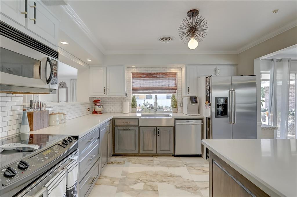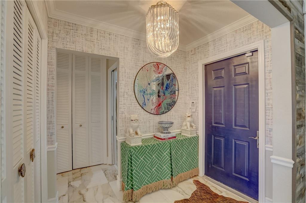 Nestled on a quiet street in the sought-after Hollywood Hills neighborhood, this split floor design offers a 2 car garage, 4 bedrooms and 4 full baths. Wood floors and stunning 24 x 24 porcelain tile run throughout the home. A Thibaut wallpapered-foyer welcomes instant views of the contemporary, open floor plan. A common living space is multi-functional and perfect for entertaining: outfitted with an over sized wood accent wall, a built-in wet bar with wine fridge, a freestanding island perfect for entertaining, as well as glass sliding pocket doors that open up to beautiful pool views. A updated kitchen is equipped with quartz countertops & subway tile backsplash. DOUBLE MASTER SUITES with sliding glass door's opening to resort style pool complete with Bose speakers. Welcome home!