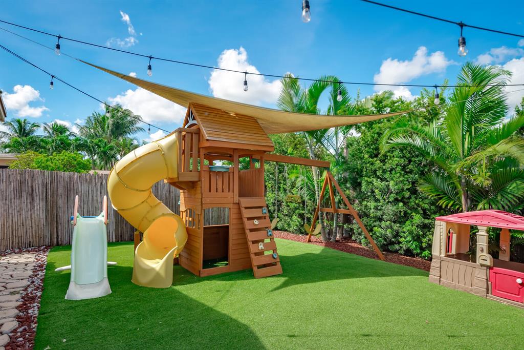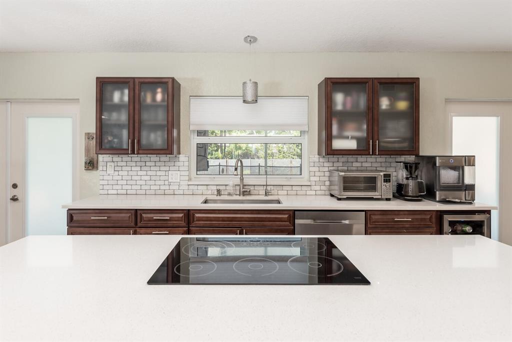 Welcome to Paradise! Beautiful totally updated 3 bedroom 2 bathroom home with hurricane impact windows & doors throughout & spectacular Salt water pool with outdoor shower & Gazebo for plenty of outdoor living. Travertine floors throughout living/kitchen area with beautiful stove top island with quartz counter-tops & beautiful cabinets. Hardwood floors in master bedroom with walk-in closet & marble top vanity in master bathroom with beautiful shower with jets & LED shower head. Bamboo flooring in the other bedrooms with built in floating organizer in closets. Newer AC with UV antibacterial lamp. Tank-less Hot Water heater. Newer electrical panel in garage. 9 camera system with monitor. Stainless steel appliances. Circular paved Driveway with 2 car garage. Move-in Ready! Priced to sell!