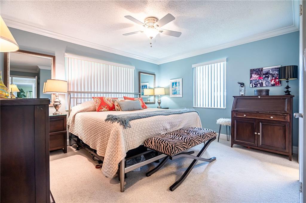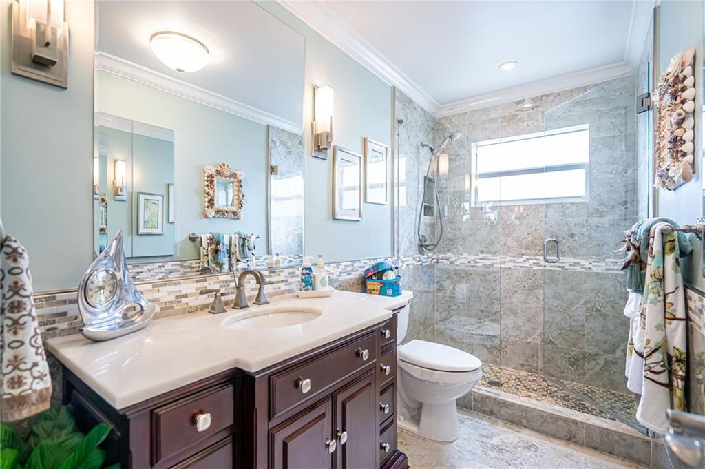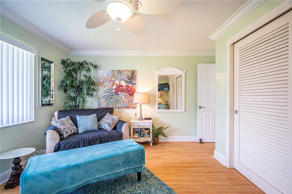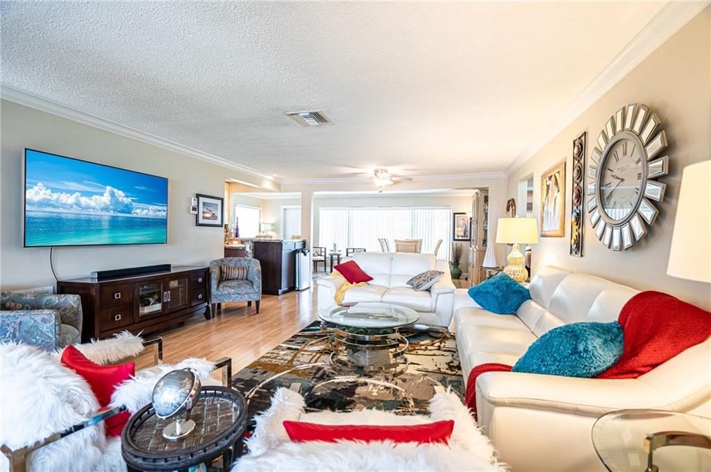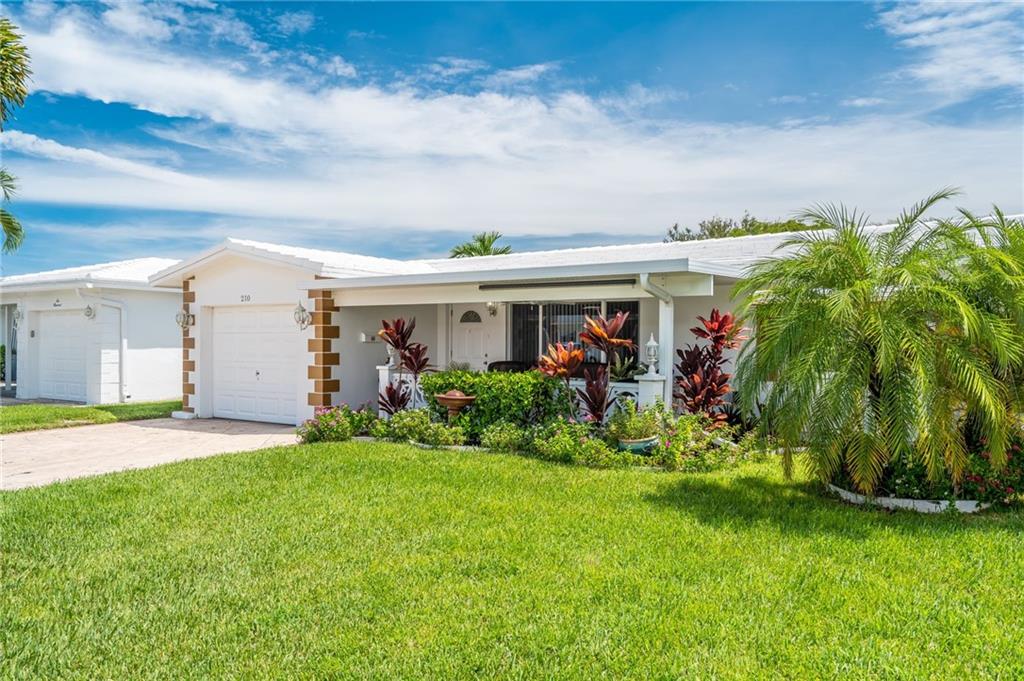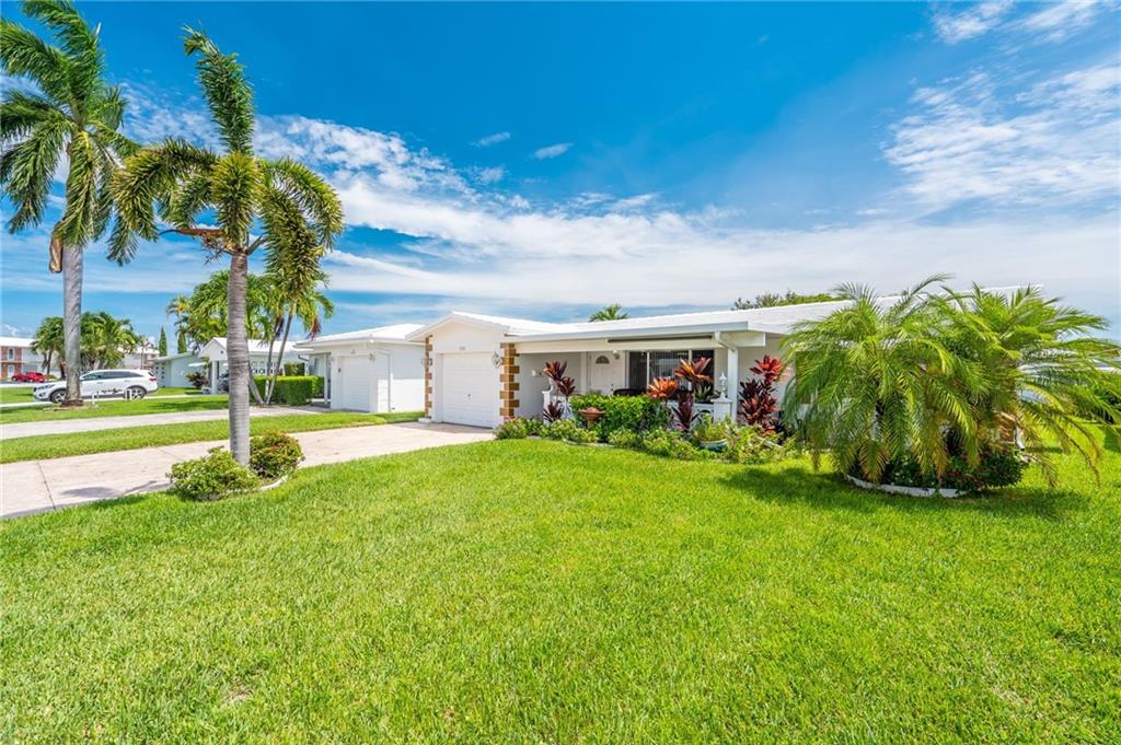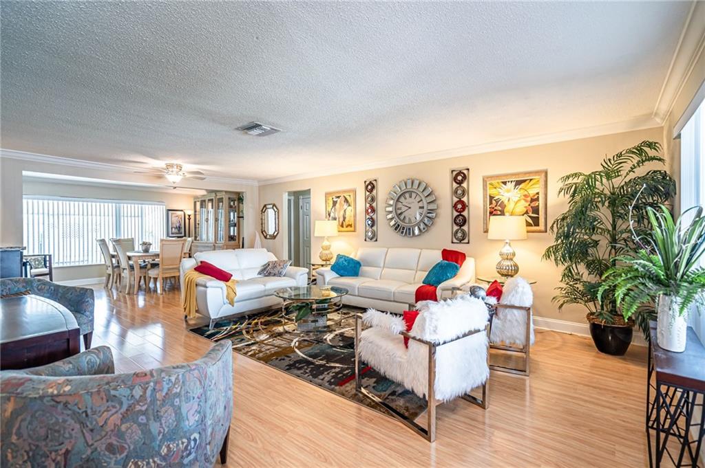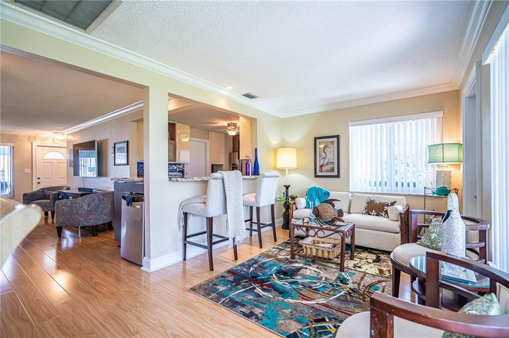 Gorgeous turnkey 2/2 + extended Florida room updated throughout. Featuring beautiful cabinetry, countertops, breakfast bar, high end stainless steel appliances and tile flooring. The living room and Florida room share wood flooring, and crown molding extending into guest bedroom and hallway. The bedrooms and bathrooms have been completely renovated with an excellent design and decor. Add the newer roof, hurricane windows and a/c. +entertain on the open porch and back patio. 55+ Community
