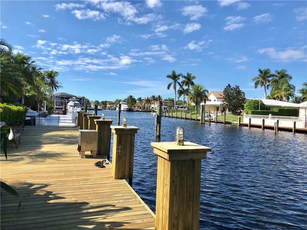 Live close to the beach and dock your boat right behind your property. Welcome to Bermuda Rivieria. 80' of deepwater dockage with no fixed bridges. Brand new dock, new pool heater, new pool deck and more! This spacious 2 story home boasts charm and elegance throughout. Beautiful travertine flooring, foyer entrance, huge master bathroom, formal dining room, family room and living room. The 2nd story includes 2 en-suite bedrooms and a large balcony overlooking the waterway. You will love the floor plan and the awesome location of this home. One bedroom is being used as an office. Professionally landscaped with lighting and privacy fencing. Walk or bike to the beach. Close to shopping, dining and SoFLO nightlife. Bring your boat and let's go fishing!