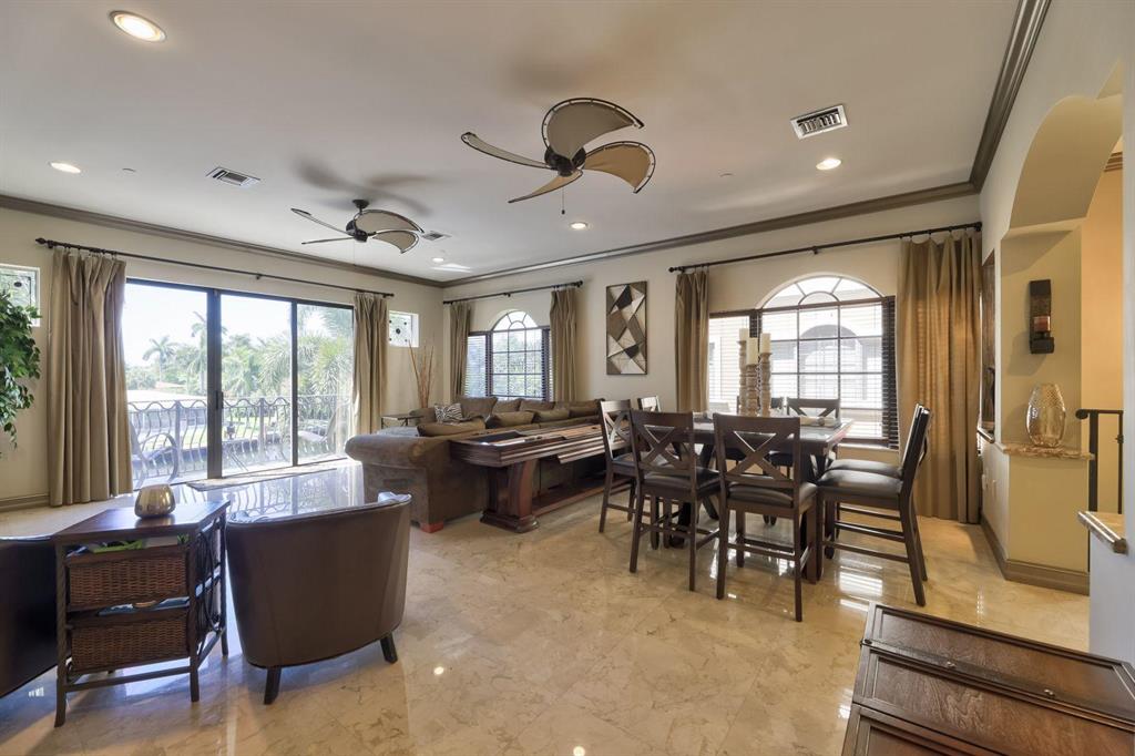 Absolutely Stunning Home with Private Elevator and rooftop terrace! Incredible views of Lake Santa Barbara with Direct Ocean Access & No Fixed Bridges. A boaters Paradise with Assigned Dock. No Expense Spared! Corner unit home with High End Finishes. Travertine Marble, 10ft Ceilings, SS Appliances, Crown Molding, and Impact Windows & Doors throughout. Unit has a Loft w/Wet Bar, Private Patio, Bar/Game Room and 2 Car Garage. Shows Like a Model Home!