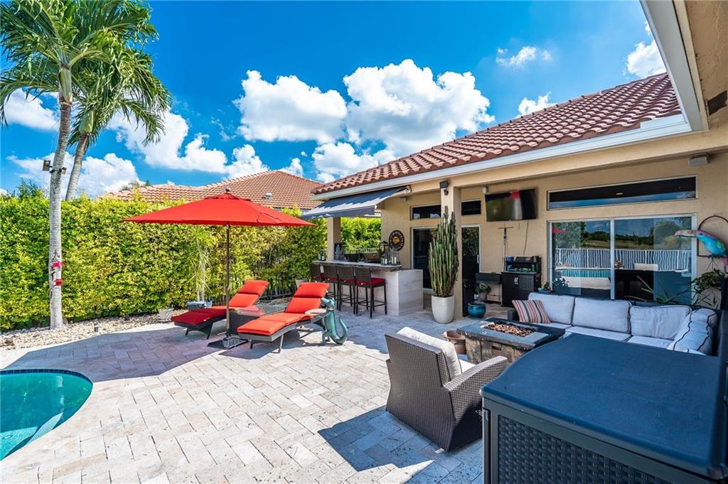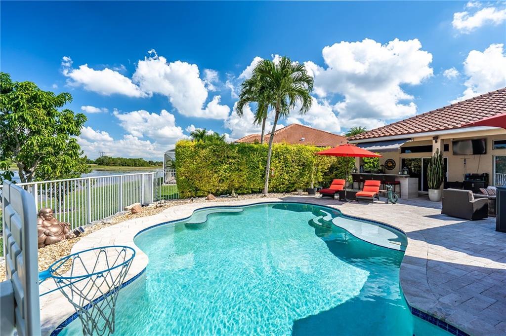 Now presenting this stunning, completely upgraded 4 bedroom/2.5 bathroom home in The Meadows of Weston with over $150k in upgrades! BRAND NEW ROOF with 2 solar-powered attic fans, NEWER AC, landscaped with in-ground timer sprinkler system, fiber optic, remote control blinds throughout home, surround sound and colorful LED lighting (indoors & outdoors), beautiful pool with lakefront views and a travertine tile deck, an outdoor built in bar/BBQ, and fire-pit making this house PERFECT for living and entertainment, A+ schools, plus much more that you have to come and see for yourself!!