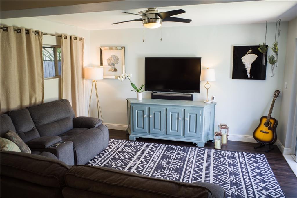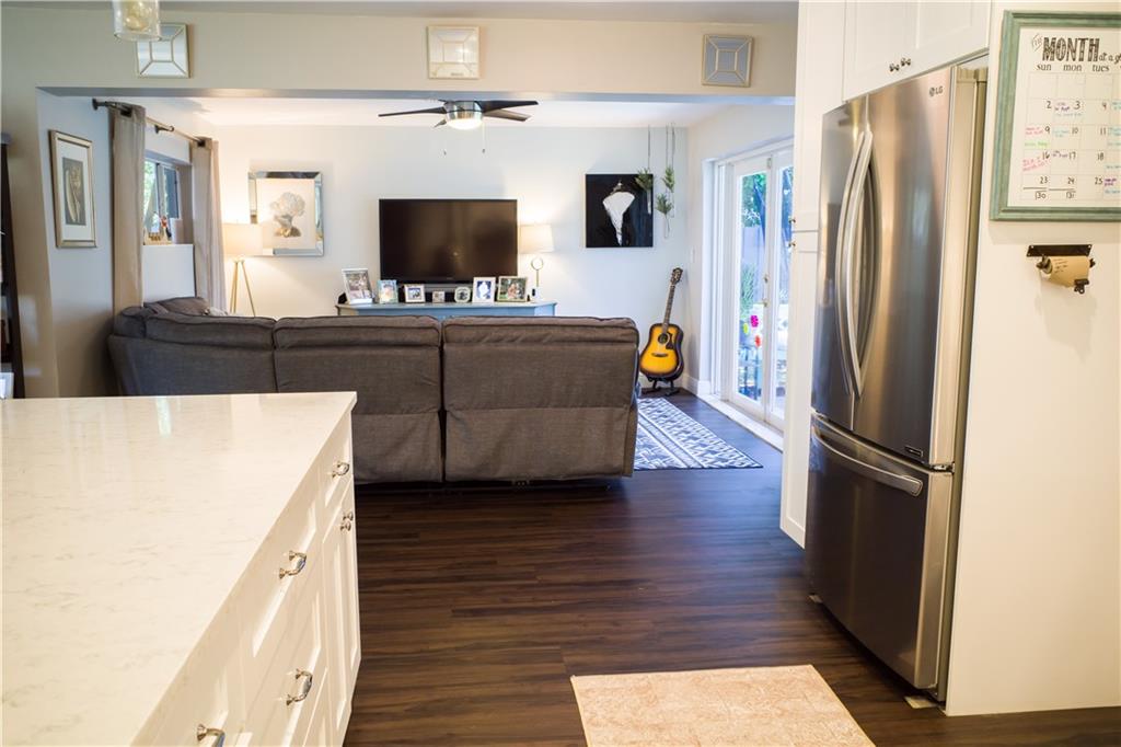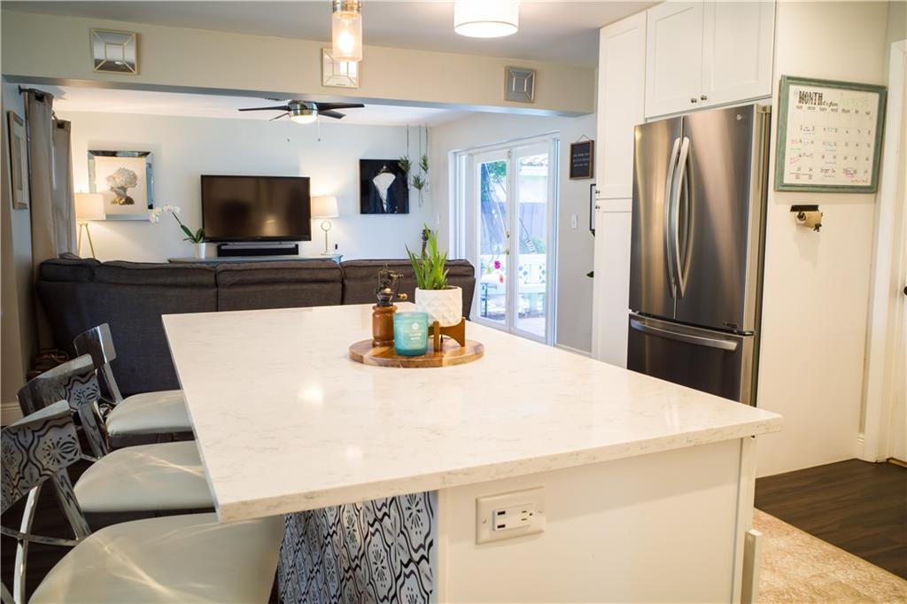 Don’t miss this clean contemporary beauty. Won’t last! Completely remodeled home. Open concept w/ a beautiful modern light filled kitchen. All new stainless steel appliances, quartz countertops, white subway tile back splash, white shaker cabinets w/ glass inserts in uppers. Sleek pendant lighting over island counter. Separate laundry room w/ back yard access. New flooring throughout. New custom closet organizers in all the bedrooms. New installed white doors with black accent hardware. Ceiling fans are located in every room. Digital WiFi thermostat. Beautifully remodeled bathrooms w/ marble flooring and subway tile. Family room’s French doors open onto covered patio & master French doors open to a fence enclosed w/ landscaped spacious back yard. New roof 2019. new paint 2019, new AC 2017.
