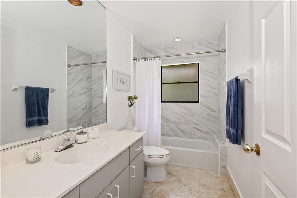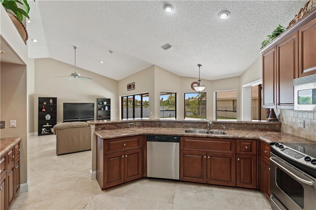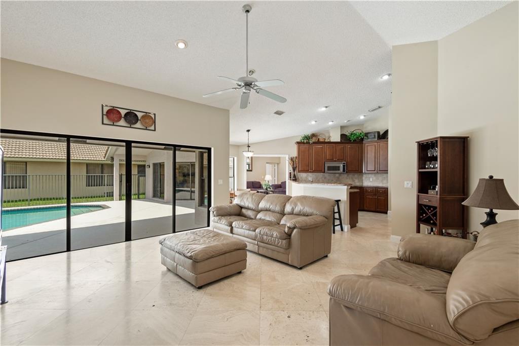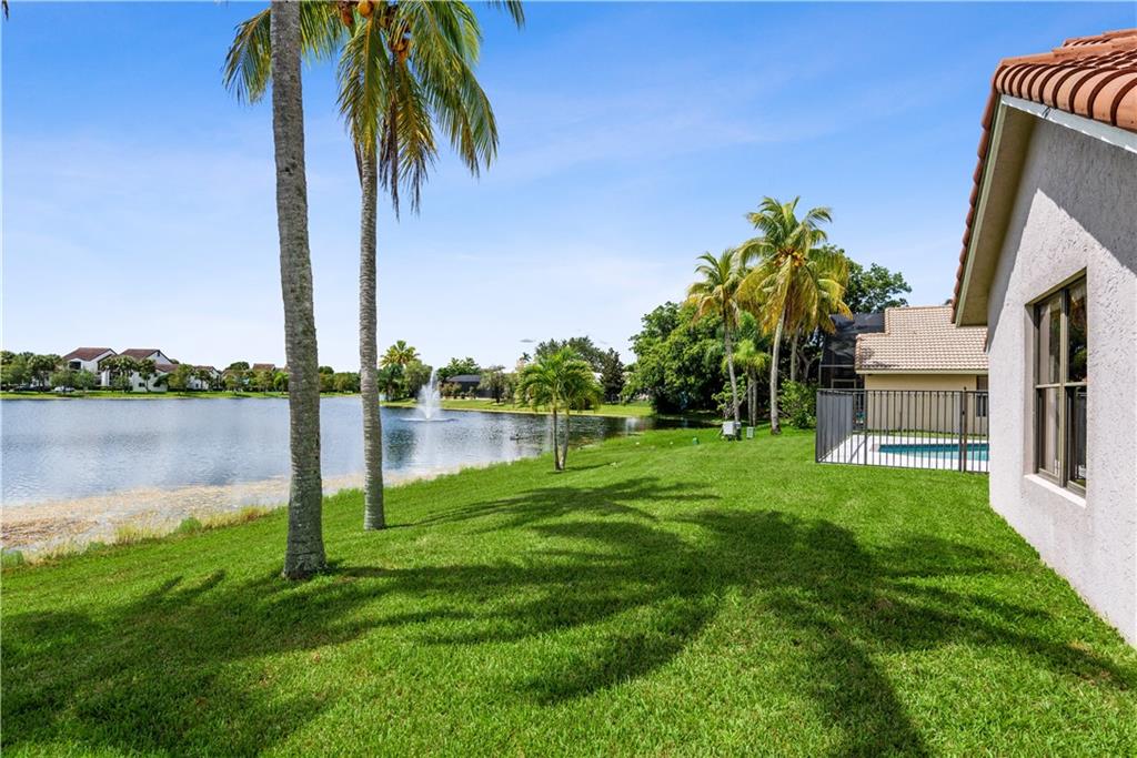 Nestled on a private lake front lot, this beautiful 5 bed 3 bath home is ready for you! Among many features, this elegant & bright floor plan offers high volume ceilings, triple split layout and transom windows for more natural light. Gorgeous neutral travertine floor throughout living area and laminate wood in bedrooms. Remodeled kitchen w/granite counter top and stainless steel appliances. Snack bar and breakfast area for all the family to share meals and enjoy. Spacious master suite with 2 walk-in closets. Plenty of light in every room. Huge family room. Enjoy this amazing 1/4 acre lot w/spectacular views of the lake .Tequesta is conveniently located close to shopping, highways and schools setting a bar high for privacy and ready for relaxing and entertainment! Guard gated 24/7