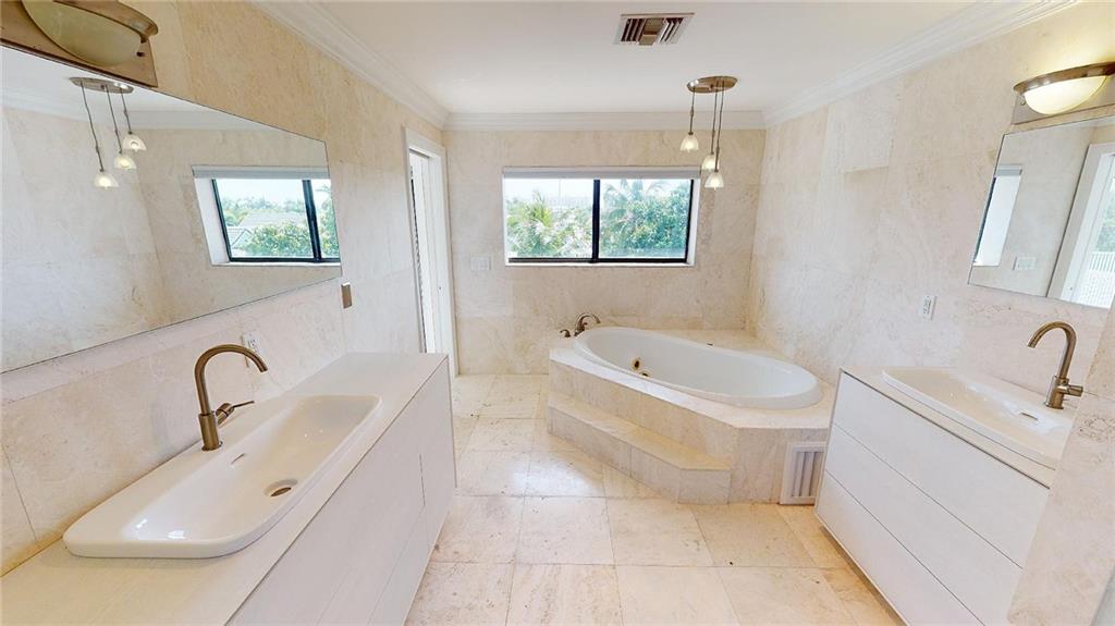 Stunning two-story masterpiece w/vaulted ceilings in the living room & tons of natural light that flows through the residence. Exquisitely renovated 5 bed/4 bath waterfront home includes: Kitchen & design from Italy's Snaidero Ola 20 Pinanfarina Design Collection, featuring an Arctic White porcelain backsplash & Iron Copper quartz countertops. Bathroom cabinetry designed by Novella/Libera Design in matte laminate. Bathroom light fixtures/faucets by Melamine Countertop. Sinks are from Snaidero. Appliances by Miele: induction cooktop, microwave oven, built-in fridge/freezer combination, dishwasher. Featuring 5 ft. Italian porcelain tile throughout 1st floor. Marble tile throughout 2nd floor. Perfect for entertaining or relaxing, this home has it all! Excellent location! DON'T MISS THIS ONE!