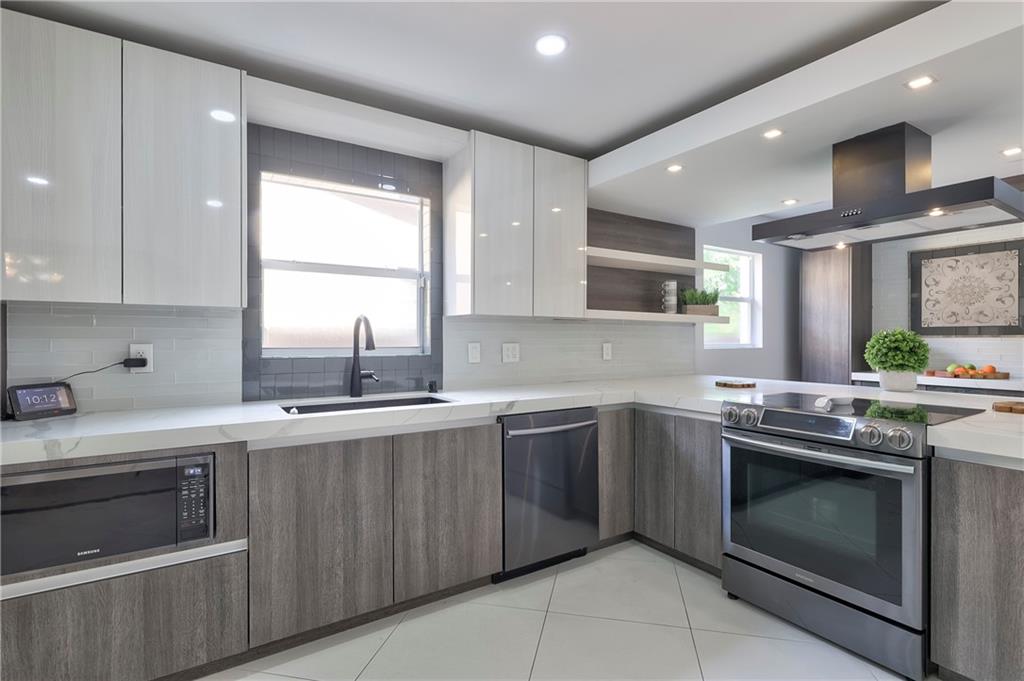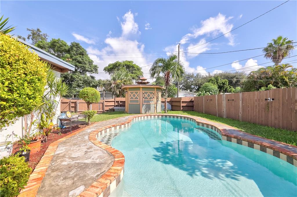 Remodeled 3/2 pool home with huge bonus room. Beautifully updated with a stunning kitchen and main living area designed with a contemporary flair. Spacious and modern kitchen design with smudge free black stainless steel appliances featuring a Family Hub Refrigerator, wine cooler and quartz counters. No expense spared. Family room is spacious and opens up to the pool area. Bonus room with mini split AC and separate entrance. Could be used as another bedroom room or as rental income. Home is situated on highly desirable street with front and back access. Driveway in back yard is fenced for additional parking or secured boat/RV storage. Pool area surrounded by a privacy fence and includes a large storage area. Ac is 2017, tank-less water heater, shutters and 2019 electrical panel.