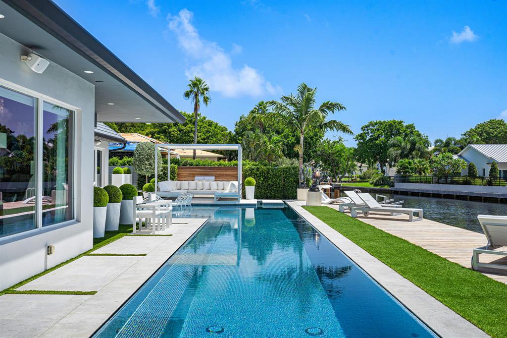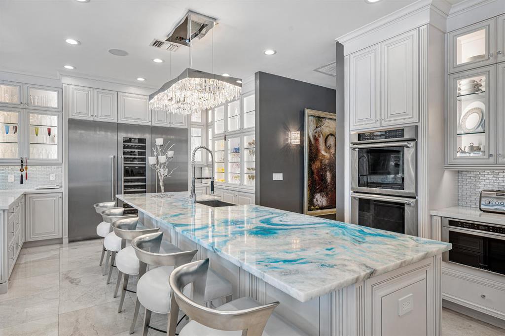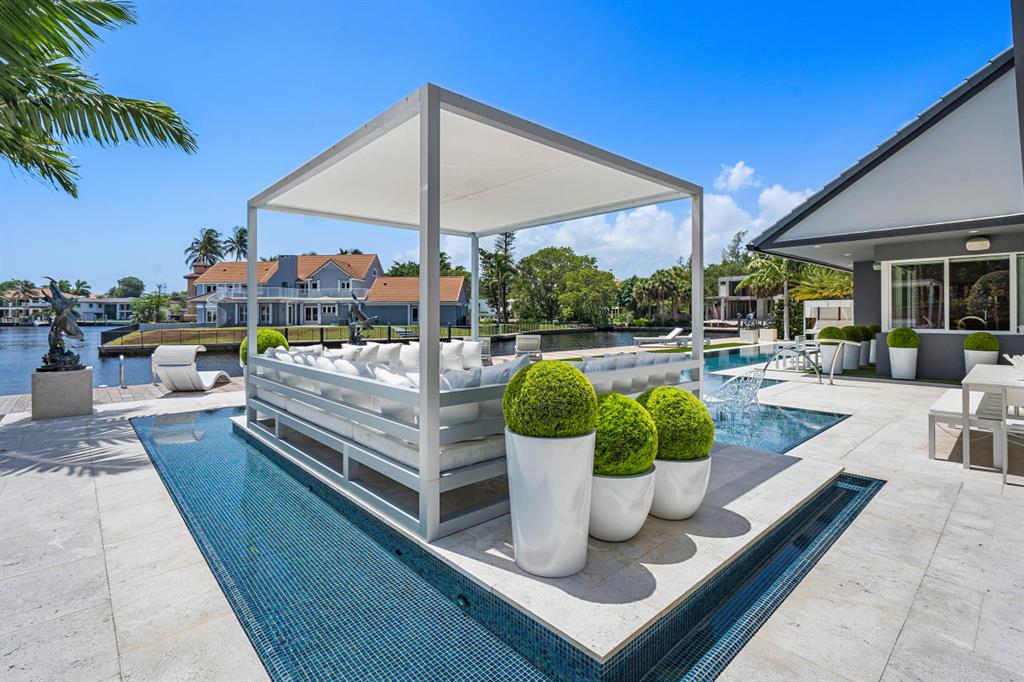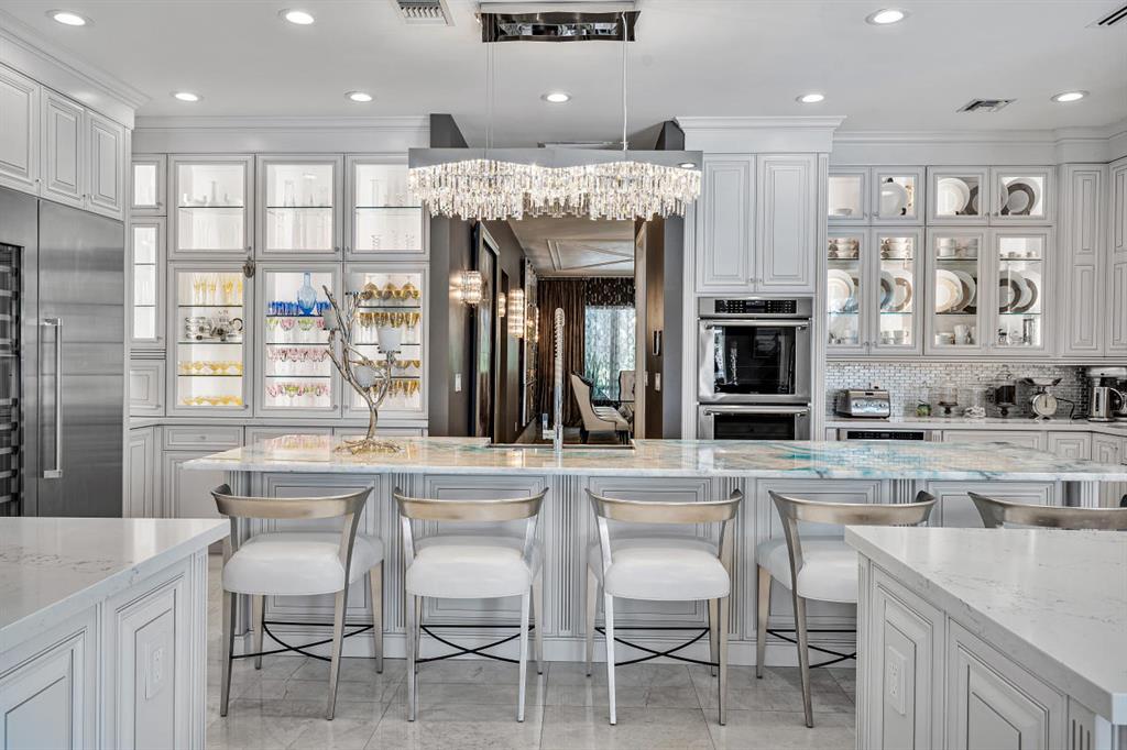 This incredible waterfront home in Bay Colony showcases stunning finishes, and gorgeous views. Artfully designed indoor/outdoor living spaces which include a chef's kitchen with onyx island and quartz countertops, gas stove, floor to ceiling wine fridge, butlers pantry, and wet bar. This unique floor plan offers an expansive master suite, well appointed guest bedrooms, gym, and office. Impact glass windows/doors throughout including a wide opening sliding door, creating the ultimate outdoor experience. Custom designed pool is the perfect backdrop to your waterfront views. Souther exposure provides year round sun. Brand new elevated seawall/dock, floating paddle board dock and so much more.