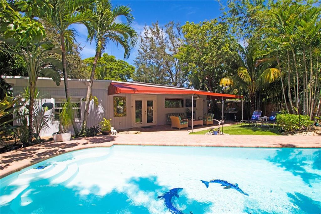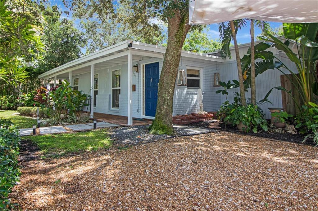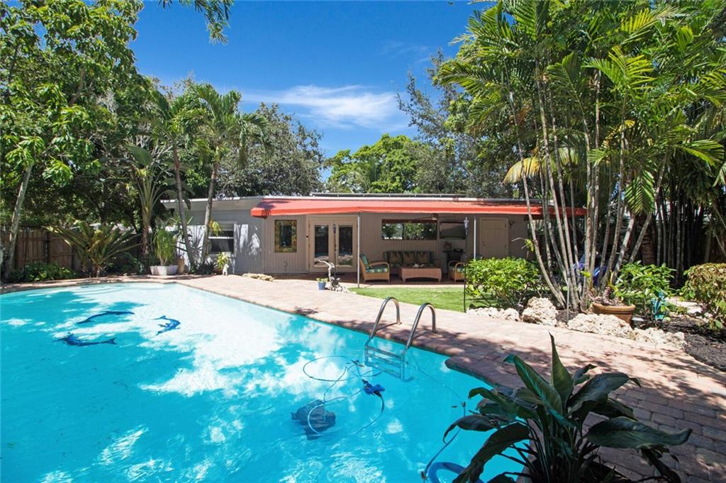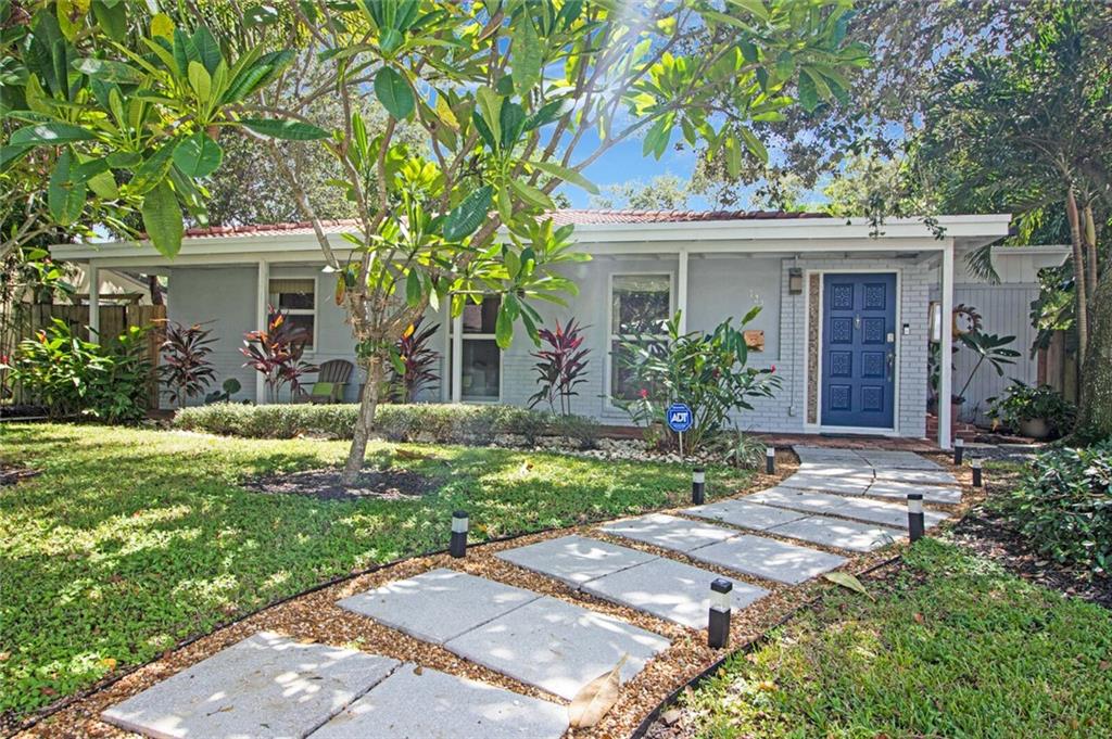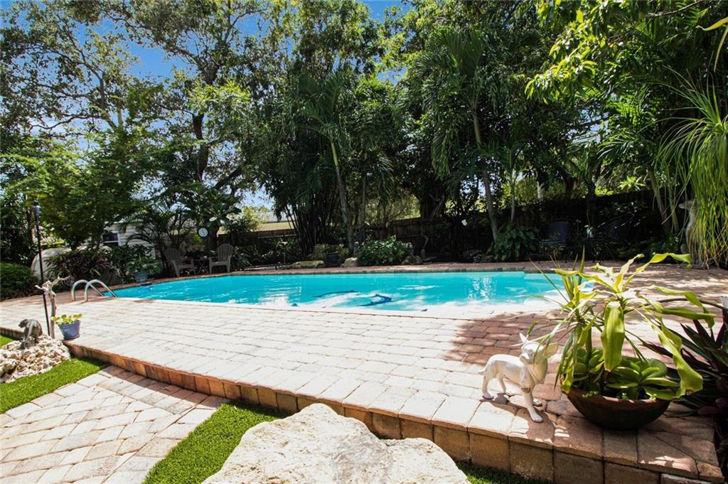 This home is full of Croissant Park charm! Great curb appeal w/winding paths to front door + side yard, lush landscaping, front porch w/triple impact windows. New solar panels. Driveway w/shade sail. Foyer w/window. Large bright living rm. Kitchen is open to family room w/breakfast bar- wood cabinetry, w/large pulls, quartz counters, light fixture w/dual fans, stainless appliances + large pantry w/frosted glass doors. Family rm is large w/floating wall unit + double french door to covered patio. There are 3 nice sized bedrooms- the largest has dual closets. The fenced backyard is truly a tropical oasis with covered brick paver patio, professional designed landscaping, lighting, winding paths, sitting areas for bbq pit, all around a beautiful pool. Separate laundry rm. New PVC plumbing.