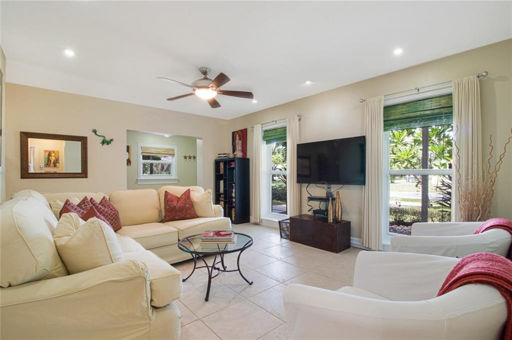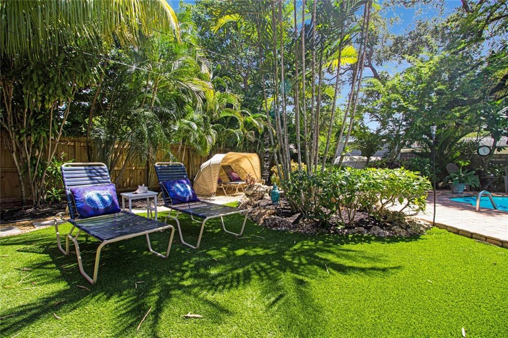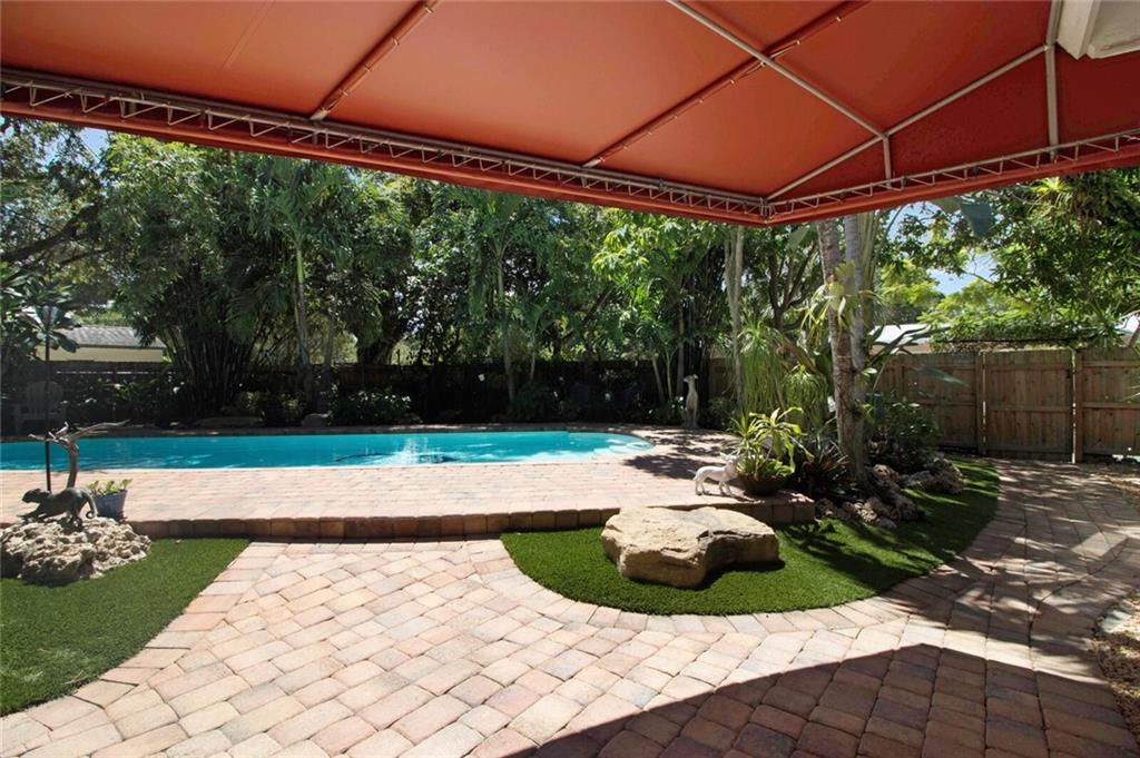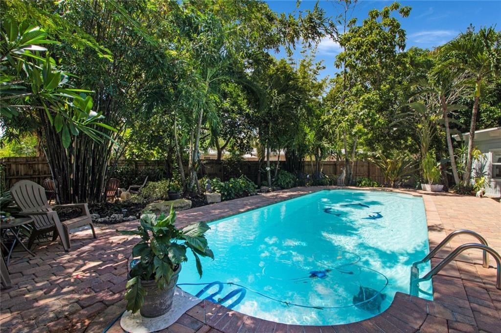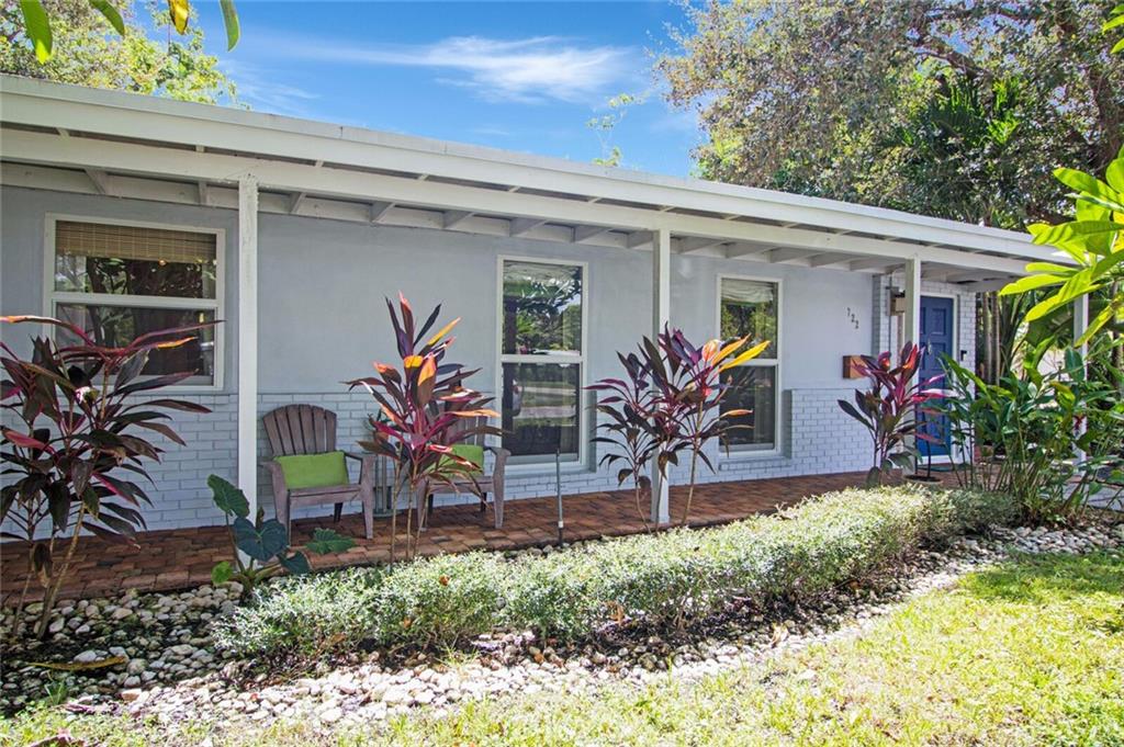 This home is full of Croissant Park charm! Great curb appeal w/winding paths to front door + side yard, lush landscaping, front porch w/triple impact windows. New solar panels. Driveway w/shade sail. Foyer w/window. Large bright living rm. Kitchen is open to family room w/breakfast bar- wood cabinetry, w/large pulls, quartz counters, light fixture w/dual fans, stainless appliances + large pantry w/frosted glass doors. Family rm is large w/floating wall unit + double french door to covered patio. There are 3 nice sized bedrooms- the largest has dual closets. The fenced backyard is truly a tropical oasis with covered brick paver patio, professional designed landscaping, lighting, winding paths, sitting areas for bbq pit, all around a beautiful pool. Separate laundry rm. New PVC plumbing.
