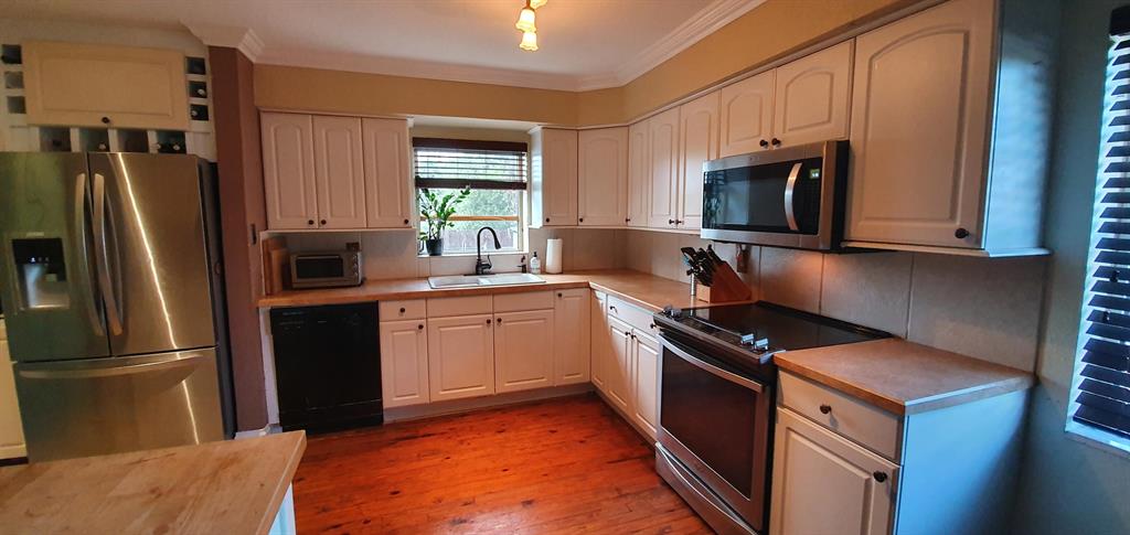 Beautifully updated home with Master BR/Bath and Guest BR on one side of the home and separate in law suite area off the kitchen, with its own entrance and bathroom. The separate in law suite was formerly a Florida room. Nicely updated open floor plan with wood floors, stainless appliances in the kitchen, renovated bath, crown molding, and BARREL TILE ROOF REDONE IN 2015. The oversized and private backyard might be able to accommodate a pool. No HOA. The house is move-in ready.