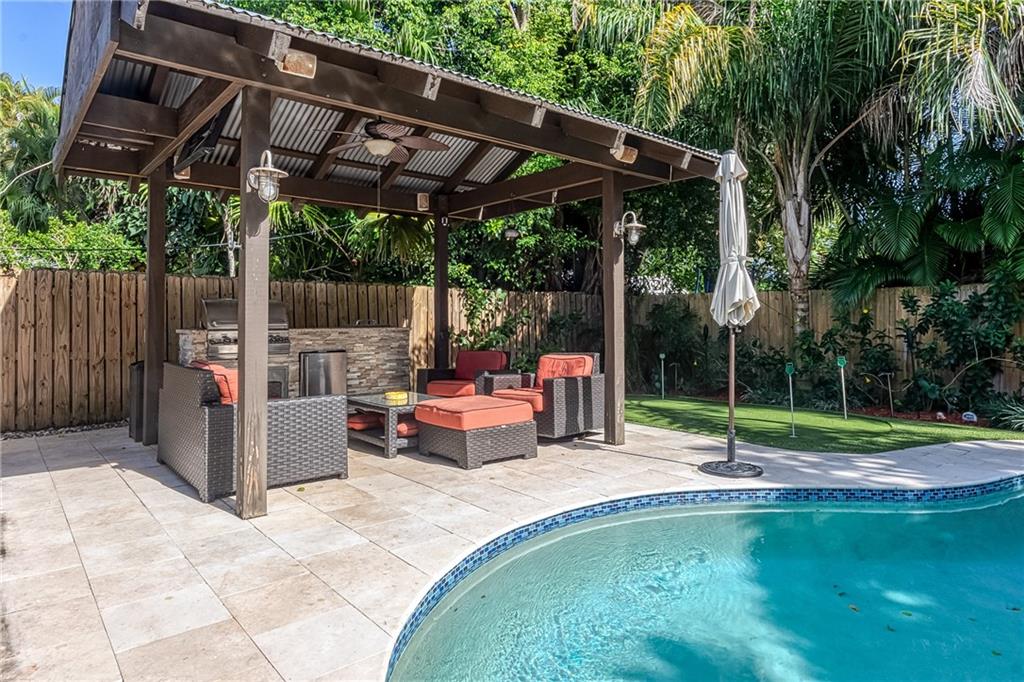 Looking for charm and character? This 4-bed, 3-bath home was built in 1944 and has all the enchanting design features and quality of an older house but has been thoughtfully updated with modern amenities. Beautiful original wood floors and molding run throughout the 1,922-square-foot residence while new hurricane-impact windows and a recently renovated kitchen with striking quartz countertops and Thermador appliances give it a luxurious feel. The home also includes a beautiful outdoor living space, featuring a backyard pool and shaded cabana, built-in grill and putting green. This seamless blend of 1940s architecture and modern-day comforts will suit the lifestyle of any family!