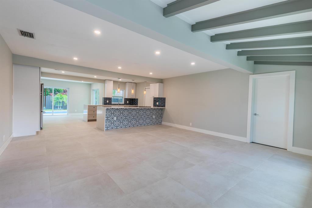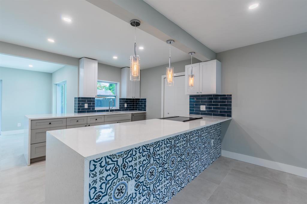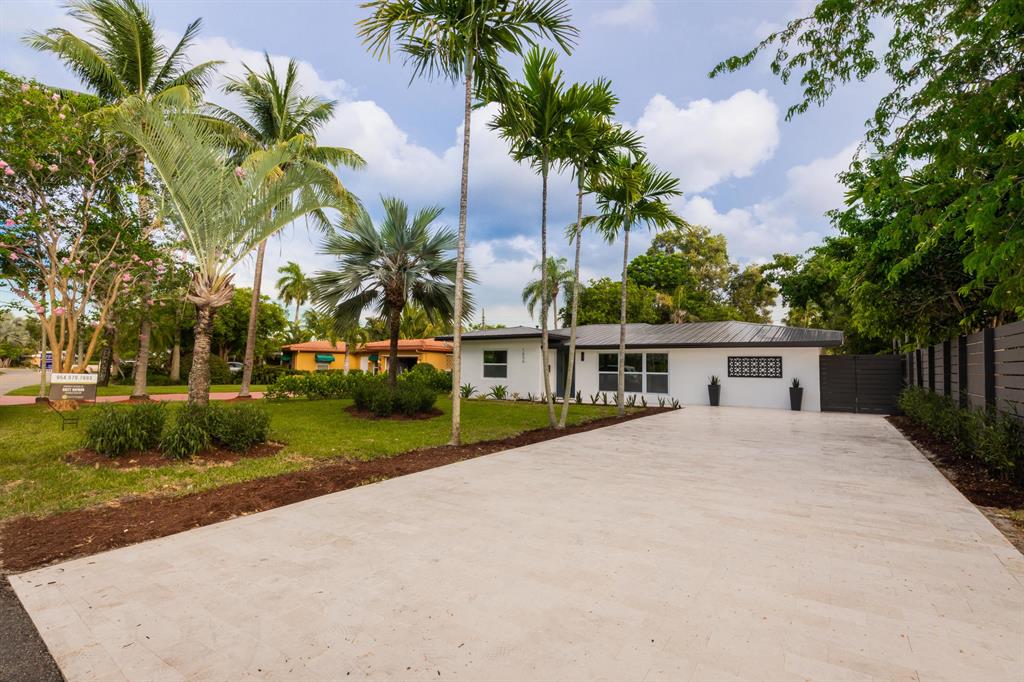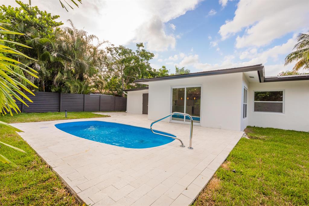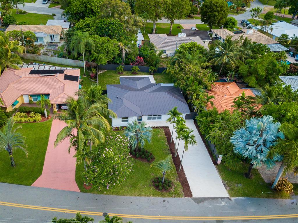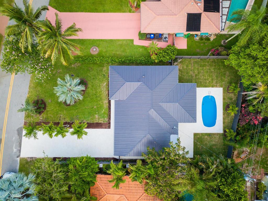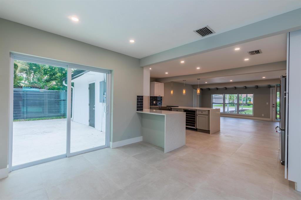 Poinsettia Heights - Renovated open concept, 3 Bedroom, 2 Bathroom pool home. Recent updates include metal roof, impact windows & doors, & coral shell paver driveway & patio. Large chef's kitchen with large breakfast bar, Kitchen Aid appliances, quartz counters, wine cooler. New interior features new 30'' porcelain tile flooring throughout, renovated bathrooms, recessed lighting, interior doors, baseboards & moldings. Updated electric. New central AC. Private fenced back yard, sprinkler system, new sod & landscape, gutters, interior & exterior paint, storage area.