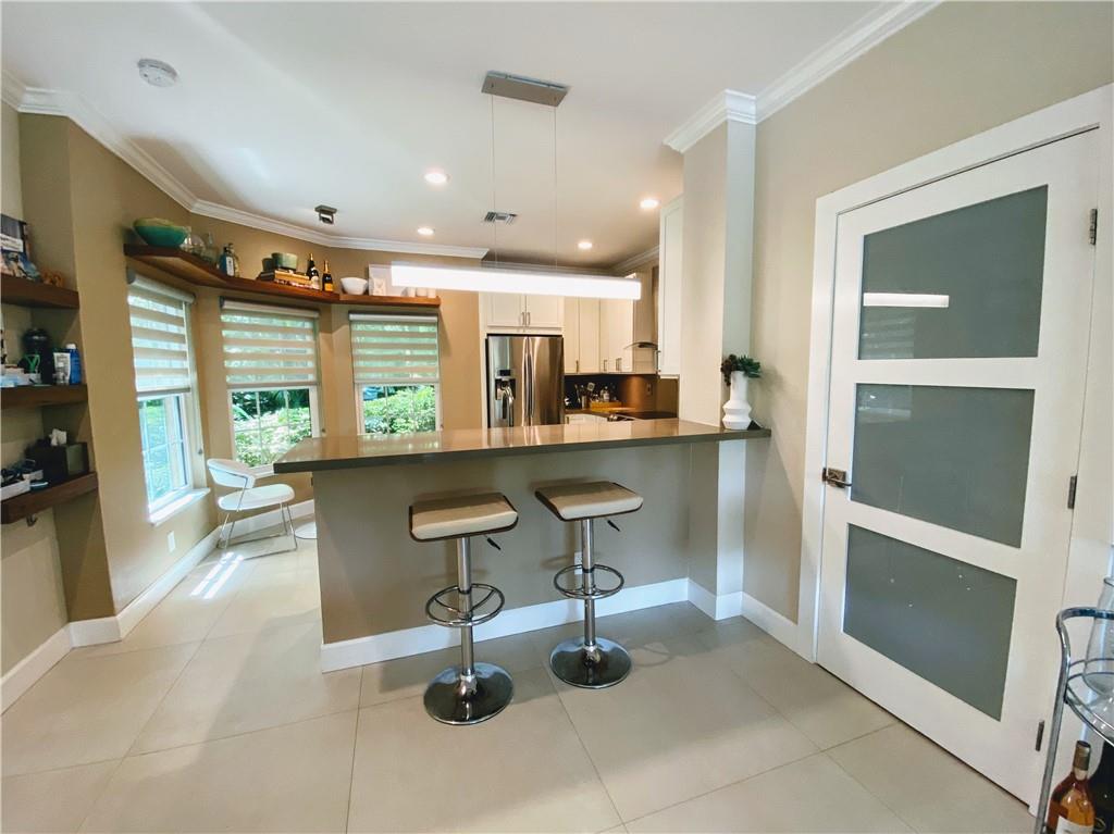 Wow, Spectacular updated Waterfront Town Home with Private Dock. Quaint Key West-Style Development of 15 homes on the South fork of The Middle River. Tree-Lined, River front Vistas from your own Corner End Unit Patio. Beautifully updated Contemporary Interior Features include stunning new Flooring through out. Dramatic open floor plan is perfect for entertaining. Large Eat-in Kitchen with great counter space & Cabinets for storage, SS Appliances, Recessed Lighting & Windows overlooking the Garden. Hurricane-Impact Windows/Doors! Master Bedroom boasts a New En Suite Bathroom, Volume Ceilings, Walk-In Closets & Full-Length Balcony! All Bathrooms have been UPDATED. Bonus Office/Den Space. Pet Friendly. Covered Parking. A few short minutes to Wilton Drive. HURRY ON THIS ONE!
