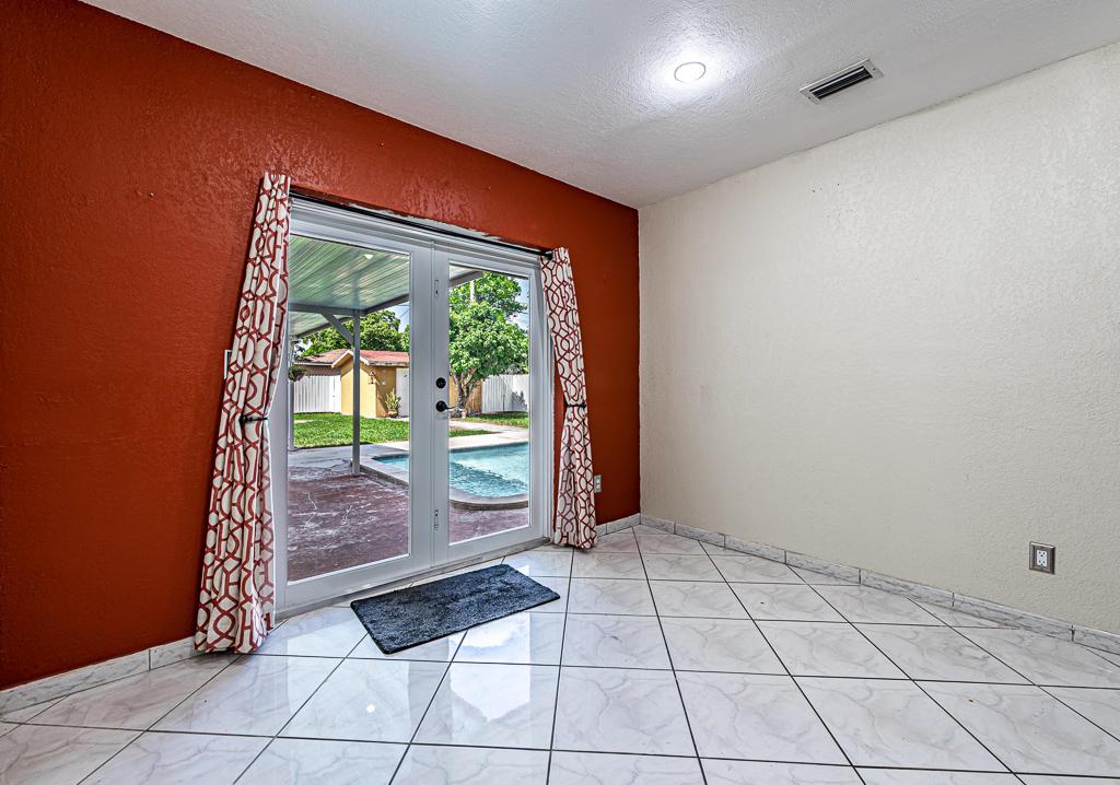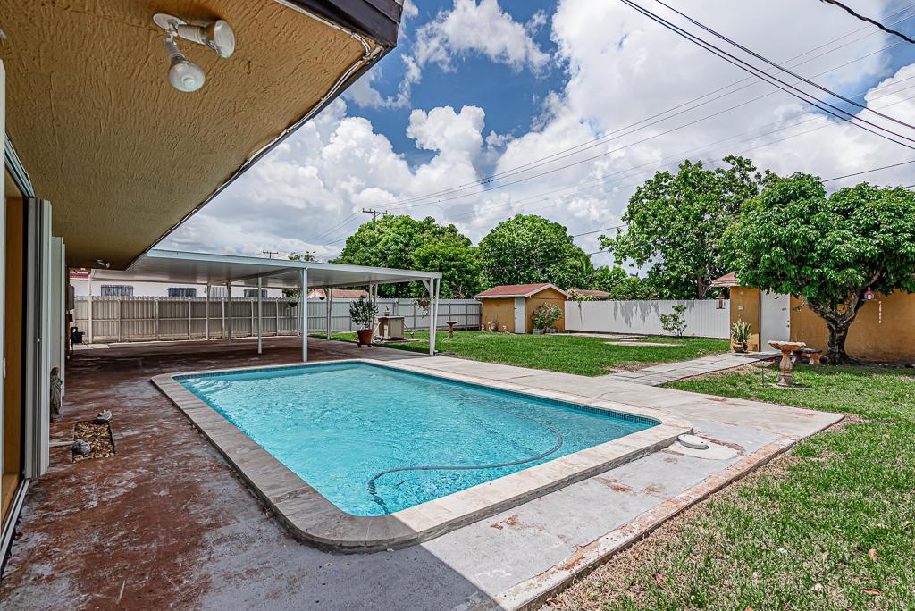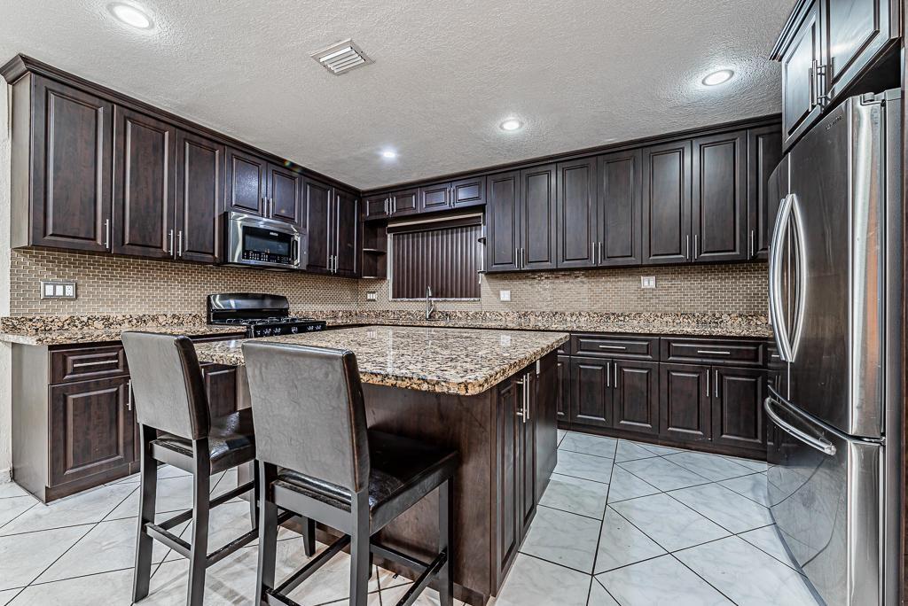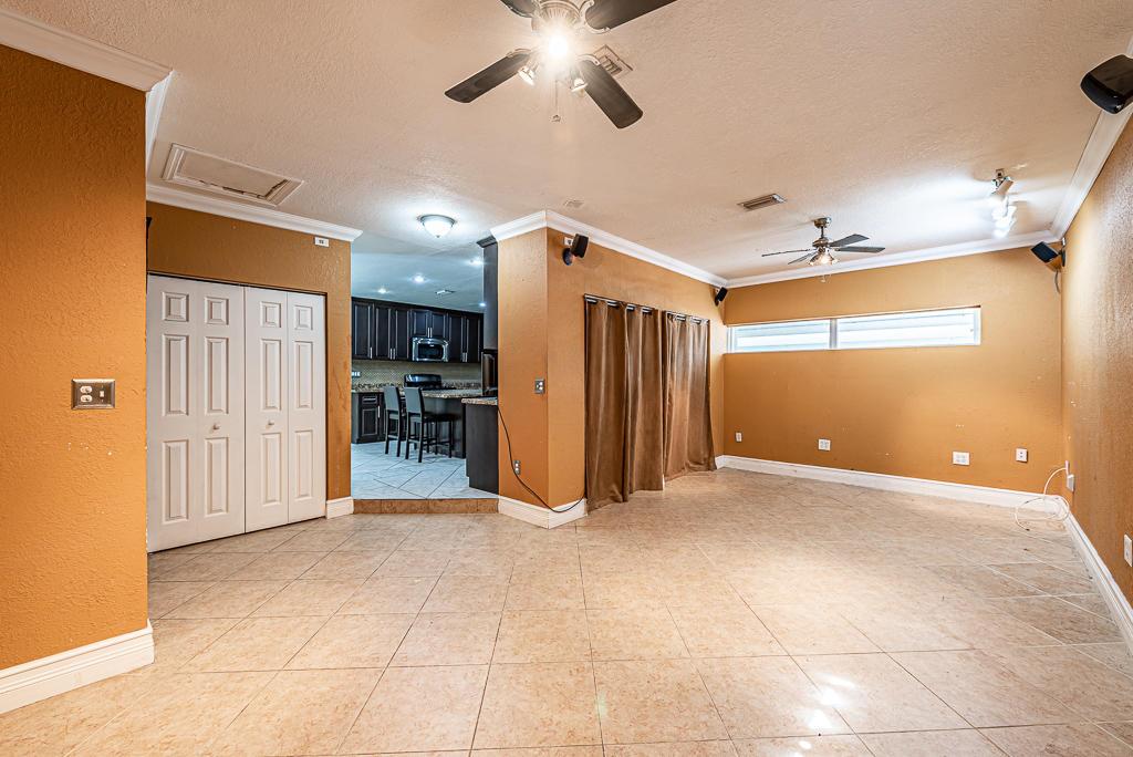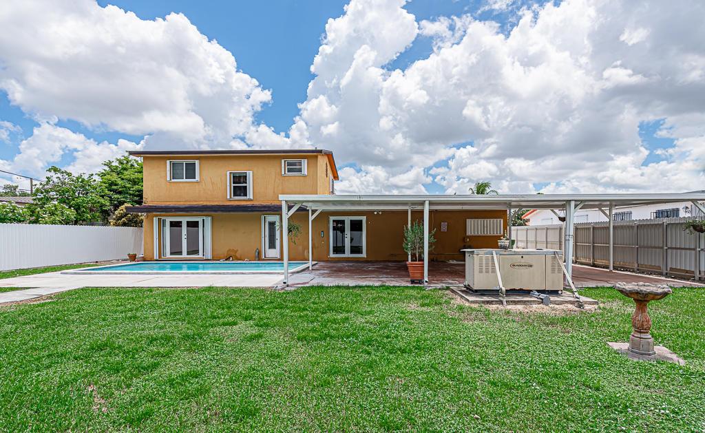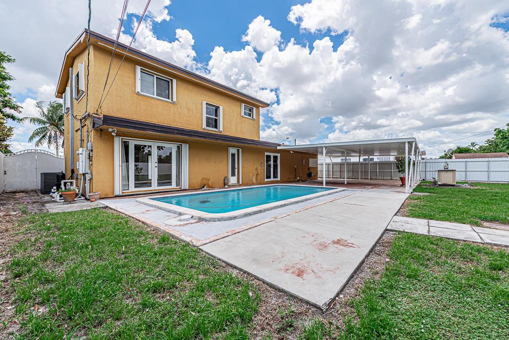 This beautiful single-family 2-story home has all you for great family living. It's located close to schools and major highways. The shopping mall and grocery stores are within proximity. Large 17ftx14ft remodeled kitchen with stainless steel appliances. The kitchen has 66 doors of storage and 100sq ft of granite countertops x 5ft. The master bath upstairs has a shower, a large whirlpool tub with a wall-mounted tv, and a closet dressed with gold travertine stone throughout. The downstairs bath's shower and the closet have been upgraded and there is an exterior door that accesses the pool area. The remodeled pool has a new pump and self chlorinator. Large deck and covered 25ft x 35ft patio. The front door and double patio door are impact resistant.