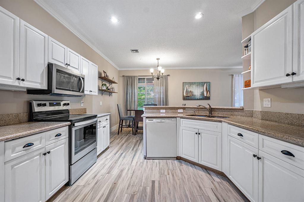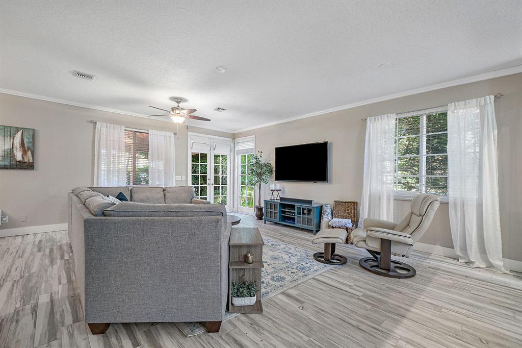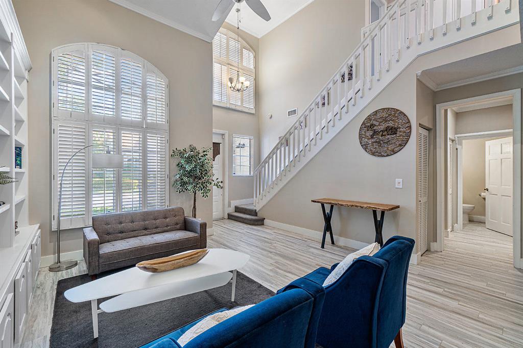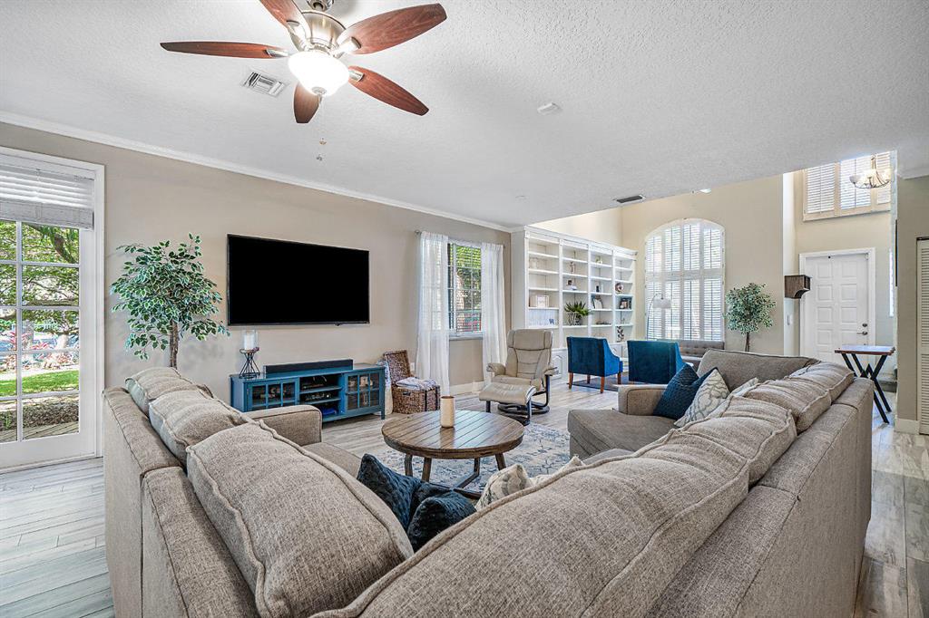 This 3/2.1 townhome has it all! This oversized, corner townhome with 1,955 sq ft feels more like a single family home than anything. You first walk in and are immediately drawn to the height of the ceilings. The home boast beautiful, wood-plank, porcelain tile throughout the open concept home. You have 3 large bedrooms upstairs along with a fully renovated master bathroom and a washer/dryer. Downstairs, you have your kitchen, living and family room with a lovely built in for all your books and pictures to display. The back has a large covered wood patio with lush landscaping, and being the corner townhome it's as if the common area to the side is part of your backyard.