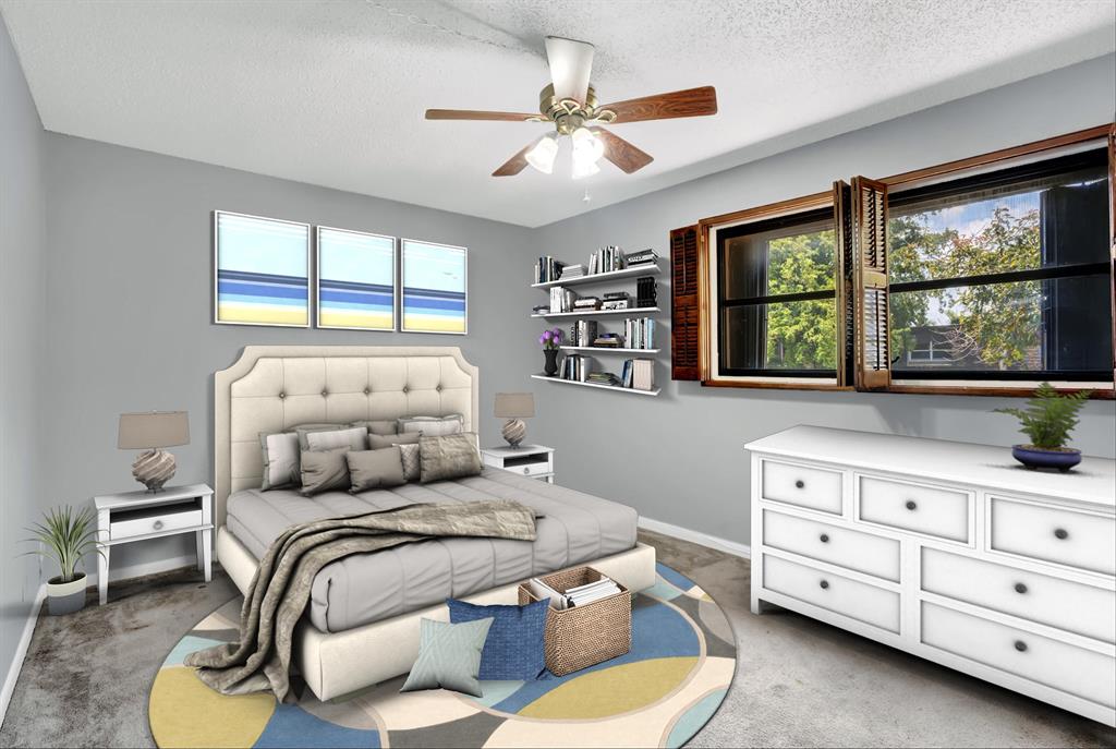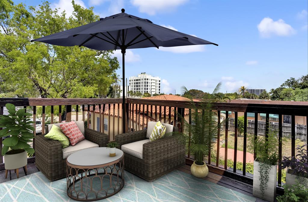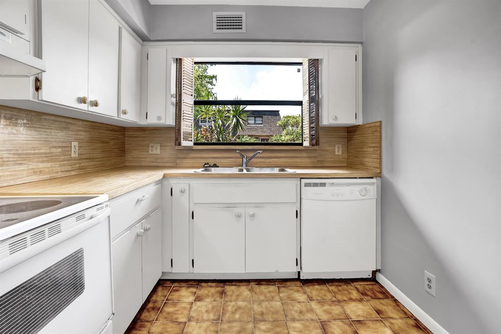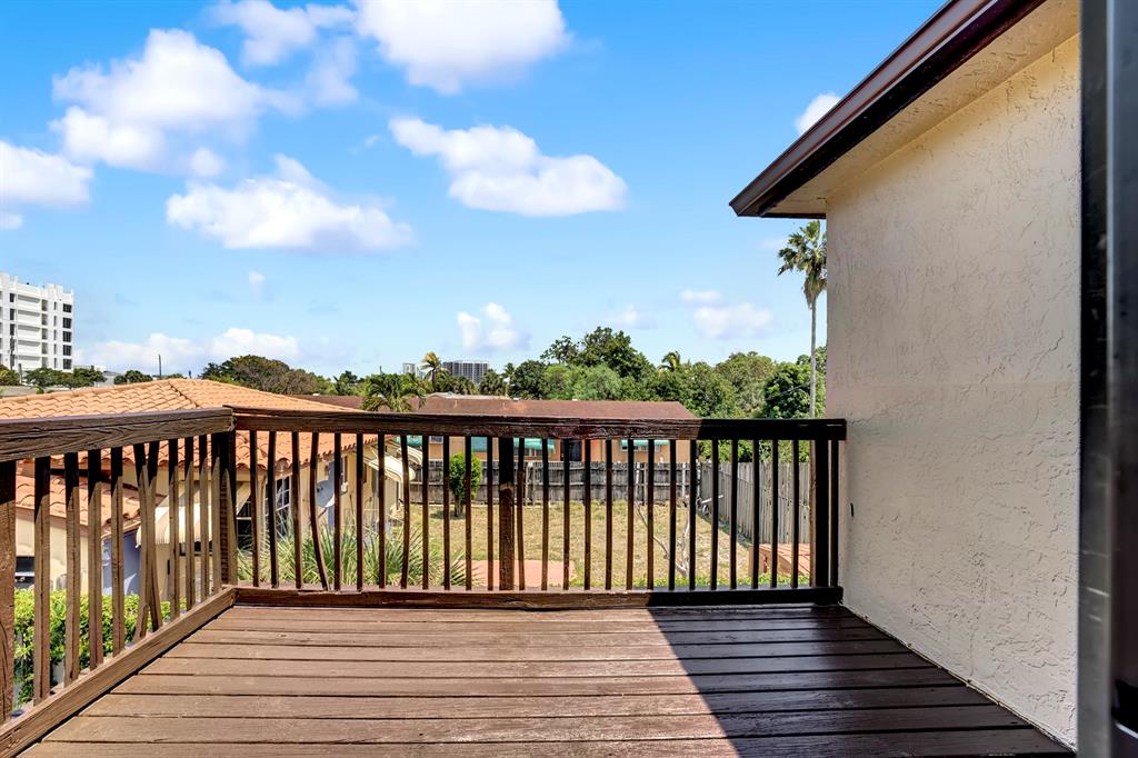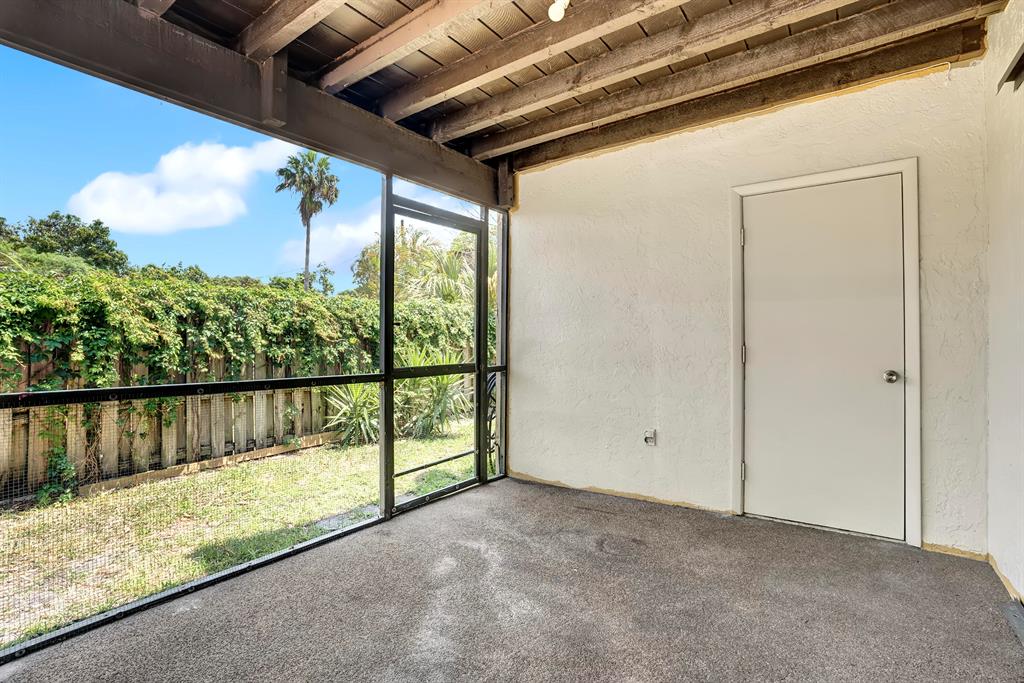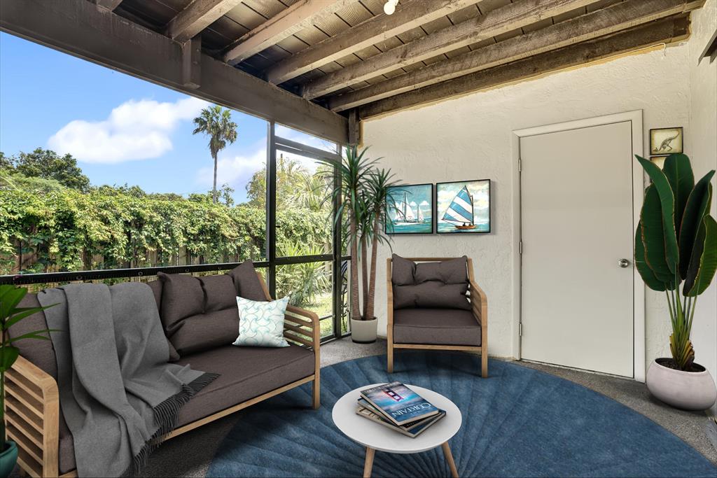 Immaculate 2 bedroom, 2.5 bath townhouse just minutes from downtown and the beach. Enjoy peace of mind with a seller-funded full home warranty. Remodel the kitchen to suit your distinctive style with a $4k seller credit. Ideal floorplan features a spacious living area flooded in natural light and a half bath on the first floor, and 2 bedrooms and 2 full baths on the second floor. Pass through the sliders in the living area to discover a screened-in patio with a garden view and a utility closet with full size washer/dryer and a 58 gallon GE water heater. The spacious main bedroom boasts sliding glass doors leading to your private balcony, a large walk-in closet and an en-suite bath. Roof was re-coated 2 years ago, new carpet, fresh paint and plenty of storage. Pool is just steps away.