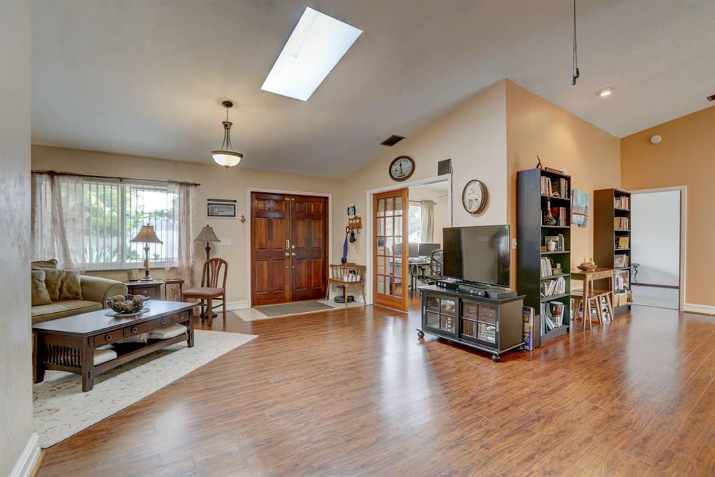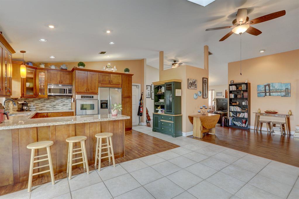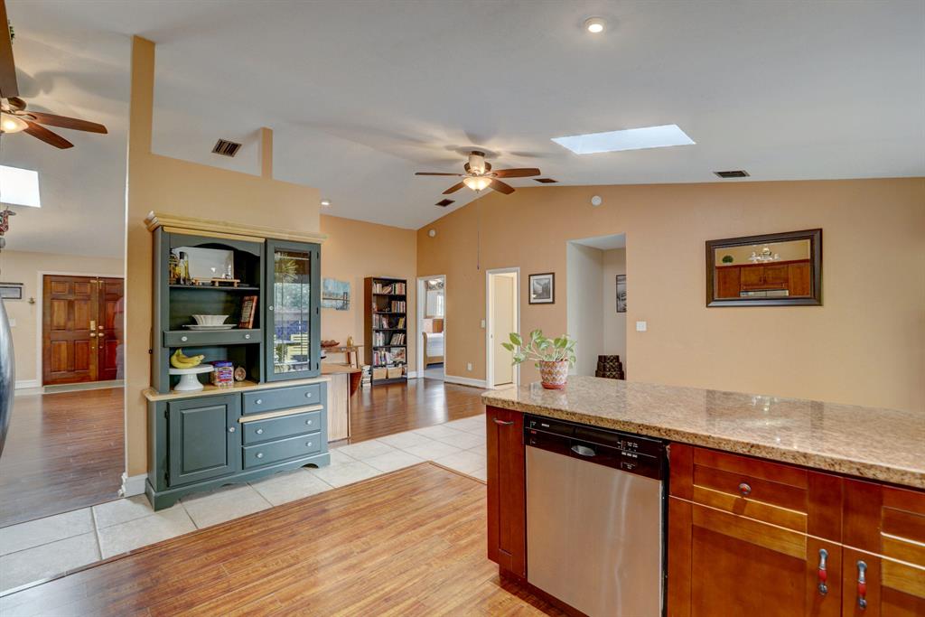 Welcome Home to this Fantastic 4/2 with 2 car garage!!! NO HOA!!! Located just off Orange Dr, Amazing curb appeal greets you as you enter and Skylights await allowing lots of light and brings the outside in. New Wood-Like Flooring, Vaulted ceilings, high-hat lighting. Kitchen equipped with newer stainless appliances, granite counters, beautiful wood cabinetry with tons of storage, inviting bar area for extra seating. Split Bedroom Plan, Master Bedroom with on-suite, Xtra Large Walk-In Closet. Shed,Jacuzzi and plenty of room for backyard BBQ's with family and friends. A/C 2018, Fresh Paint, Tankless Hot Water Heater, Hurricane Windows/Accordion Shutters, Garage is complete with new flooring and A/C. Pride of Ownership is evident throughout. Location! Location! Location!