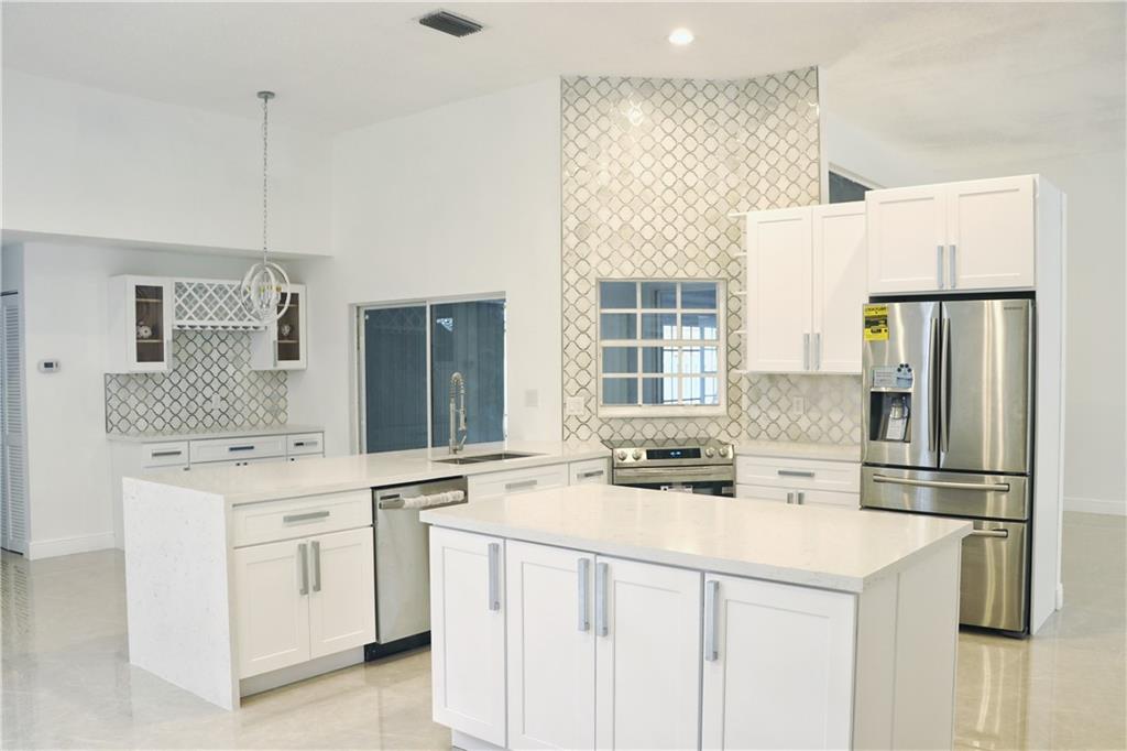 A nice cozy house that you will definitely call it home! This 5 bedroom, 3.5 bathroom home is in the gorgeously maintained community, The North Lake. Property offers a beautiful OPEN layout with amazing living space on the first floor, 32x32 inches porcelain tile, stunning exclusive kitchen cabinetry with carrara countertop, brand new stainless steel appliance, and all fans & pendant lights are newly installed. There are 5 spacious bedrooms with modern wood look tiles and 3.5 modern renovated bathrooms. Stunning backyard with tiled patio and pool, and trees & landscaping! This won't last!