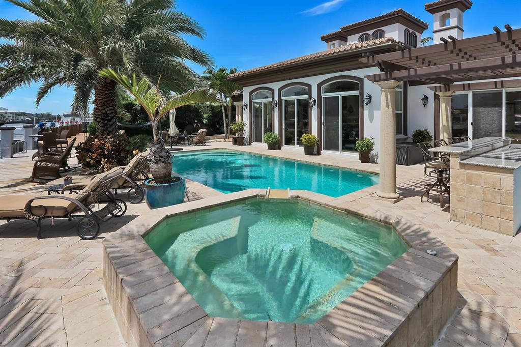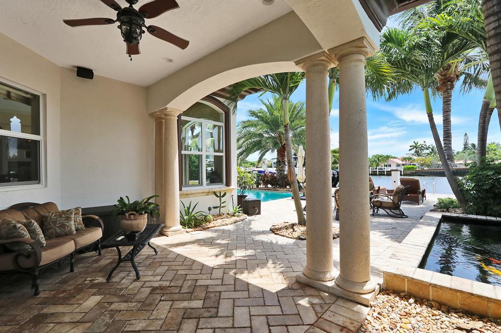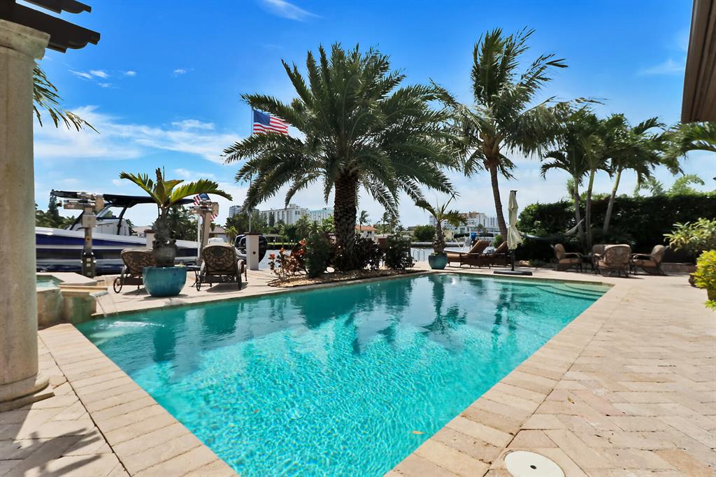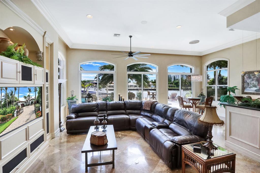 MAGNIFICENT! 3BR/3.1BA WATERFRONT ESTATE ON 75FT DIRECT INTRACOASTAL. Beautifully crafted home where upon entry you're met by elegant formal living & dining rooms. Grand rotunda, soaring ceilings and walls of glass take center stage as you cross through to the open concept living area featuring gourmet kitchen w/breakfast area & family room overlooking pool & spa, dock & intracoastal. Split BR floor plan boasts 2 masters both ensuite, & 3rd bedroom/ cabana bath. Working fireplaces, marble flooring & detailed moulding add to the elegance. Your private, outdoor oasis features pool/spa, summer kitchen, 14,000 lb boat lift, & fully stocked Koi Pond. Circular, gated motor court rounds out the stately presentation of the home. Impact glass throughout/whole house generator for full protection.