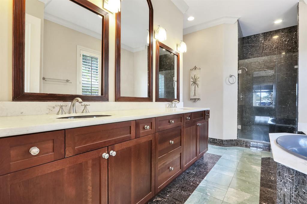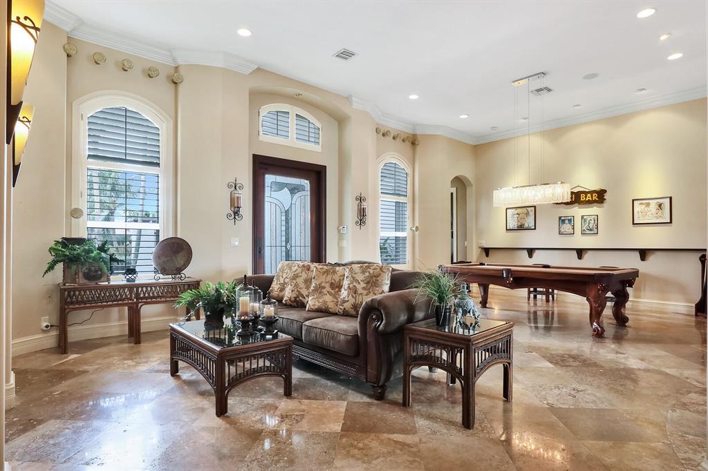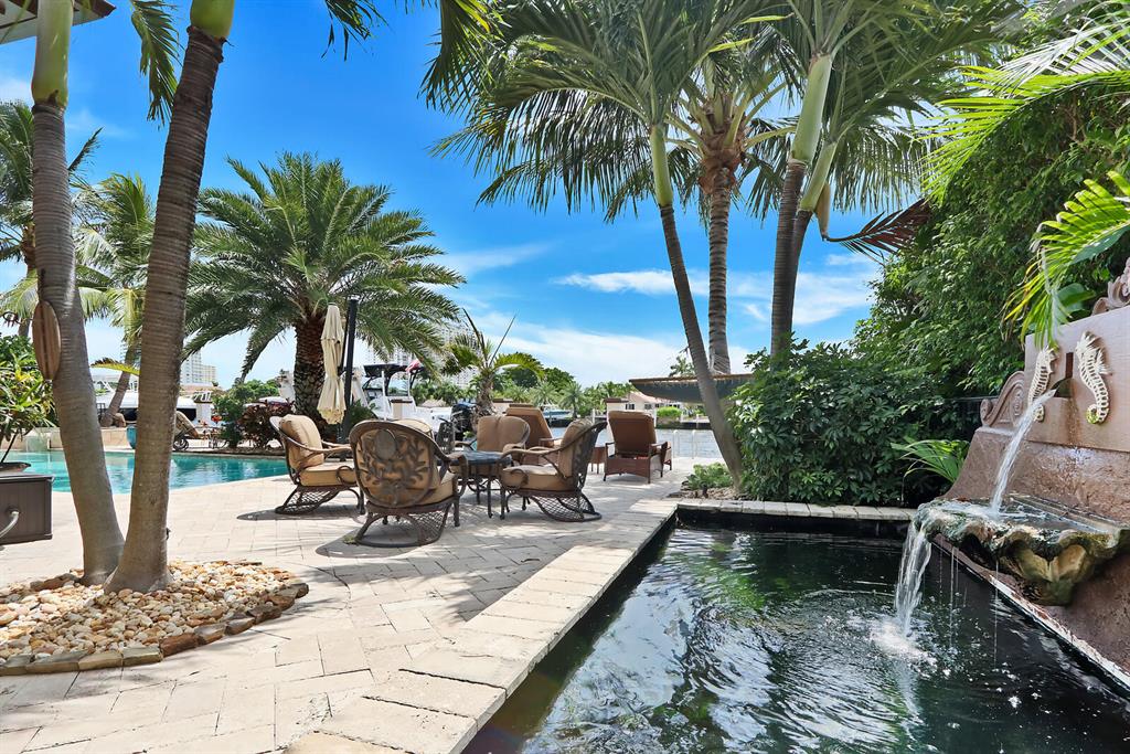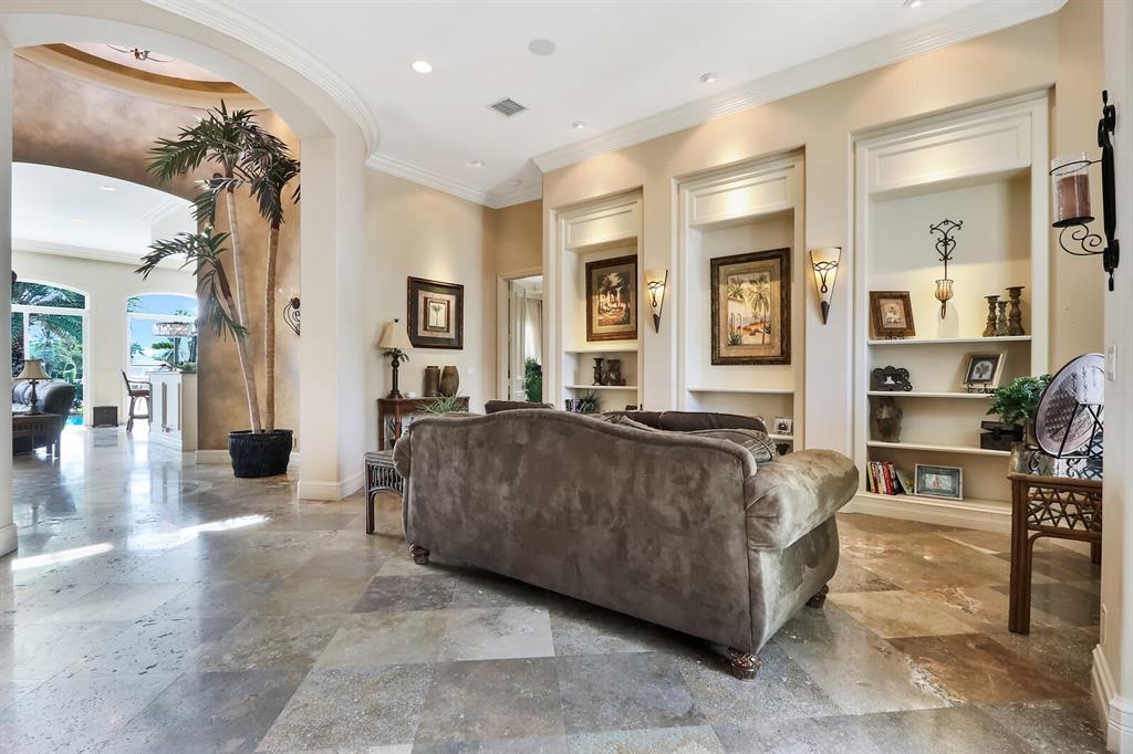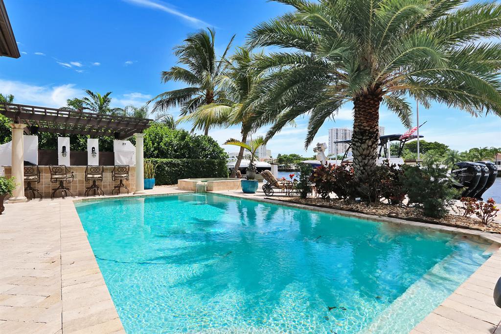 MAGNIFICENT! 3BR/3.1BA WATERFRONT ESTATE ON 75FT DIRECT INTRACOASTAL. Beautifully crafted home where upon entry you're met by elegant formal living & dining rooms. Grand rotunda, soaring ceilings and walls of glass take center stage as you cross through to the open concept living area featuring gourmet kitchen w/breakfast area & family room overlooking pool & spa, dock & intracoastal. Split BR floor plan boasts 2 masters both ensuite, & 3rd bedroom/ cabana bath. Working fireplaces, marble flooring & detailed moulding add to the elegance. Your private, outdoor oasis features pool/spa, summer kitchen, 14,000 lb boat lift, & fully stocked Koi Pond. Circular, gated motor court rounds out the stately presentation of the home. Impact glass throughout/whole house generator for full protection.