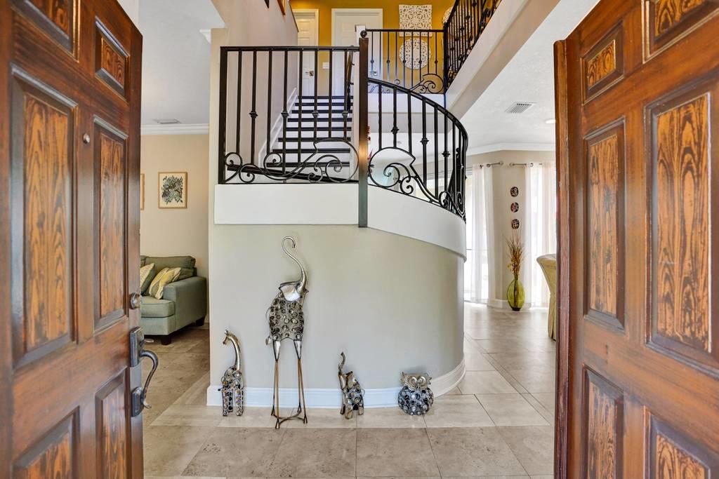 Elegant 2-story renovated Estate home located in the exclusive gated community of North Lakes. This highly upgraded 4 BR + den home has high ceilings, an open floor plan and gorgeous custom marble floors. Crown moldings abound. The dramatic custom iron staircase adds a luxurious touch as soon as you enter this home. The magnificent gourmet kitchen has granite countertops, full backsplash, high-end stainless steel appliances, a wine fridge and spacious breakfast bar. The large master suite has vaulted ceilings, a professionally fit out walk in closet and a master bath that sports dual sinks, a large soaking tub, granite counters and a seamless shower door. There is custom tile work in the guest bathroom that was renovated in 2017. The back patio has a large grassed area, pool and is fenced