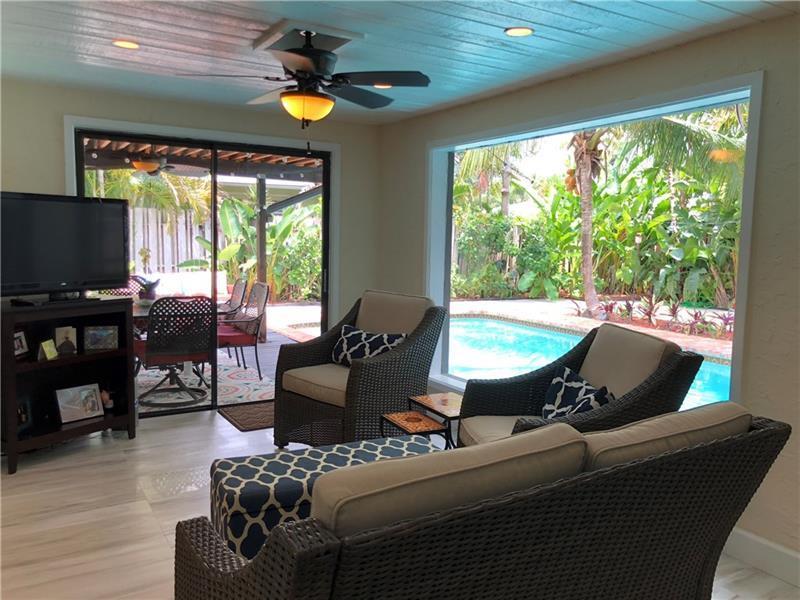 This home as been remodeled from top to bottom and is gorgeous inside. The home gleams from plenty of natural sunlight from an abundance of sliders and windows. The kitchen has granite countertops and backsplash, loads of bright white cabinets and stainless steel appliances and under cabinet lightening. This home is built for entertainment and family life with the focal point being the beautiful pool outside the picture window in the sunroom. Laundry is no longer a drudgery with plenty of room and light. The 4th bedroom could be used as a game room and boasts plenty of storage and natural light. New beautiful porcelain tile throughout with laminate in the bedrooms. Must see this home to truly appreciate, with excellent convenience to airport and beach.