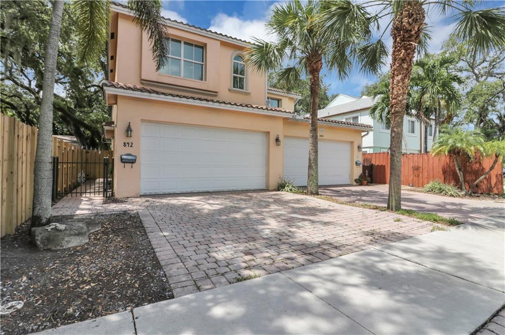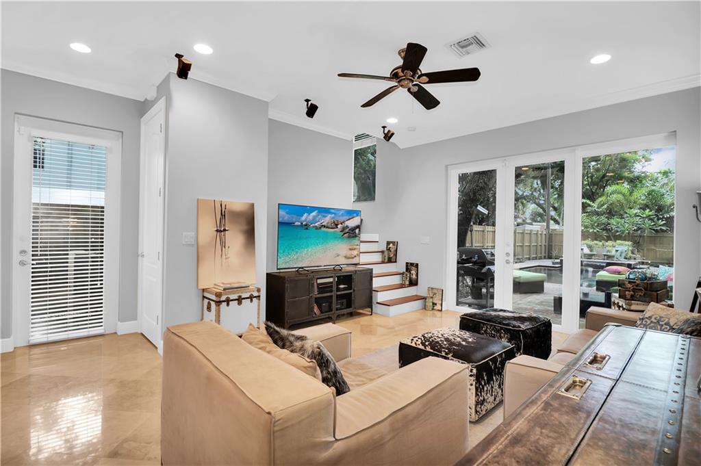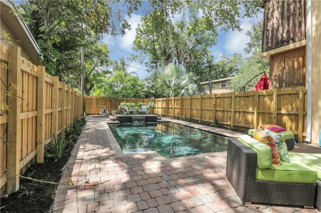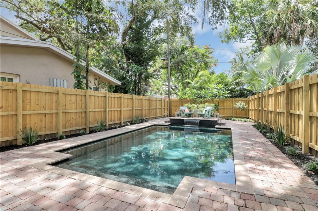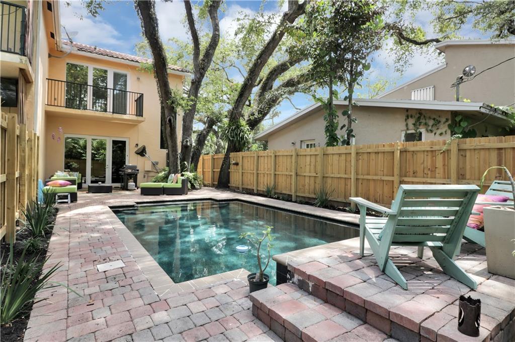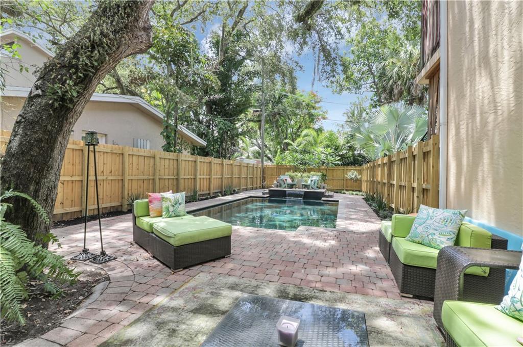 Upscale & unique Ft. Lauderdale townhome w private tropical lagoon style pool & descent waterfall. Huge pool deck & covered patio, fully fenced yard w lush foliage & 100 year old oaks. Side foyer entry, classic marble flooring in the main living areas, rich wood floors on the stairway, loft/bonus room and in 2nd floor bedrooms. Spacious wood & granite kitchen, new stainless appliances, kitchen bar counter & adjacent dining café. Generous sized great/living room opens to covered patio. Upstairs owner's retreat & bath w walk-in closet & treehouse like balcony w sweeping pool views. 2nd bedroom has an ensuite bath. Impact hurricane windows & doors, 2 car tiled garage w paver driveway and walkway. New fence, not original/newer AC, No HOA dues, nearby local park. Close to everything.
