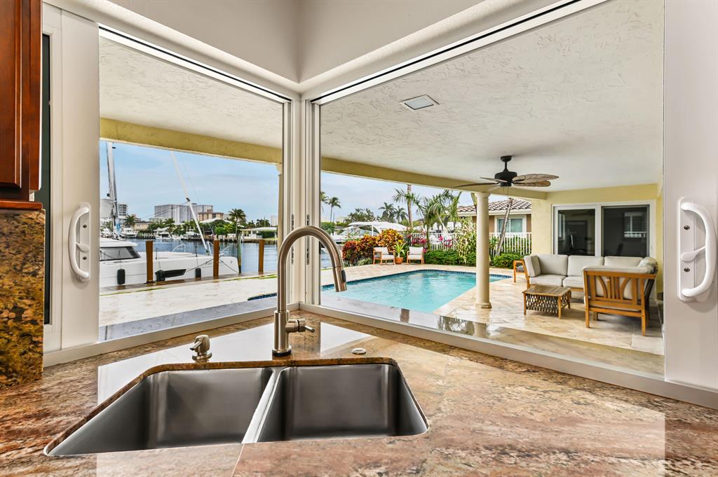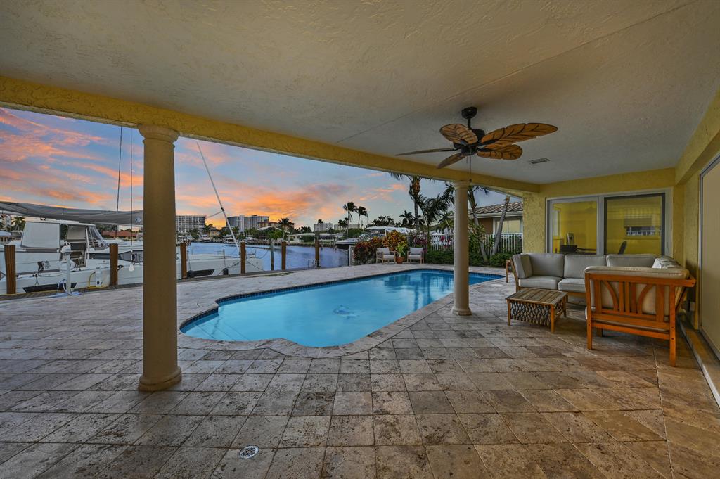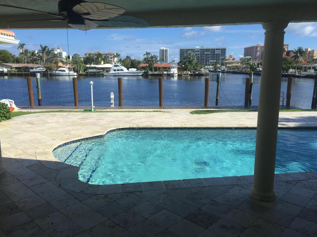 EXPANSIVE WATER VIEW - 80' waterfront w/68' deep water dock on elite Lake Capri connected to Intracoastal Waterway. Tarpon and rays right in your back yard ! You will love the open floor plan and views of the saltwater pool and long blue water the minute you step inside. Remodeled with tile throughout & premium impact windows makes it light and bright. This Harbor Village home has a gorgeous tropical setting, circular drive and easy access to the highly acclaimed, recently rejuvenated Pompano Beach. Master bath has access to the pool and sliders from the bedroom with beautiful view. Split bedroom plan offers what could be a 2nd master on the other side of the home & the 3rd bedroom could be an office with sliders to the pool. Very private setting, protected from boat wake and noise of the