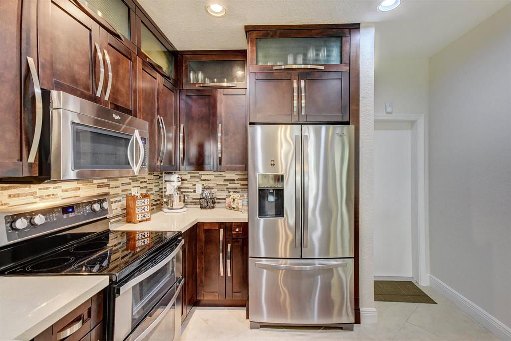 Wow! Look at this home! Every detail has been lovingly attended to and it is BEAUTIFUL in here. The entire property was renovated about 3 years ago. The renovation included kitchen cabinets and countertop, appliances, new tile flooring on the first floor, wood flooring on the steps and upstairs (No carpet or old laminate flooring here!), a TANKLESS water heater, AC, plantation shutters throughout, and so much more. This home is within walking distance to the A Rated schools of Weston and to a Publix shopping plaza. With only 6 two bedroom townhomes with a garage on the market in Weston- take a look at the rest, then buy the BEST! Move right in for easy living in Weston!