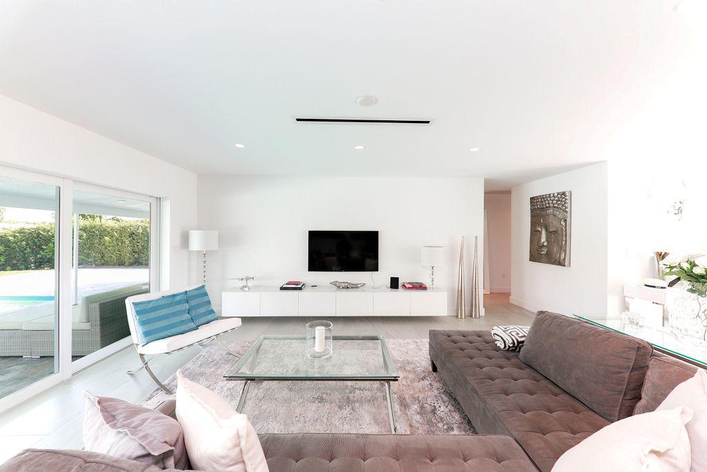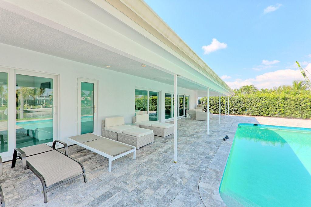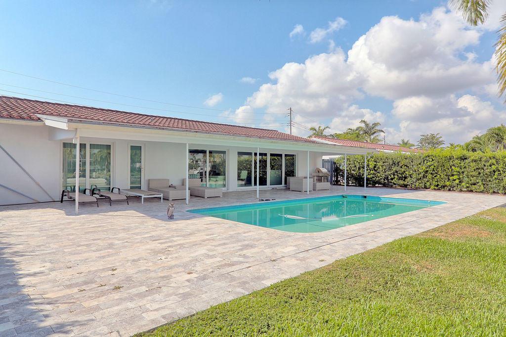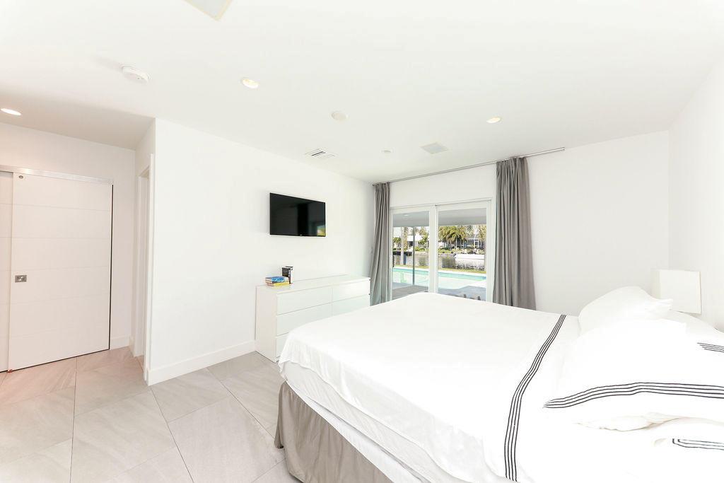 Beautifully renovated waterfront single family home on a desirable canal just off lake Santa Barbara, Only 1 large Fixed Bridge (12' +-, Federal Hwy Bridge). Huge back yard with large pool,Enter into this modern custom home with a open concept living/dining/kitchen area with great views over the pool area and canal. Updated kitchen with high end JennAir Appliances, custom built in wet-bar with wine cooler in living area. This home has no expense spared and is updated with:Hurricane Impact Windows and doorsElectrical, Plumbing, Ventilation SystemNew bathrooms, Flooring throughout, custom solid doors and much more.