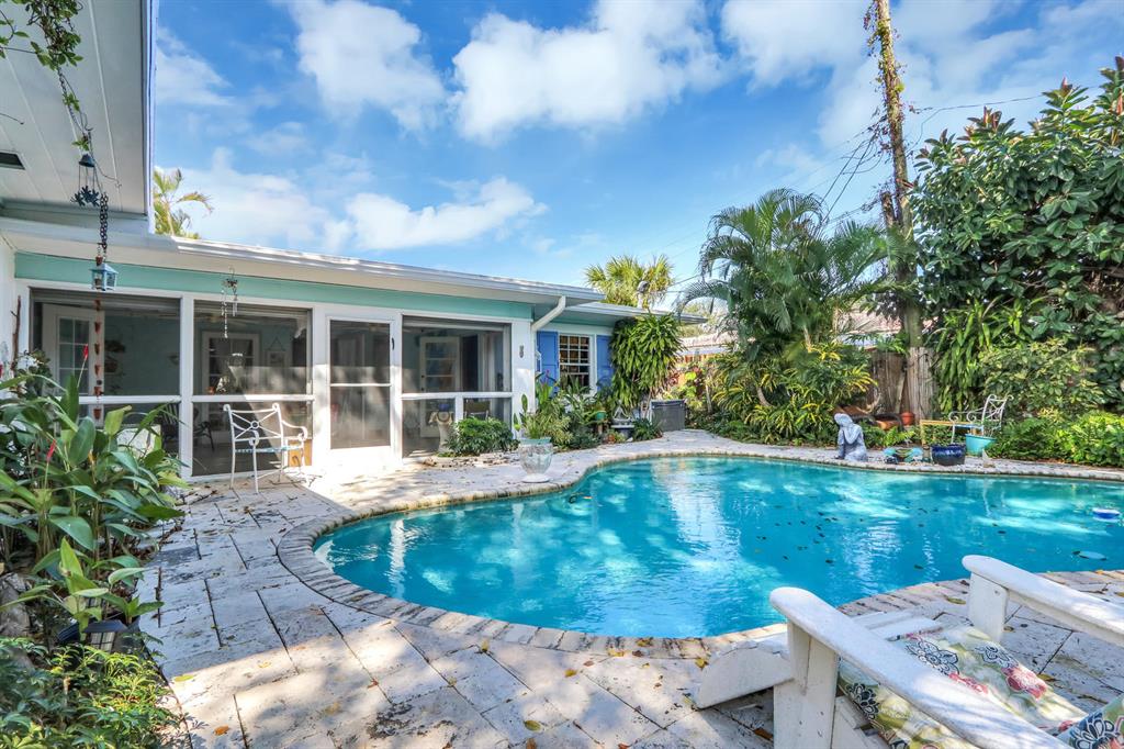 If you are looking for a unique, private sanctuary with artistic flair, look no further. This 3/2 home features a beautiful pool and separate hot tub, one-of-a-kind mosaic floors, and Dade County pine. The home is designed to connect you to the peace and beauty of the lush vegetation of the outdoors and features a spacious screened lanai to read, relax, and feel the coastal breezes. Explore the nature paths and second story roof terrace. Eco-features include a saltwater pool and solar hot water heater. Located in desirable Old Pompano and within walking distance to Pompano Beach Air Park, Kester Park, Jaycee Park, Pompano Beach Amphitheater, the Cultural Center and the new library. This gem won't last.