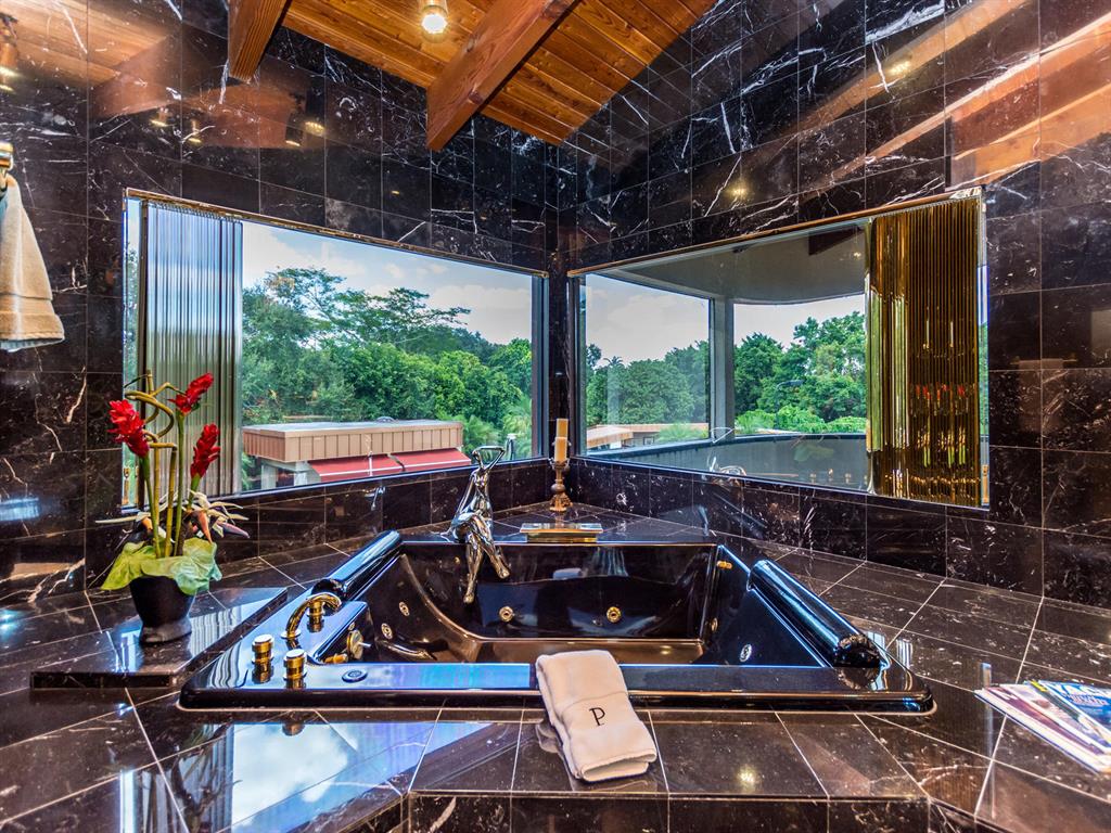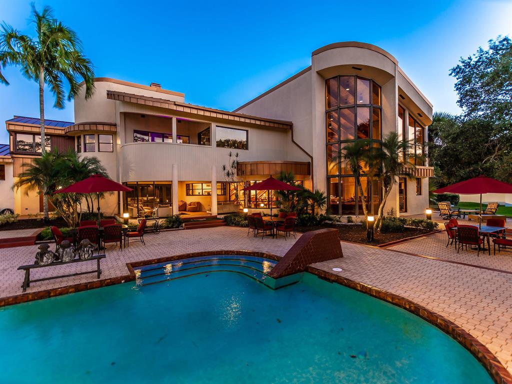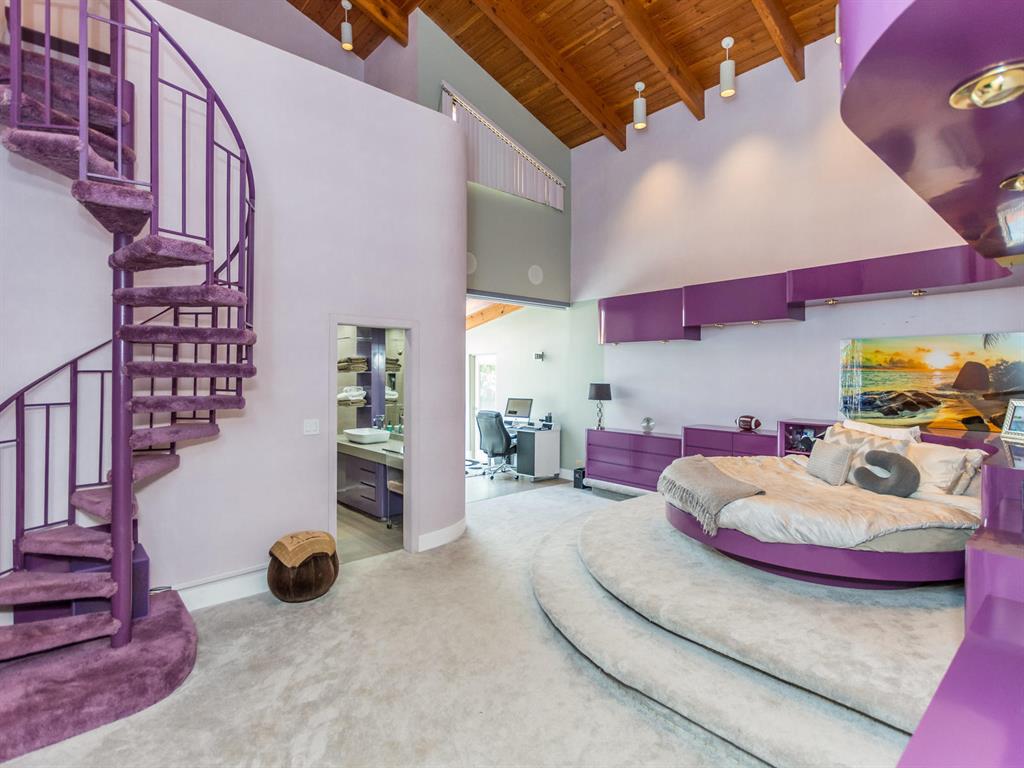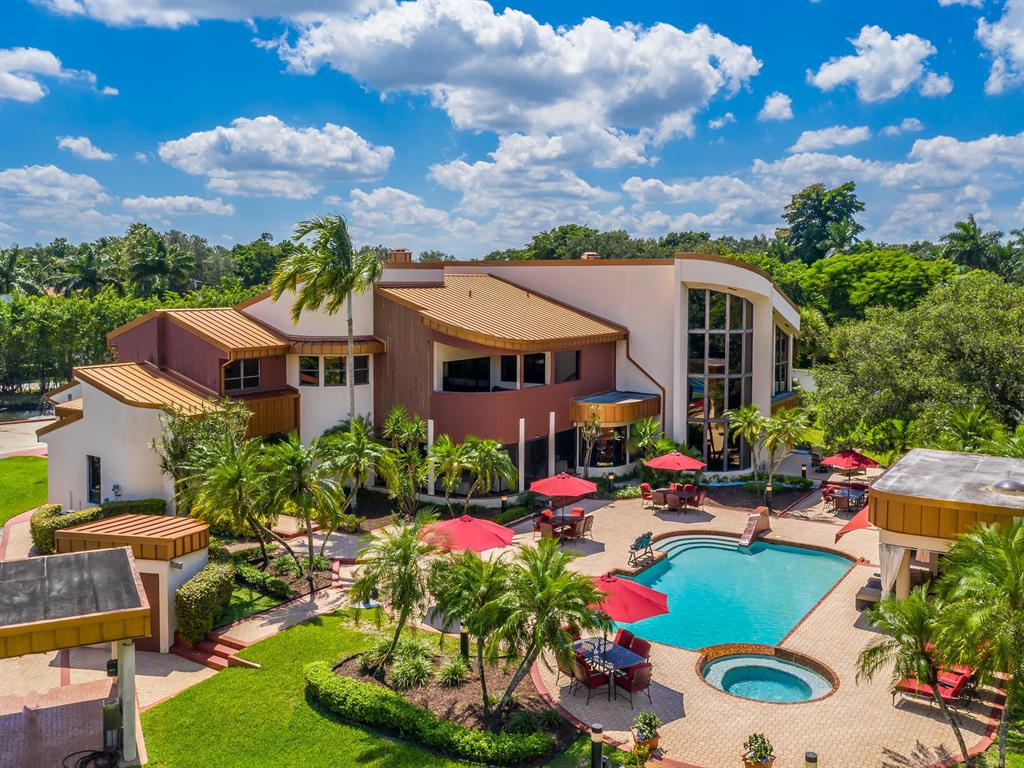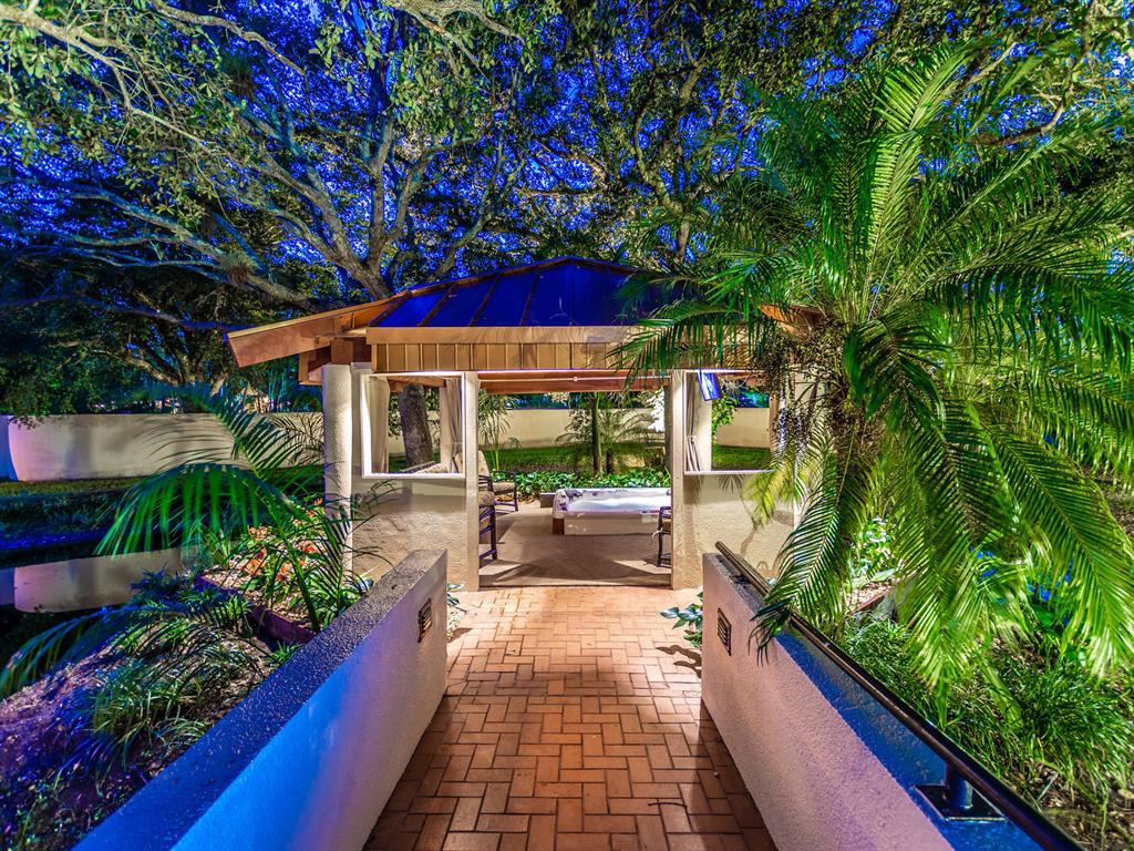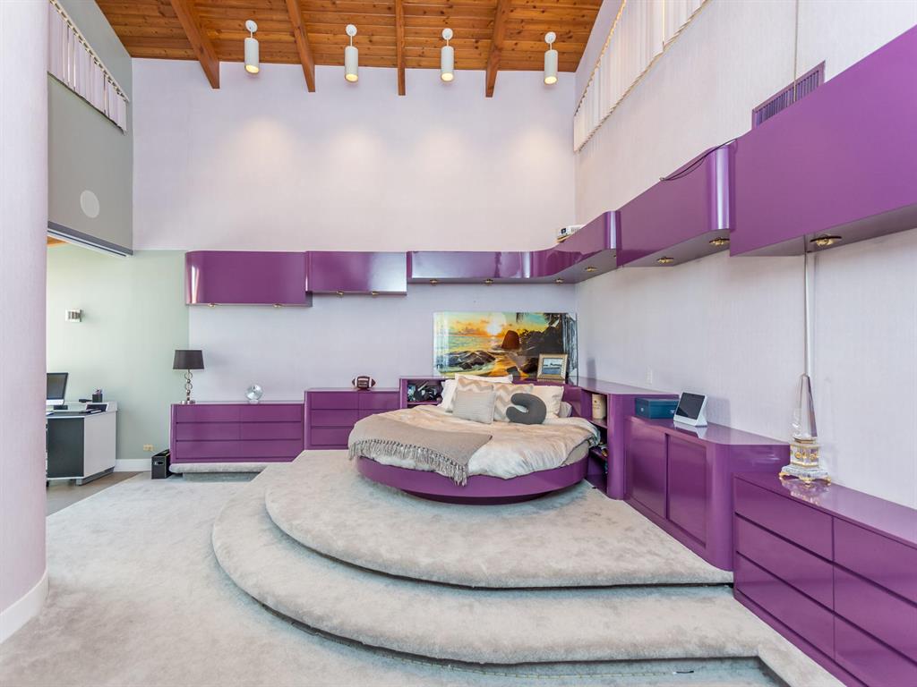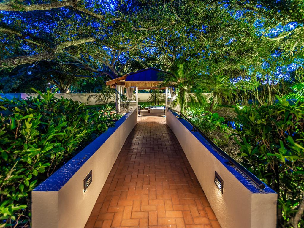 This one of a kind Architectural Masterpiece- 5 bedroom/5.5bathroom contemporary and professionally designed home and sits on a 2.5 acre estate with over 400 feet of wall, plus fence with a secured gated entry on a private street. Extra large master suite with 25 ft ceilings, has a large master bath 26'x20' with whirlpool tub and steam room and 2 offices. The 40 ft ceilings in living room and Italian marble floors, custom fireplace which looks like a piece of art soaring to 40'. Gourmet kitchen. Oversized heated pool, outdoor kitchen/bar , 8 person hot tub gazebo, 2 stocked ponds, lighted tennis and basketball court, outdoor bar, 8'x20' outdoor movie theater, architectural garden, fire pit. You feel like you are at a 5-star resort. No HOA, 80 KW Generator.