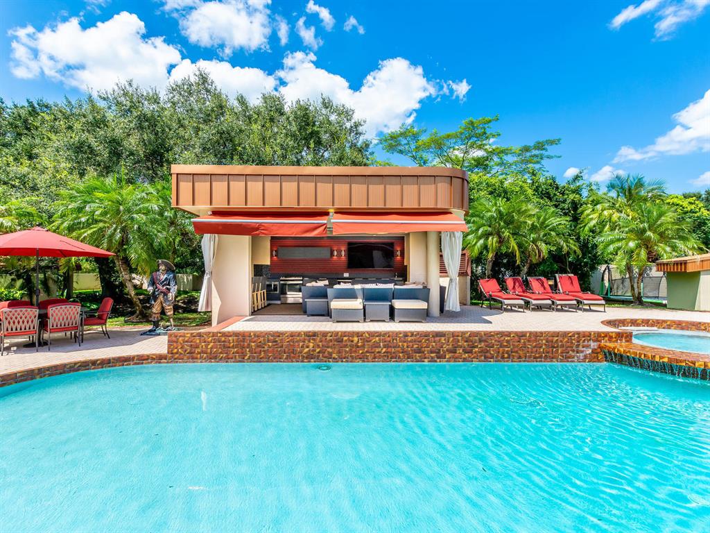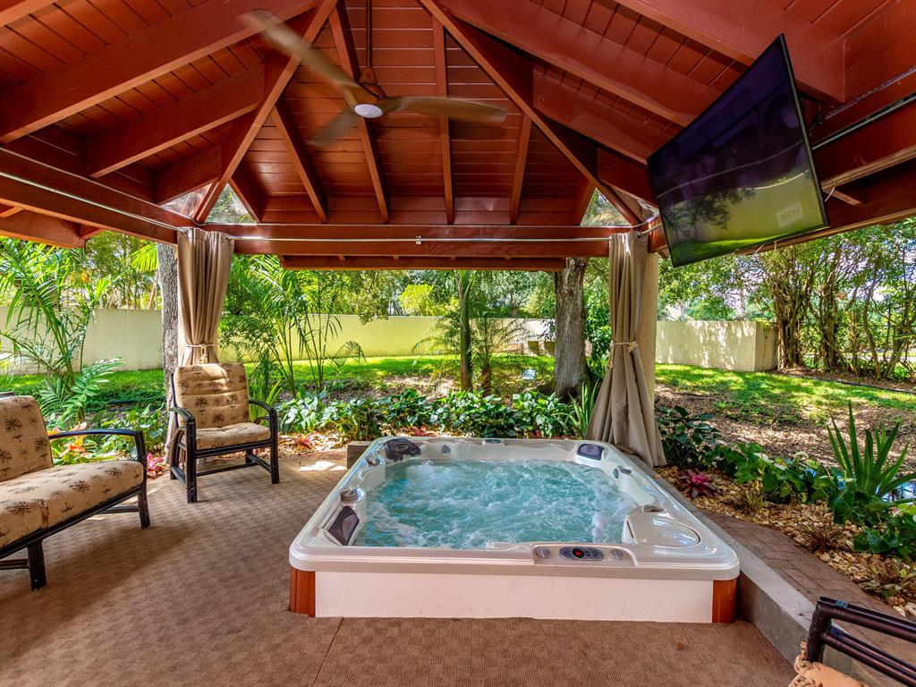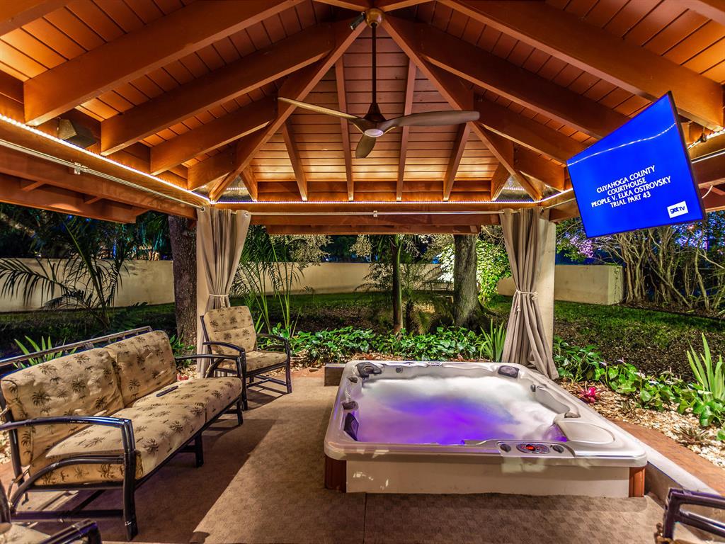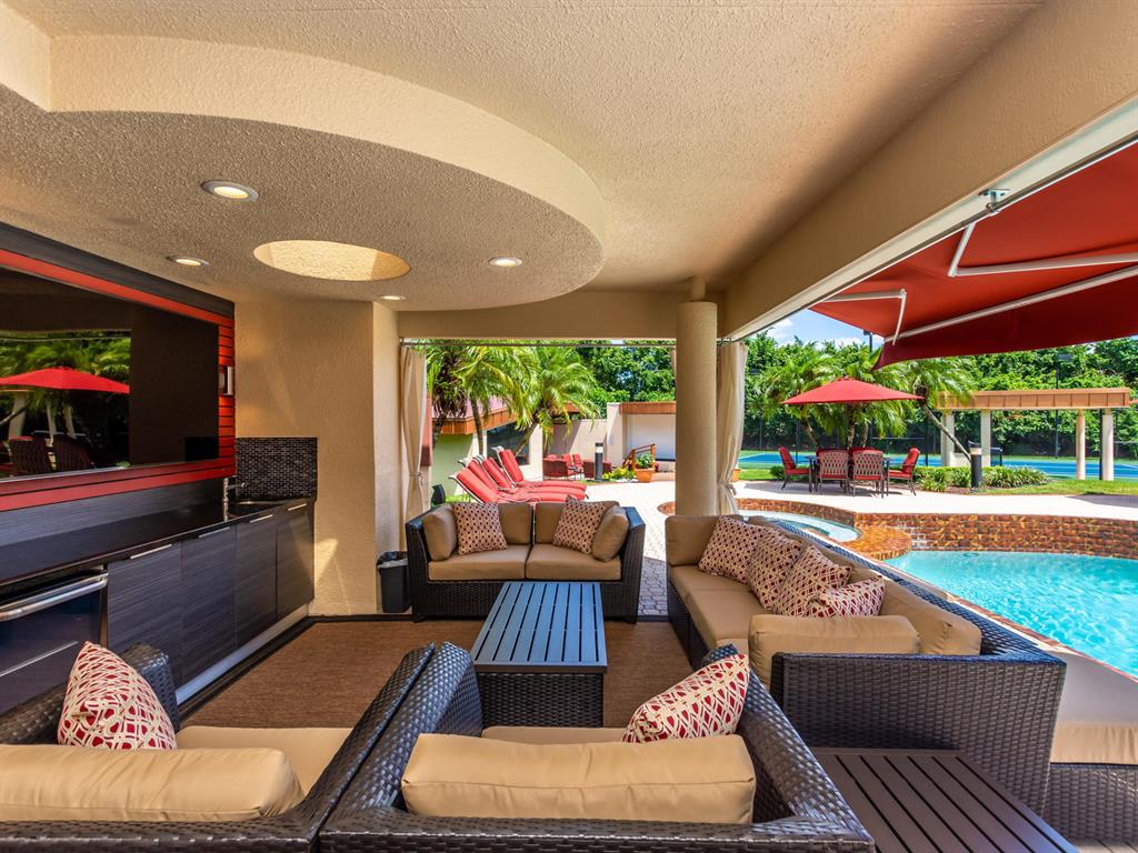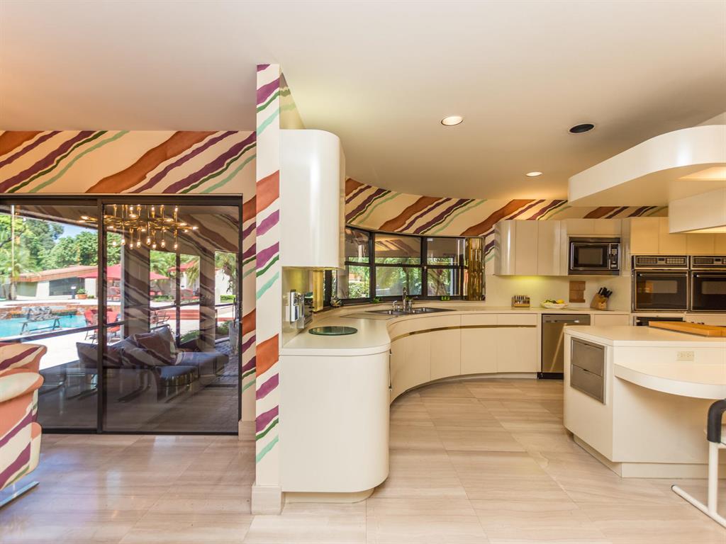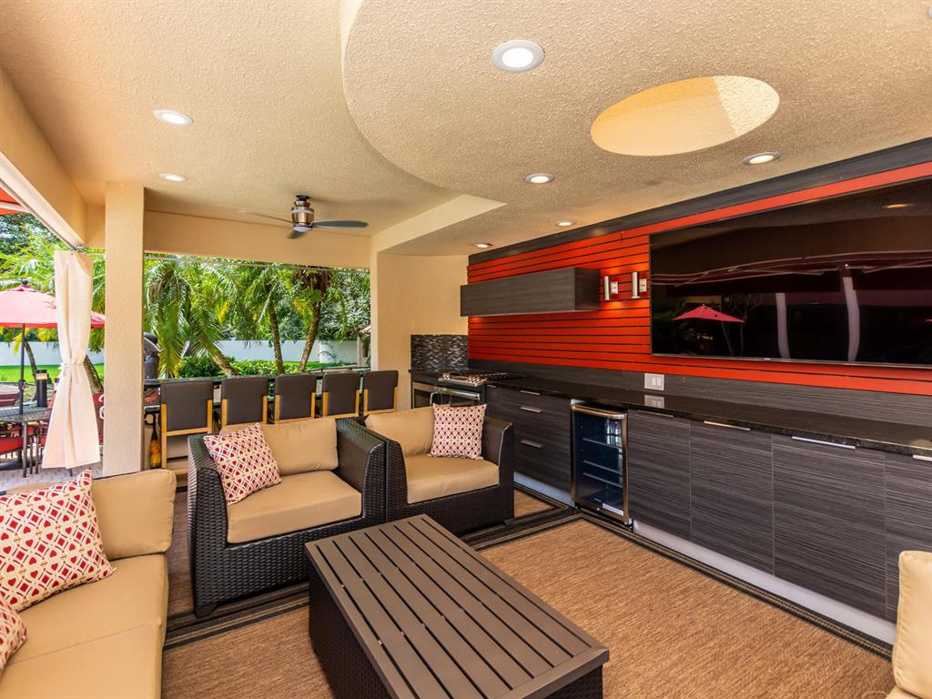 This one of a kind Architectural Masterpiece- 5 bedroom/5.5bathroom contemporary and professionally designed home and sits on a 2.5 acre estate with over 400 feet of wall, plus fence with a secured gated entry on a private street. Extra large master suite with 25 ft ceilings, has a large master bath 26'x20' with whirlpool tub and steam room and 2 offices. The 40 ft ceilings in living room and Italian marble floors, custom fireplace which looks like a piece of art soaring to 40'. Gourmet kitchen. Oversized heated pool, outdoor kitchen/bar , 8 person hot tub gazebo, 2 stocked ponds, lighted tennis and basketball court, outdoor bar, 8'x20' outdoor movie theater, architectural garden, fire pit. You feel like you are at a 5-star resort. No HOA, 80 KW Generator.