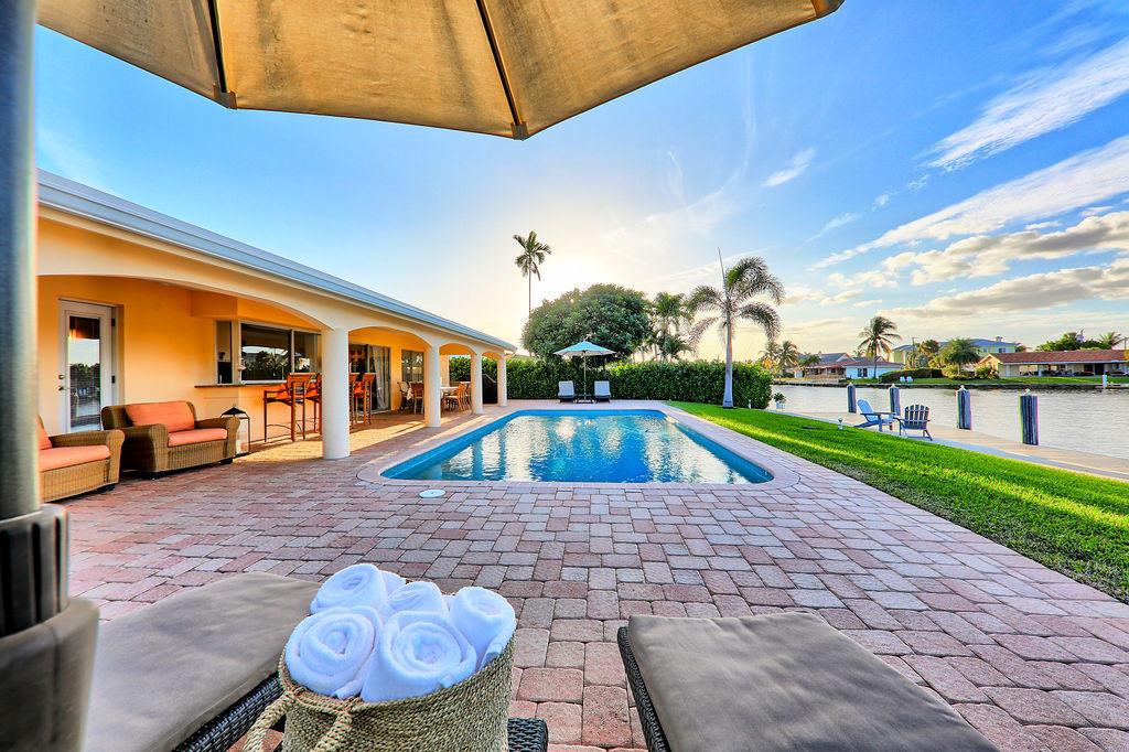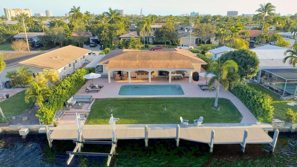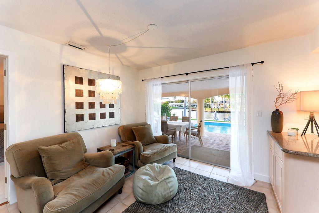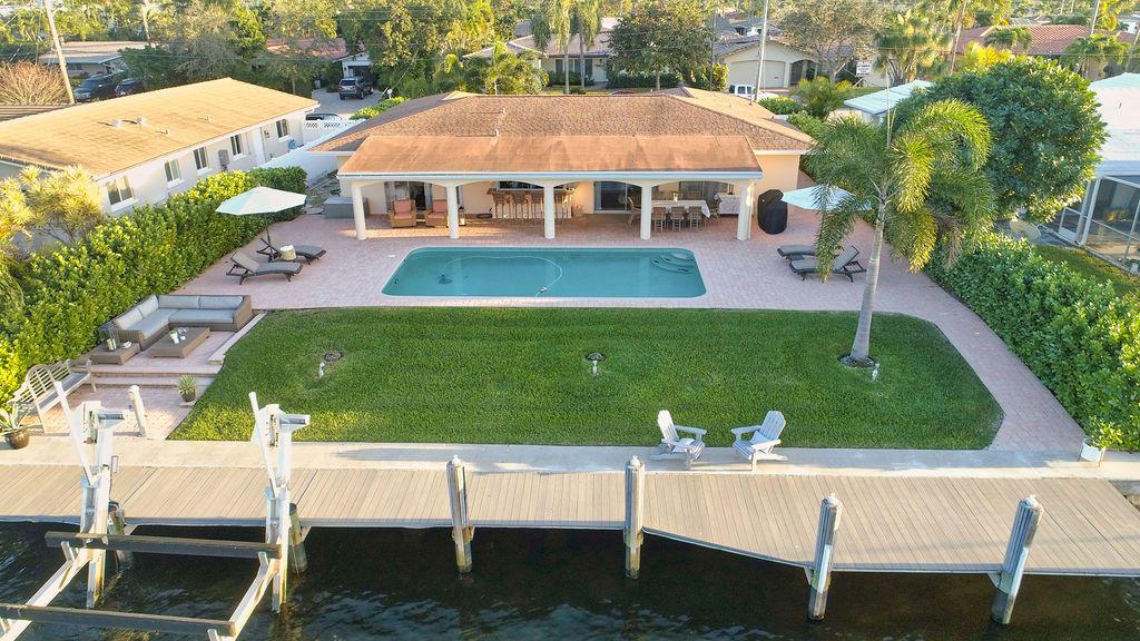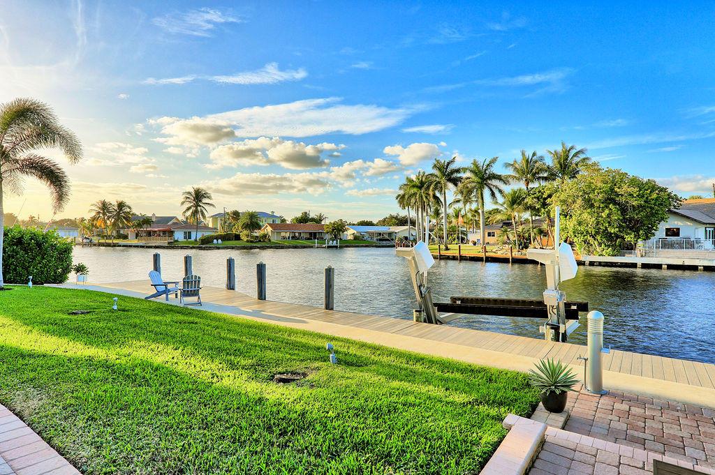 Exceptional water views on intersecting wide canal just off Lake Santa Barbara!. This is a true boater paradise 78ft waterfront, double cap seawall, boatlift (up to 12K lbs.) and new 68ft NewTechWood(r)composite dock decking.Location is key; located towards the end of a cul-de-sac with no through traffic, only 1 fixed bridge (US1) and close to shopping, dining and schools.This home offers plenty of space for entertaining. Kitchen opens towards the covered patio with a granite counter bar with amazing views of the property.Split bedroom floorplan, 2 of the bedrooms has doors towards the patio. Newly renovated modern bathrooms with high end tiles and glass showers. New Trane XR A/C, Stainless Steel appliances. 2 car garage with RaceDeck floors and Gladiator cabinets.