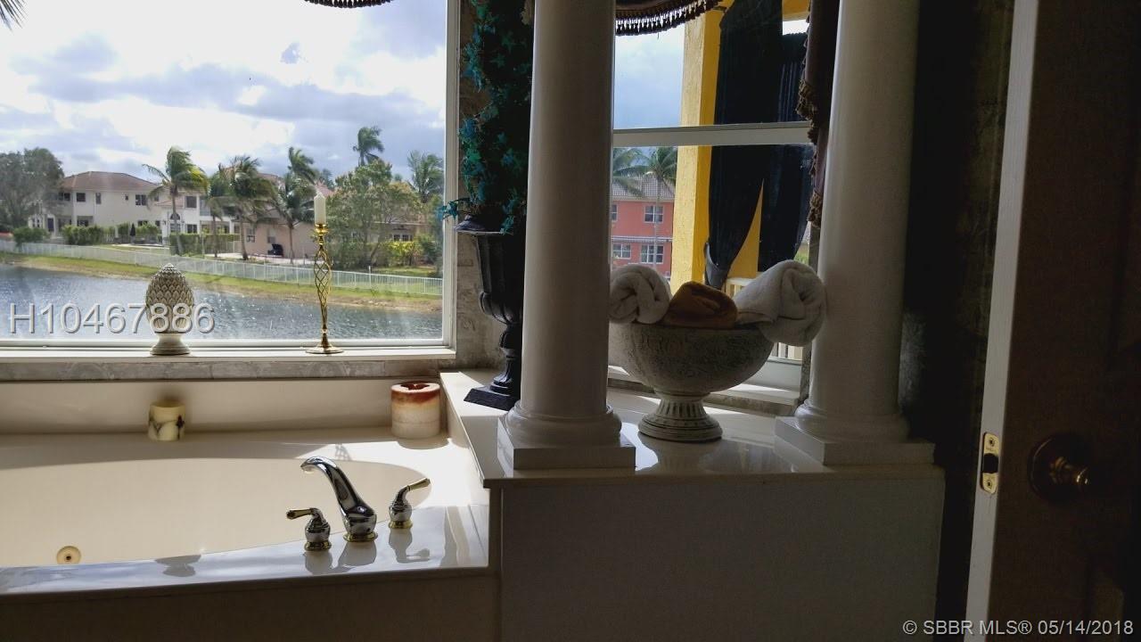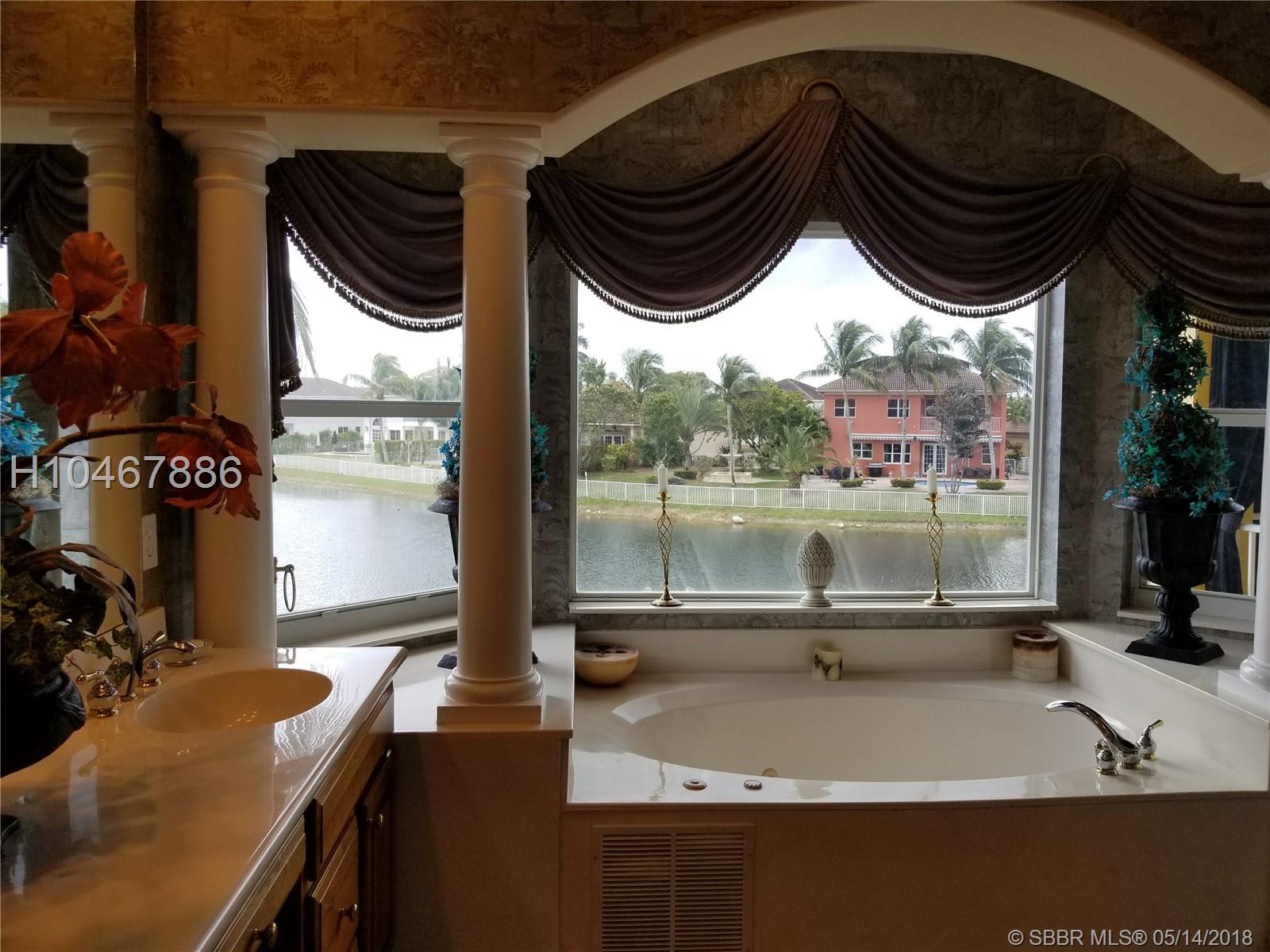 Beautiful builders model Mediterranean home. Every possible upgrade you can imagine. Lush tropical professional landscaping. Professional 120V low energy LED landscape lighting and fountain. Custom Housewall Garage System walls and rubber flooring in garage. Remodeled pool and patio with Travertine marble, exterior drapes, exterior entertainment connections, retractable Sunbrella awning and 6 person jacuzzi. Custom window treatments are negotiable.