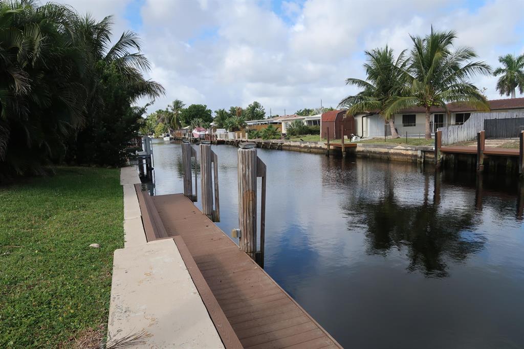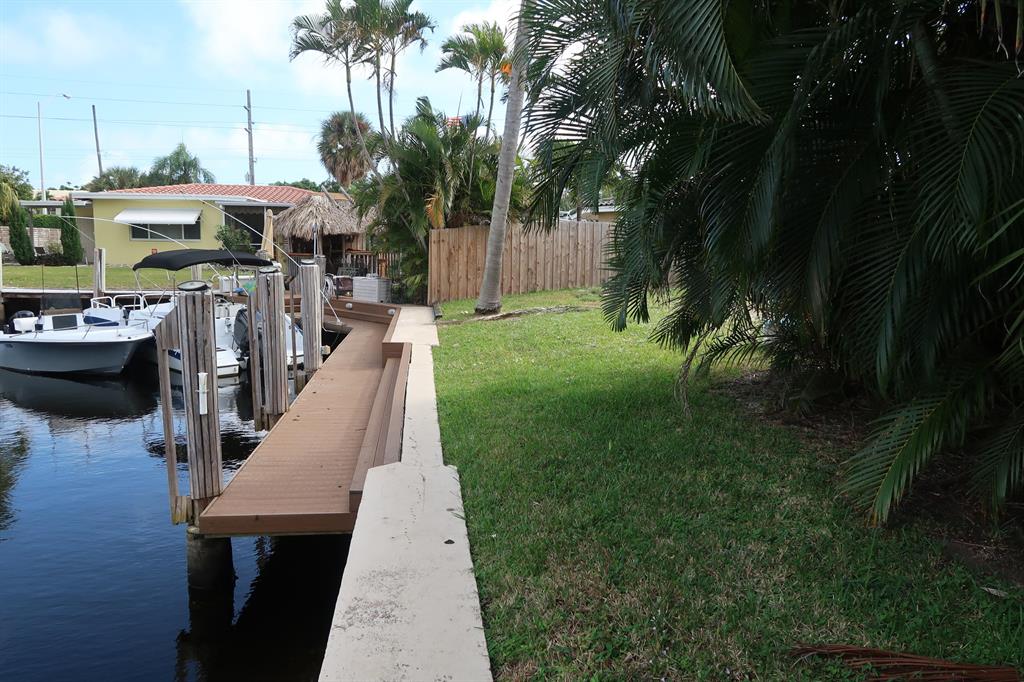 Ocean access and water views! 4/2 with large lot, dock, circular driveway, and plenty of room for entertaining inside and outside by the water. Great value and a lot of potential! Updated kitchen and floors, accordion hurricane shutters, and no HOA! With some TLC this could be your new home. Located in nice neighborhood behind Pine Crest School. Ocean access with 3 fixed bridges to ICW.