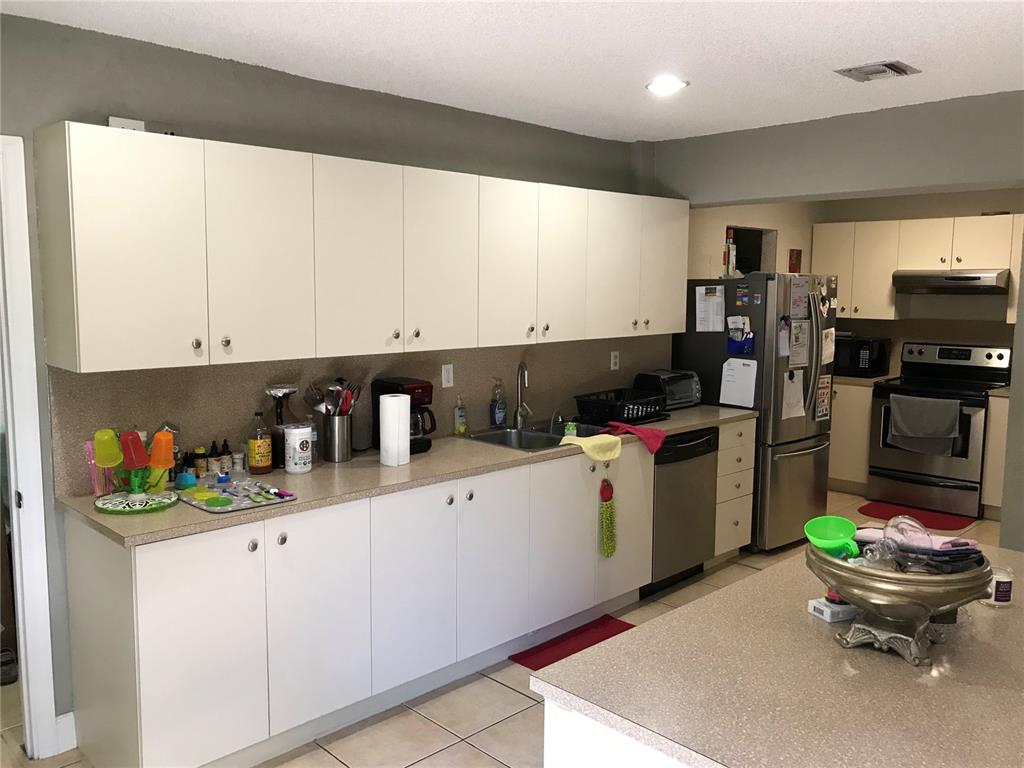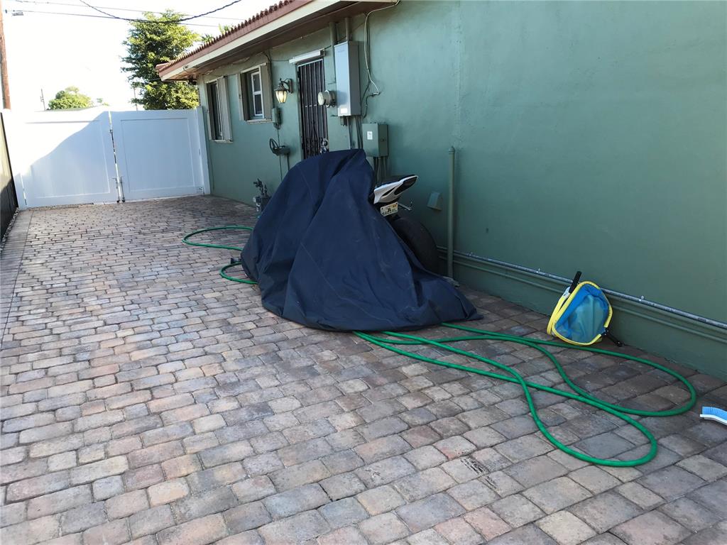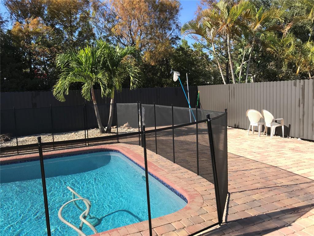 Spectacular attention to detail , tile /wood floors , updated bathrooms and kitchen , stainless steel appliances , recently diamond brited salt water pool , A/C 3 years old , recessed lighting , updated Circular Stamped concrete driveway , fully paved pool area/yard with large private driveway , plenty of room for multiple cars and a boat , clay tiled roof. new metal fencing all around , high impact sliding door, front window and front door , accordion shutters all around . easy to show .