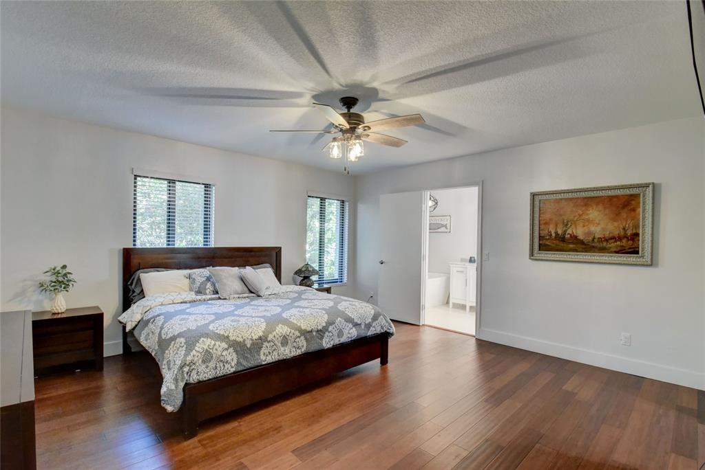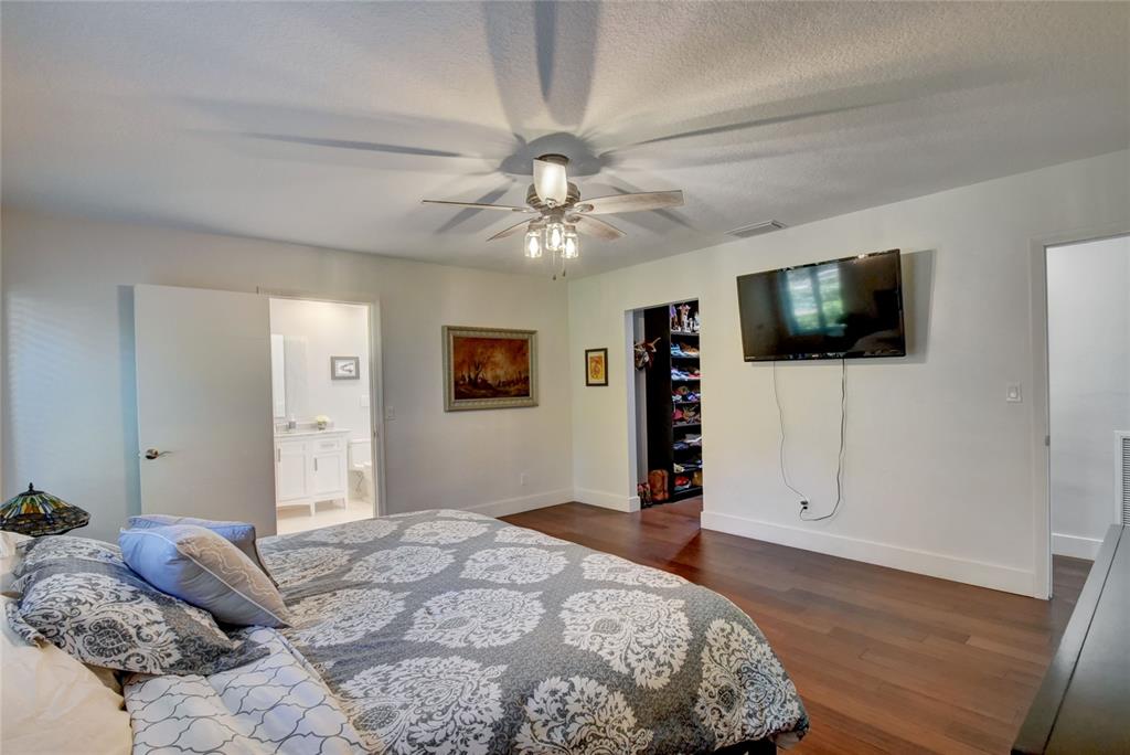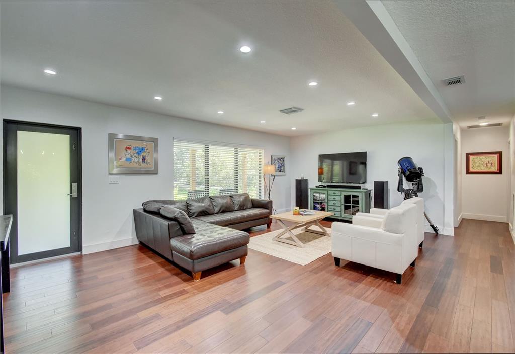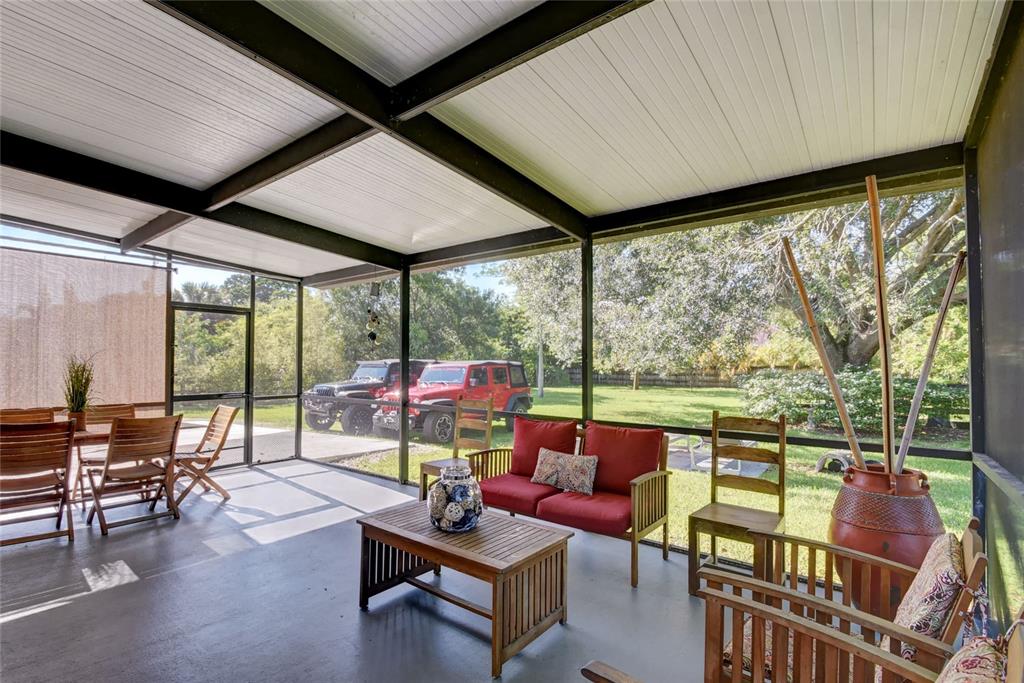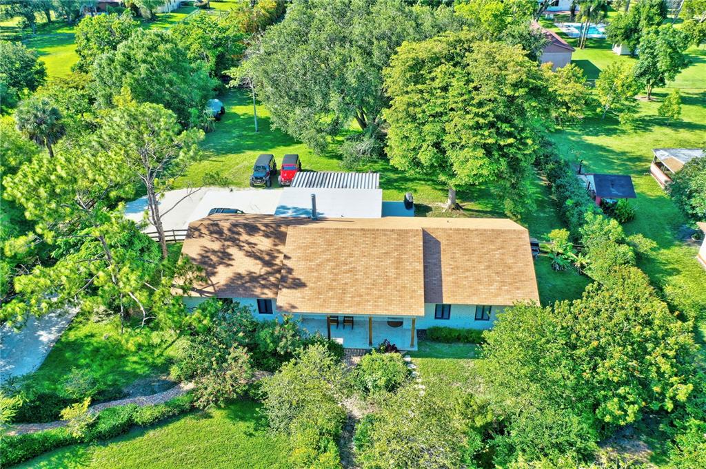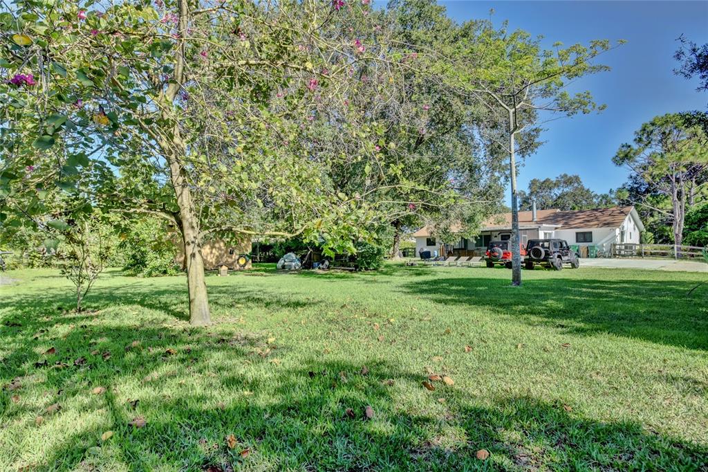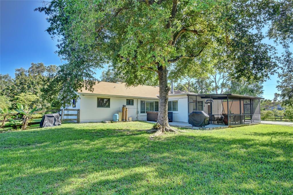 Stunning Country Living with over a acre, this split plan 4/2 home has open living & dining area with gorgeous solid stranded Bamboo wood floors,recess lights,fire place perfect for family gatherings.Large eat in kitchen with upgraded wood cabinetry,granite counter tops,stainless steel appliances,gas range & limestone floors.Large master bedroom with walk in closet & a office/exercise area,master bathroom has soaking tub and walk in shower.Bamboo floors continue in all bedrooms.Spare bathroom is bright & large walk in shower with glass seamless door.Large laundry room.Screened in patio to enjoy your view of the yard with lots of fruit trees, mature trees and flowering plants, fire pit, koi pond w/waterfall room for pool, RV & boat. A Schools. A Must See!