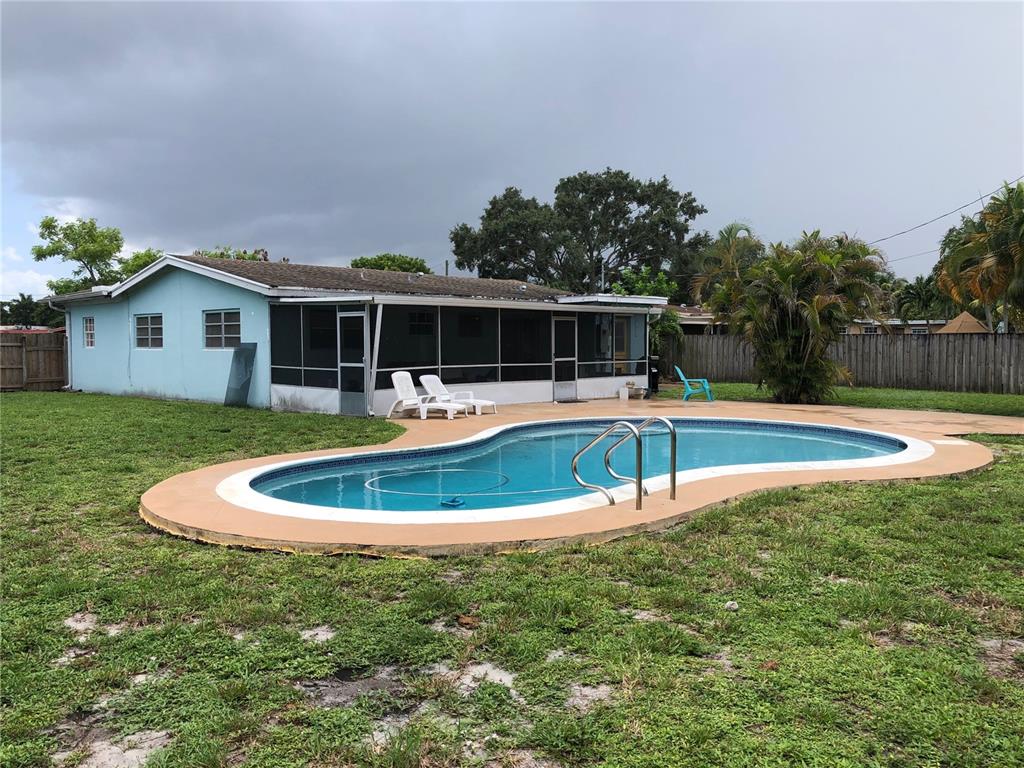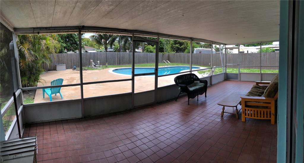 Fully fenced large yard with SALT WATER POOL. Large patio screened over looking pool area. This 3/2 home has alot of charm. Tons of potential with the right owner. Freshly painted interior. Loads of closets. No HOA! Terrazzo floors in the bedrooms, Large living room with adjoining study area! Separate laundry and storage area attached to the house. This house is just waiting for new owners. Thank you for showing!