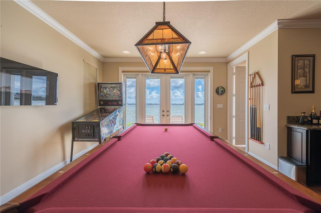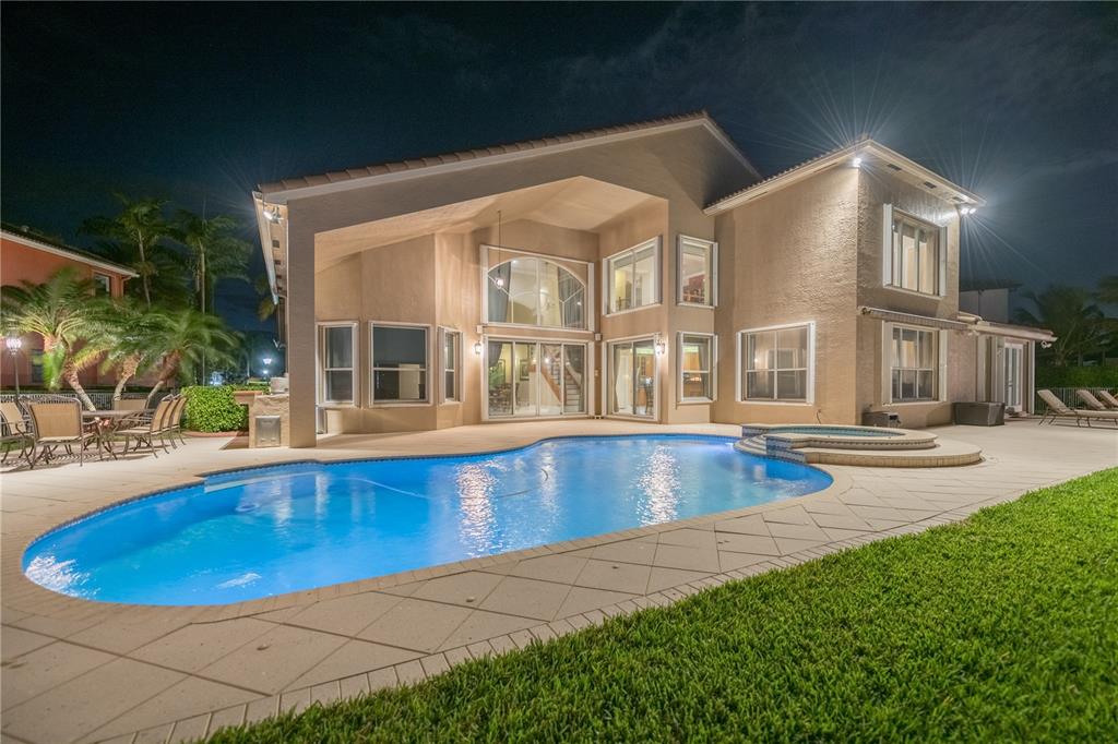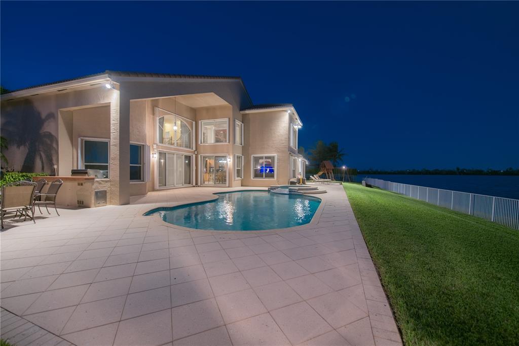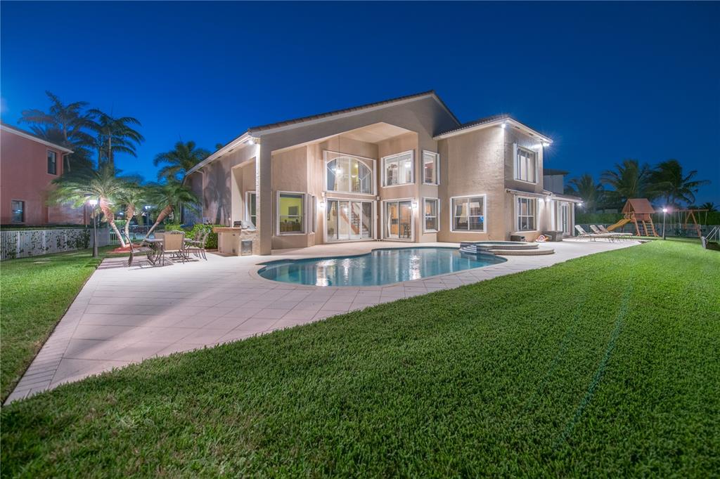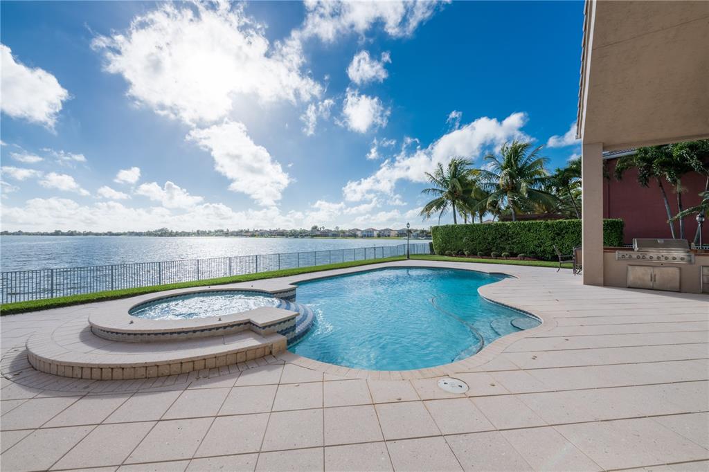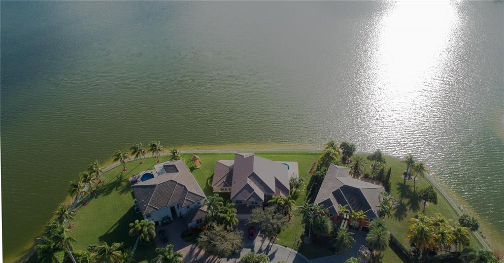 Pristine home in impeccable condition with a spectacular 16,285 SF oversized lot and 120 degree lake views on this cul-de-sac, boasting 5195 SF with 5bed/6baths plus a big loft, 3 master bedrooms, main master bedroom is on the first floor along with another mini suite with its own private bathroom. Porcelain and wood floors. New roof, new 3 H.E. A/C units, new water heater, new S.S. appliances & washer and dryer, accordion shutters, new seawall of 190 feet long. A magnificent addition over 800 SF to the house where you have a Media Room with 1080P Projector,120 inches screen, 7.2 sound system with klipsch speakers, 8 recliner electrical leather seats, full bar w/pool table, wine cooler. Amazing resort-style pool & Jacuzzi.