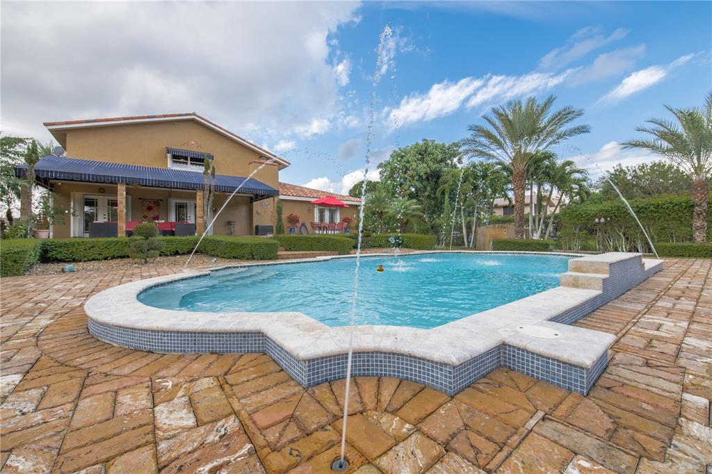 Spectacular and exclusive 4/3.5/pool home with impressive electric gated entrance. Beautiful water fountain and extended driveway can accommodate more than 12 cars. Completely remodeled. Upgraded kitchen with cooking island, wood cabinets, SS appliances and granite countertops. new bathrooms, new roof, new a/c unit, new electric water heater, travertine marble floors throughout the entire house. Enjoy the amazing fully fenced backyard with lush landscaping including fruit trees, travertine pavers, oversized salt water pool (18x36) with Jacuzzi in the entire pool, outdoor kitchen and new cabana bath.