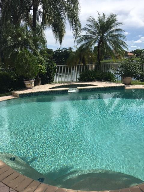 Best Location !!! Enjoy Florida Living large waterfront lot. This 5BD home plus den 3 Bth home features stunning wide lake view and pool and spa view, 3 car garage, accordion shutters, new ac unit, new laminated wood floors all bedrooms, recently painted, new lamps, wood floors formal dining and living room areas, spacious and open family room area, cathedral ceilings,42' inch cabinets light wood color, open kitchen with granite counter tops and stainless steel appliances, 1 full bedroom and bath downstairs, fence lot with ficus for privacy, lush lawnscaping, new faucets and glass bathroom enclosures, move in condition. Excellent location close to i75, weston schools, library and parks. AC service plan included.