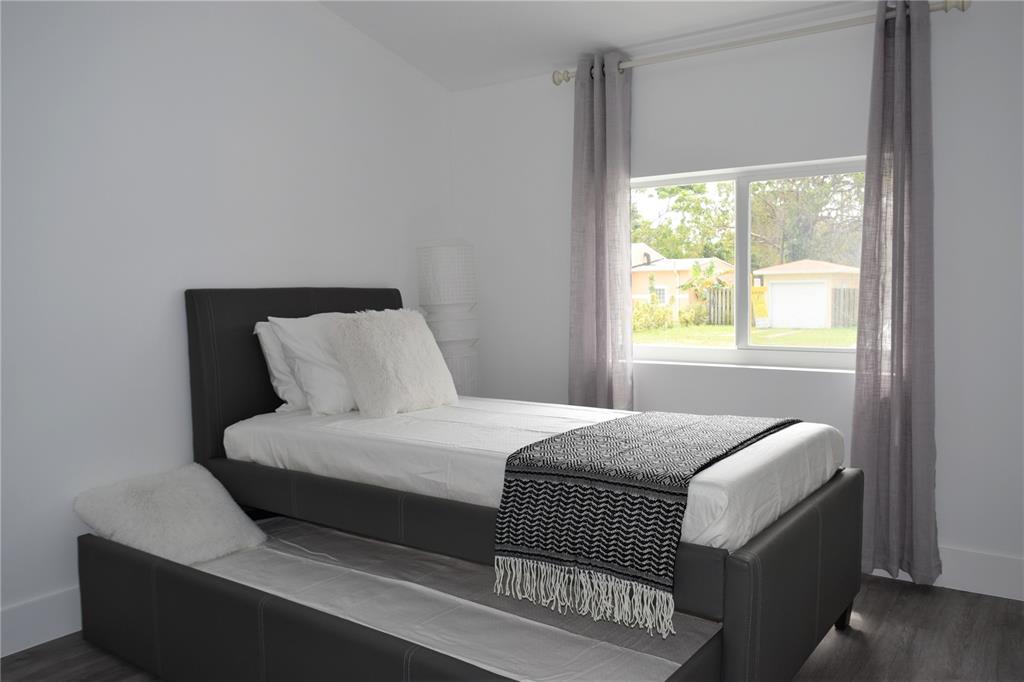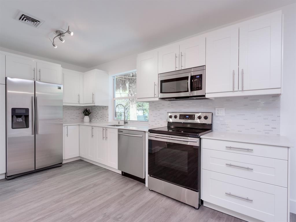 Beautiful and stylish remodel with designer styling. Open concept, new kitchen with beautiful quartz counters and tile blacksplash, new stainless appliances, soft-close cabinets and drawers. Both bathrooms completely updated. Granite tile shower. Enormous concrete slab patio to expand the living area outside into the large fenced backyard to enjoy our Florida sunshine. Shed for extra storage. All doors and windows NEW and hurricane impact! Brand new AC inside & out. Great location close to I95, downtown, the beach, shopping, houses of worship, etc. Five year roof warranty included. Home warranty, professional inspection report, 4-point and wind mitigation reports included free for buyer.