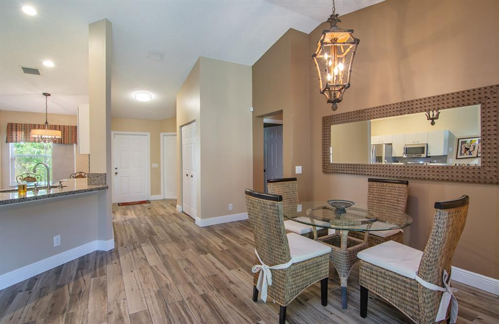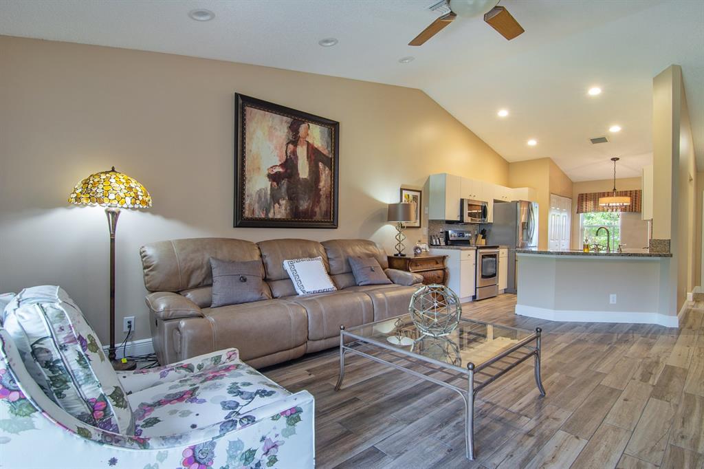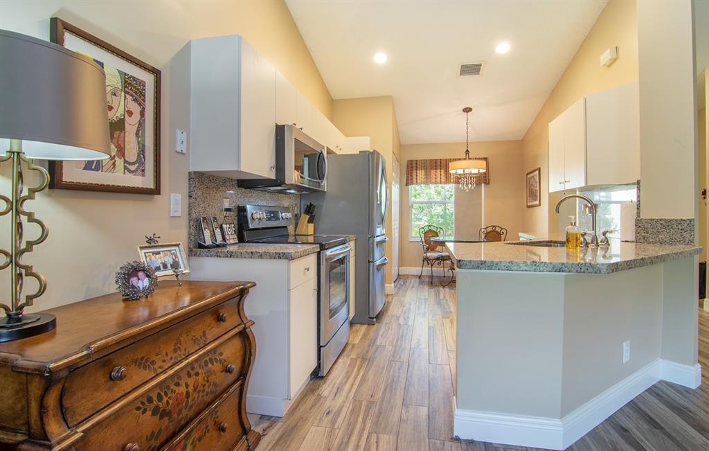 Very well kept move in ready home in desirable gated community of Savanna. 3 bedrooms, 2 bathrooms. Updated kitchen with stainless steel appliances and granite countertops. Wood look tile throughout living area and laminate floors in all bedrooms. Freshly painted inside with neutral colors. End unit with screened in back patio. 2 car impact rated garage door with 2 spaces in driveway. Washer and dryer inside property. Walking distance to Gator Run Elementary. Unbelievable community clubhouse with waterslide, multiple pools, basketball court, soccer field, mini golf, bike and walking trails. Easy to show.