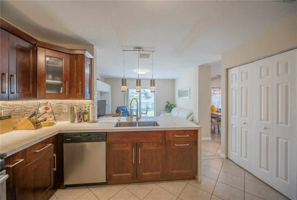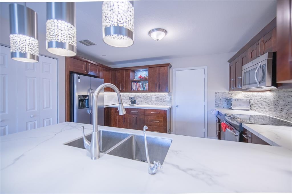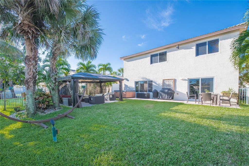 Gorgeous two story house with 4bedrooms/2.5 baths and small loft! Upgraded kitchen with solid wood cabinets, porcelain neolith countertops, backsplash and SS appliances. Tile and new laminate wood floors throughout the entire house. New impact windows and doors in the entire property. Upgraded bathrooms. New LG washer and dryer, new water heater, 2015 A/C unit, security cameras, nest thermostat, new sprinkler pump. Projector and TV screen in the living room will stay. Spacious backyard with plenty space for a pool. gazebo will stay.